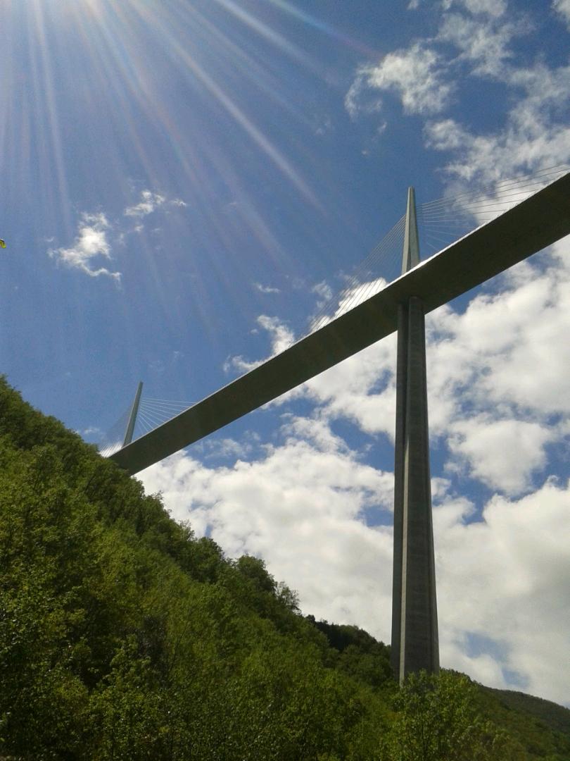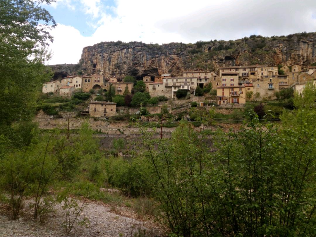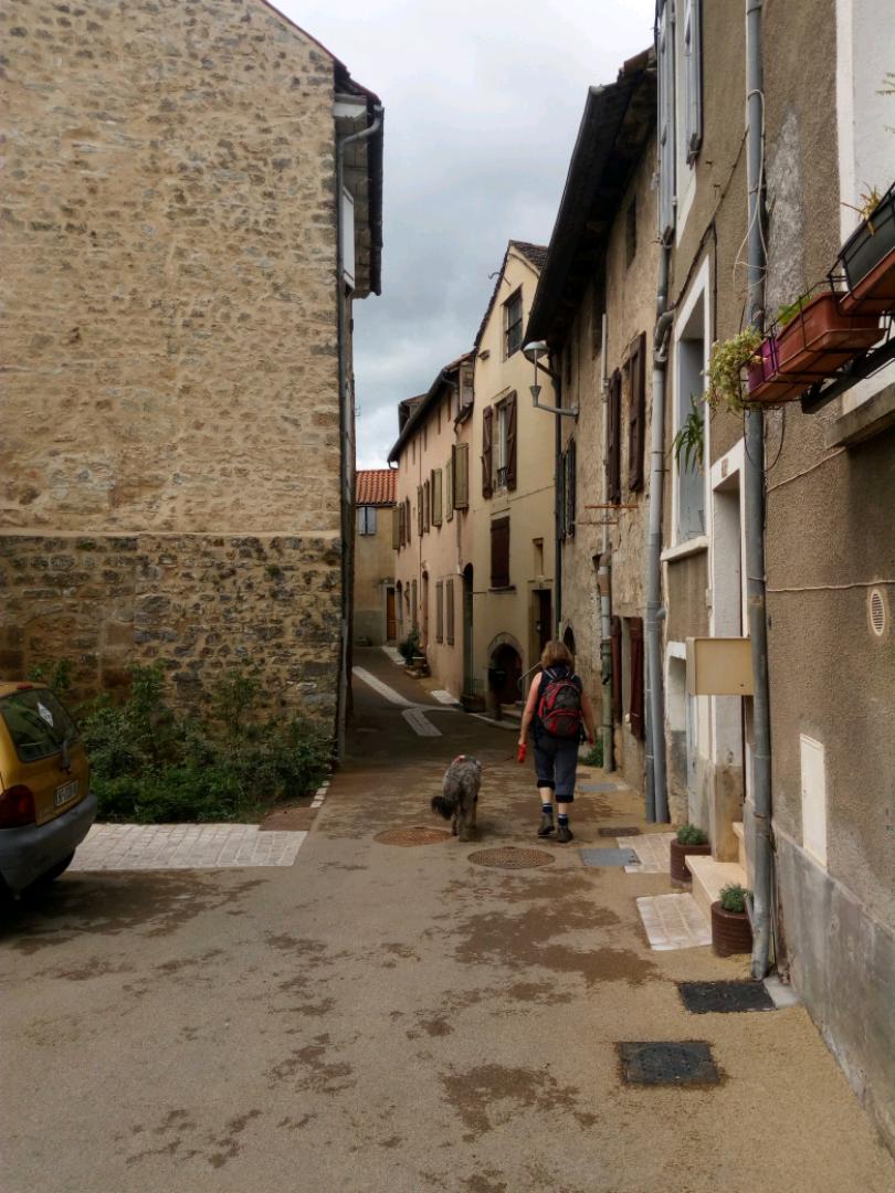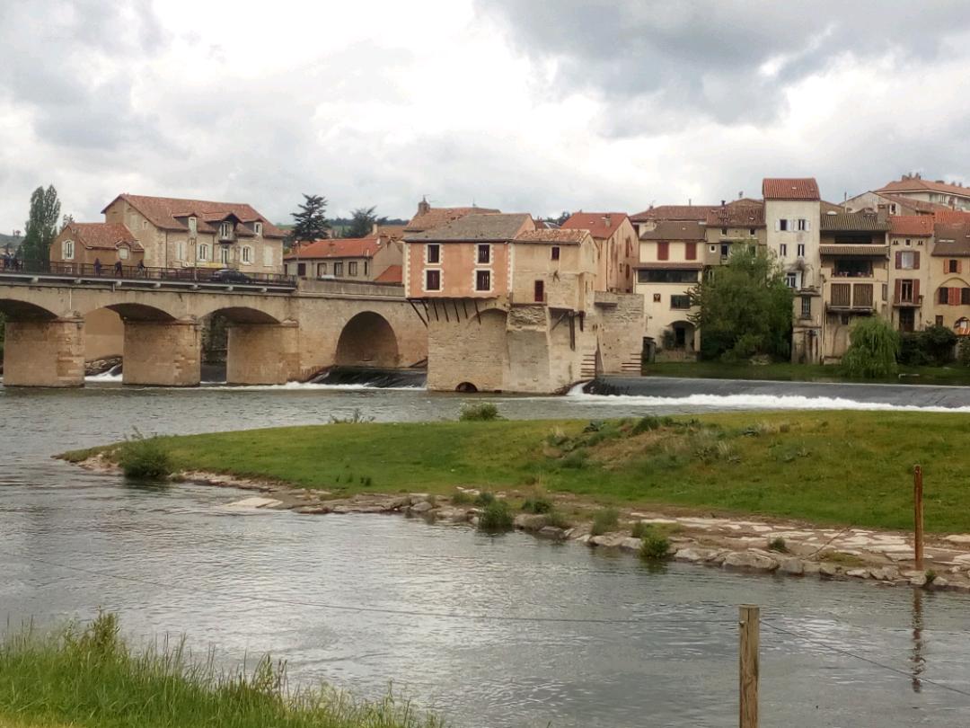 It was a nice morning so we decided to go for a walk along voisvertes (Greenway) by the Tarn river. Coincidentally this led us underneath the Millau viaduct. We’d taken French bread and pate along ,( with peanut m&ms ) so picnicked under the viaduct. Us brits are good at some things. The bridge is magnificent. Well done Sir Norman 😀. Next stop the most beautiful village in France, so we’re told ! Peyre a village built into the rockface, couldn’t get across the river but a good view anyway. This may have been a step too far for Misty as it made the round trip probably 10 miles. She’ll never complain about travelling by camping car again 😂.
