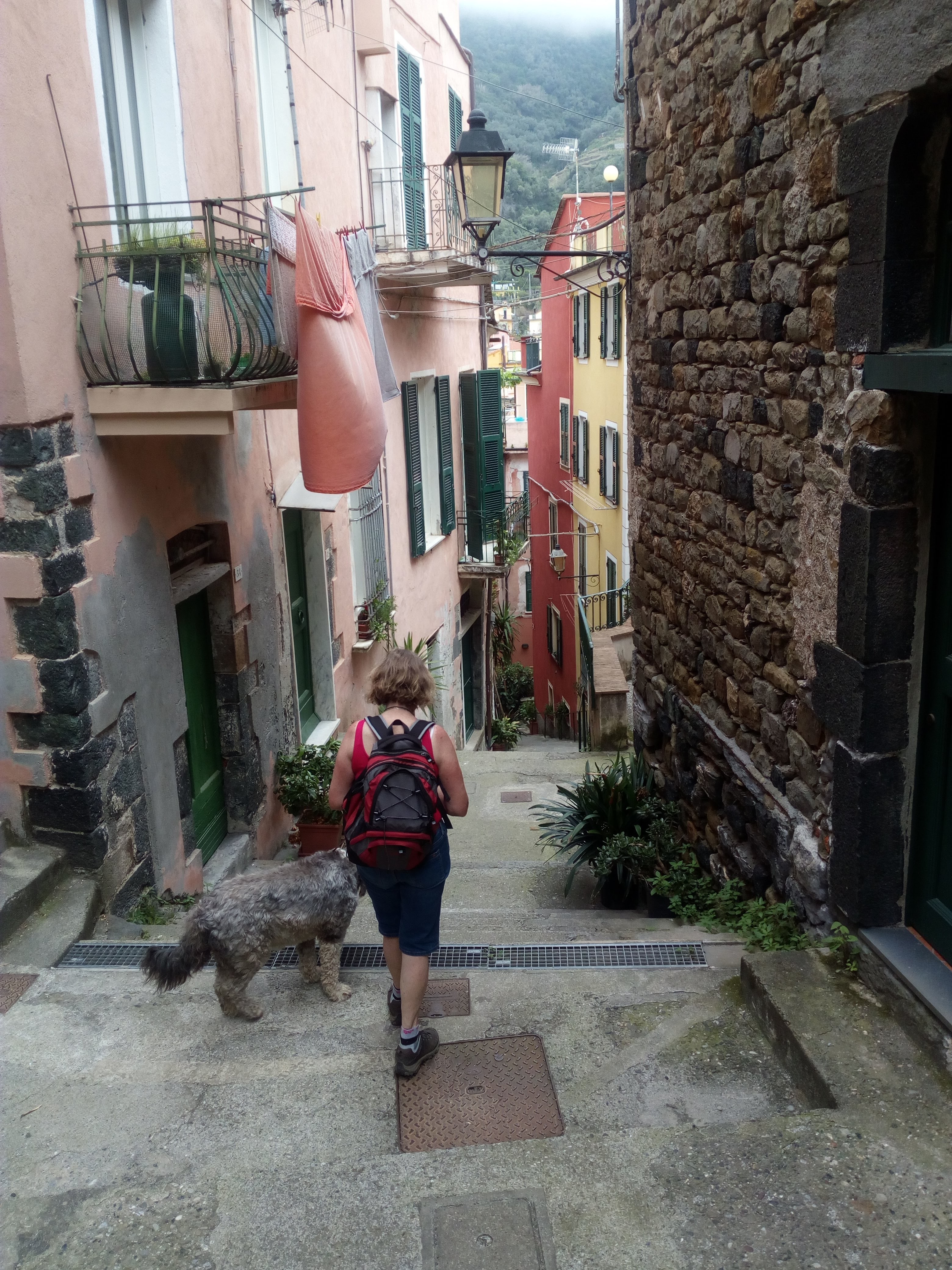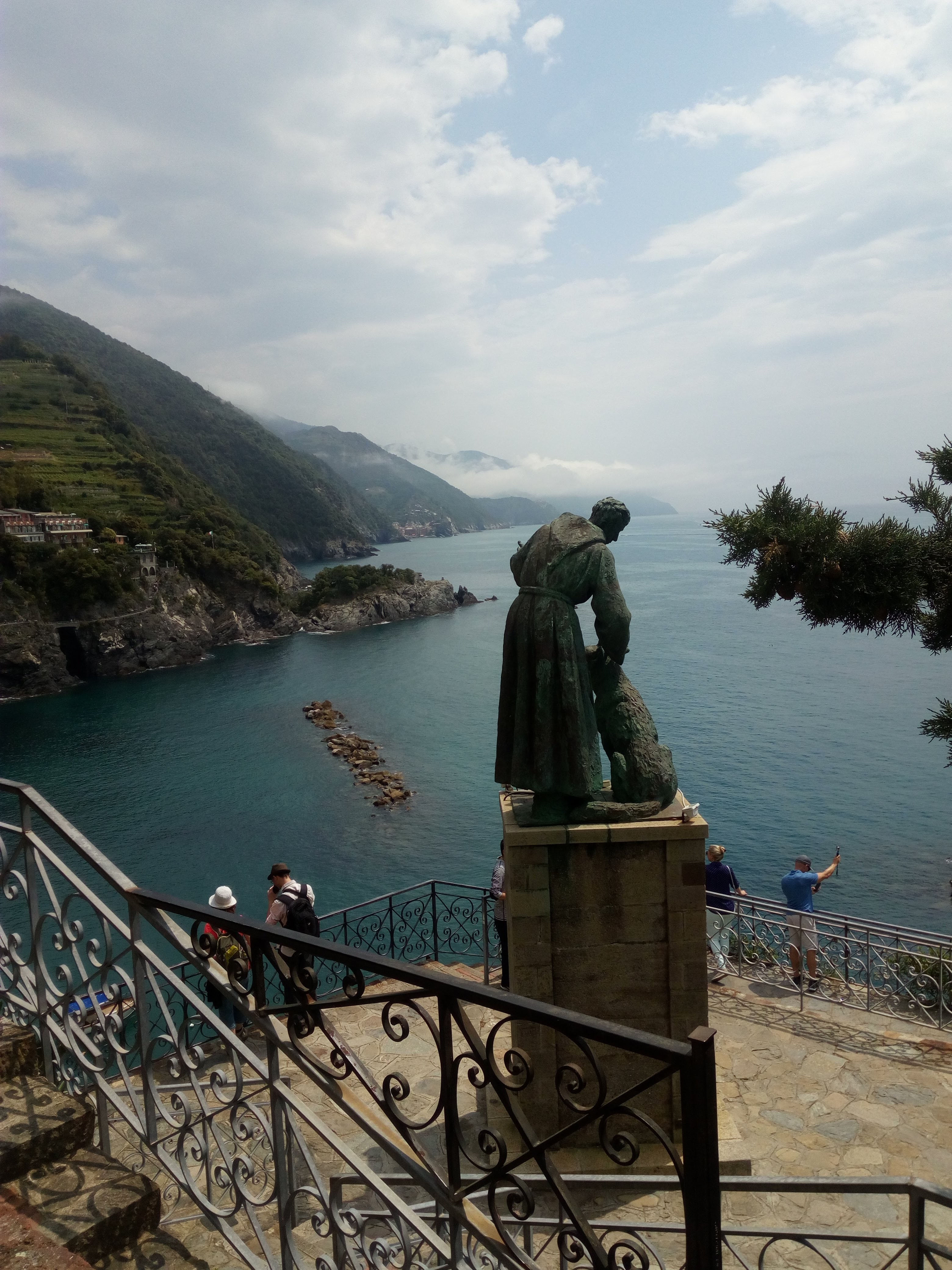 Cinque Terre is absolutely stunning and well worth a visit. Getting here was amazing. Hairpin bend after steep hairpin bend 😊 driving is definitely challenging around here. 😊😊 lescargot coped admirably again. Even St Francis was present over seeing things (and he had a dog). The old town was spectacular through the twisted, steep, stepped streets. And behold every one else was looking at the shops 😊.