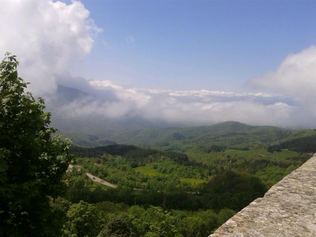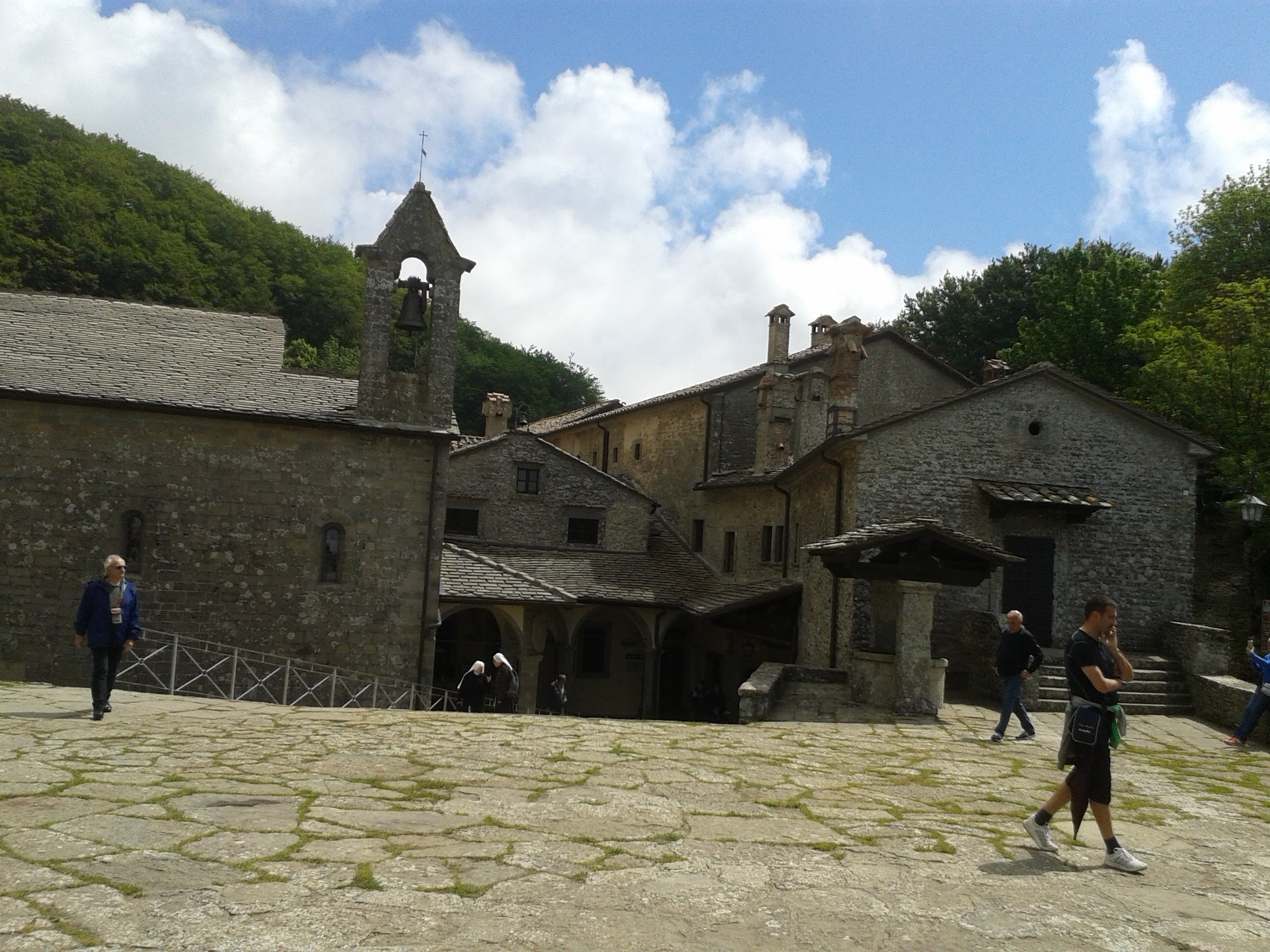 Today we drove up, and up, up, and up, up to 1200m! in search of a saint. The Sanctuary of La Verna is located on mount Penna above Chiusi Della Verna and is where St Frances of Assisi received the mark of the stigmata. A very tranquil place for everybody and fortunately there were not too many everybodies there. Misty was able to visit with us but not into the basilica or other revered places. She enjoyed searching for the jutting out stone (possibly because it was cool and damp) she also found some discarded sandwiches. How it has managed to stay perched on the rock we don’t know.