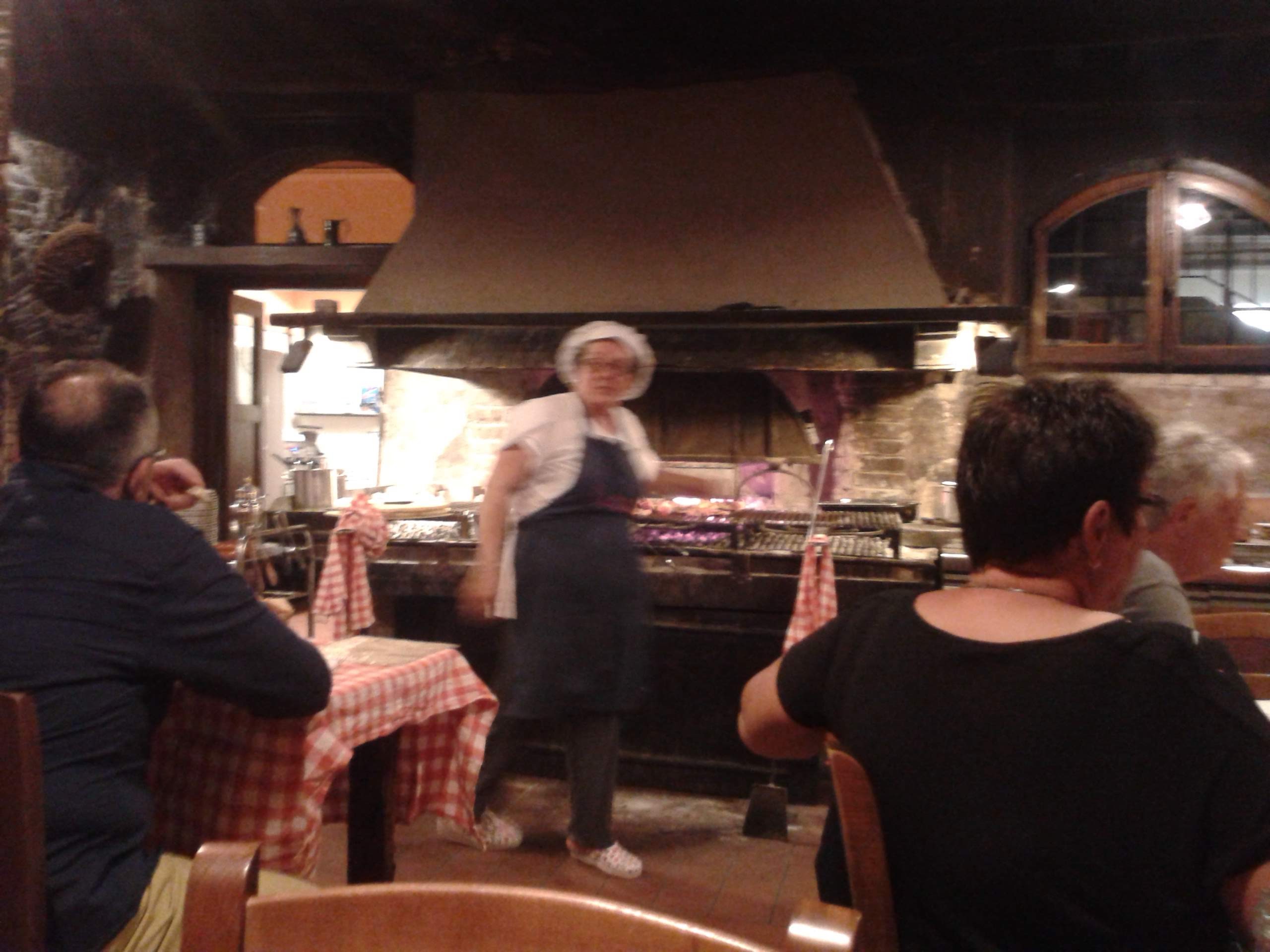 Day finished off very pleasantly in la Stalla restaurant (campsite) a haunt for locals as well and they were all there tonight. Fascinated to watch the food being cooked on a huge open wood burning range. Excellent 😊😊