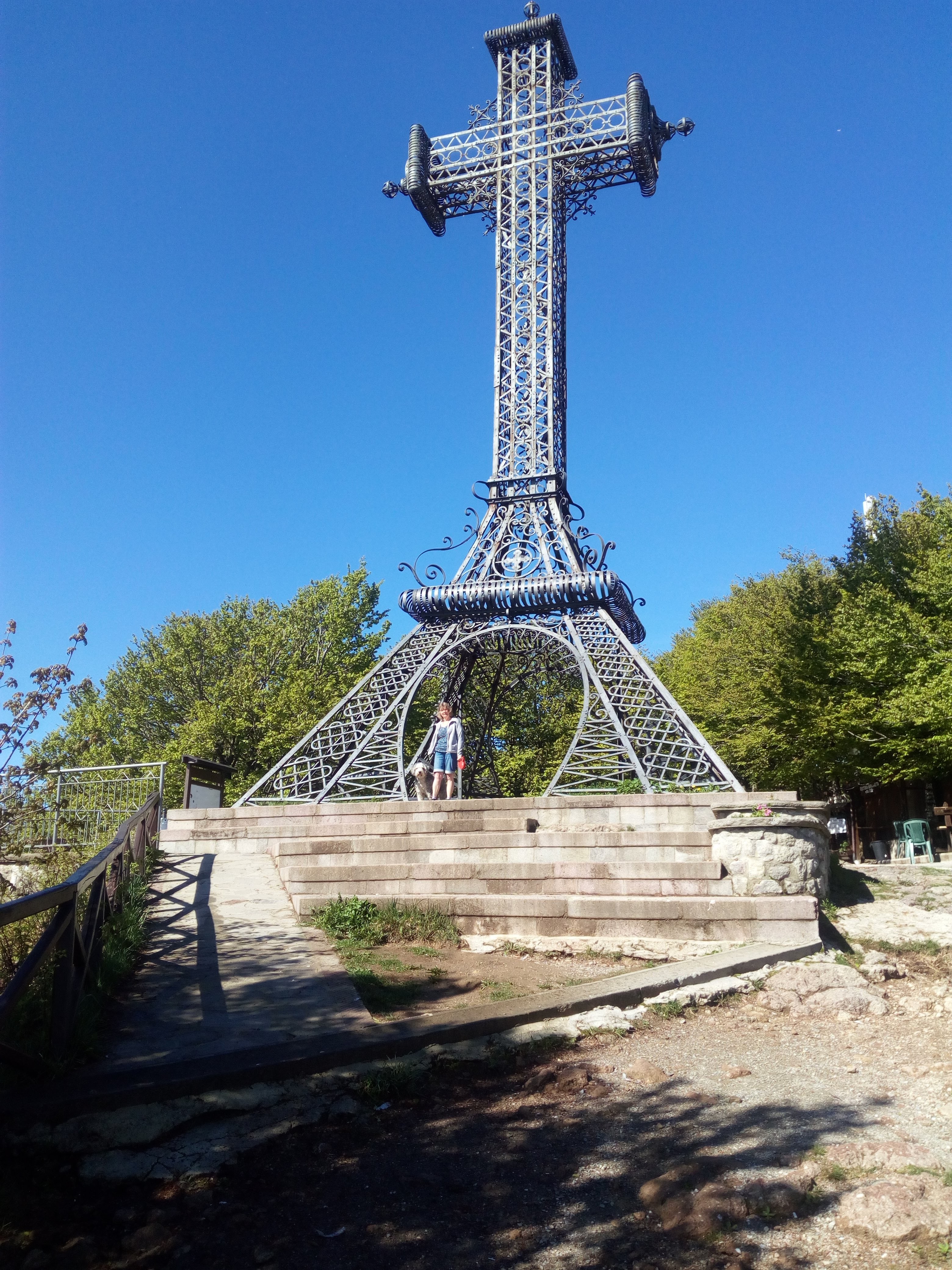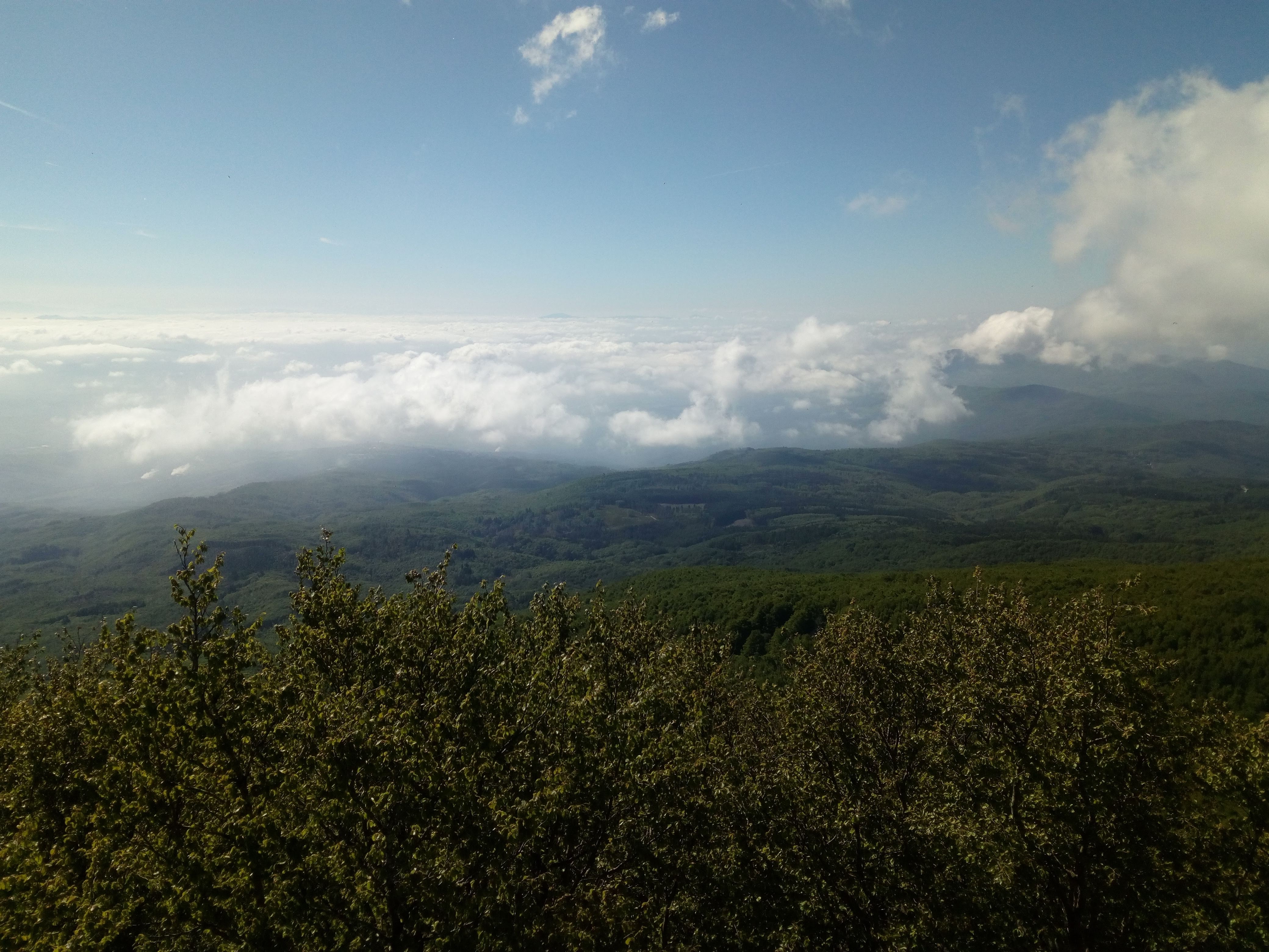 After spending the night at the bottom of the ski slope we thought that we had better go up the last few feet to the top of Mount amiata (1738m). What should we find but an Eiffel Tower like cross and a white marble 🤔. Our heads were really above the clouds and the views were amazing, we were lucky to get this view as clouds covered the mountain later in the day.