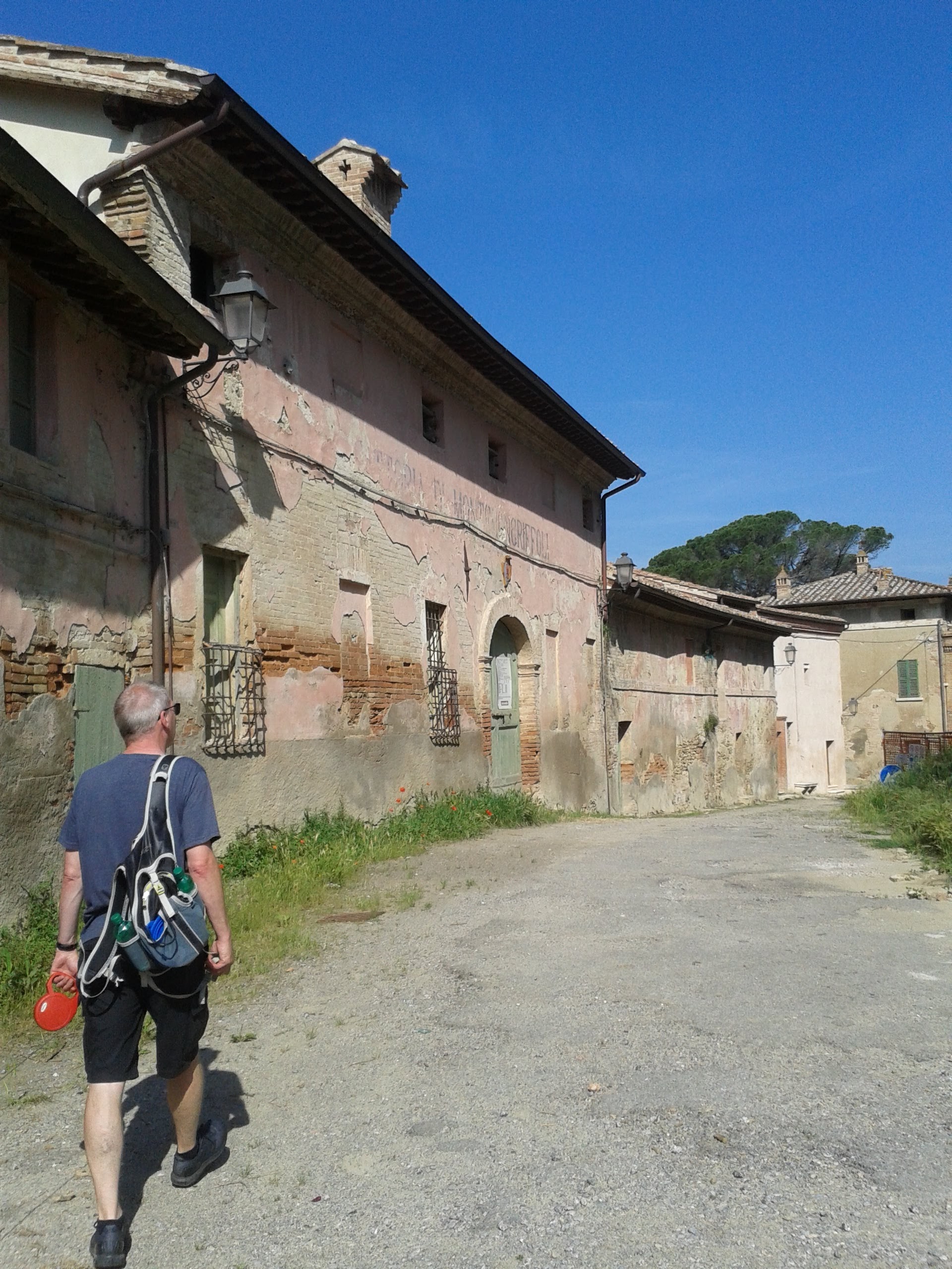 Of hottest day so far. We set out early for a walk to the small village of Monterongriffoli. Obviously had seen better days and showed us that not all of Tuscany is picture perfect. Although lots of renovating going on (possibly for tourism) it was a glimpse of the old Tuscany