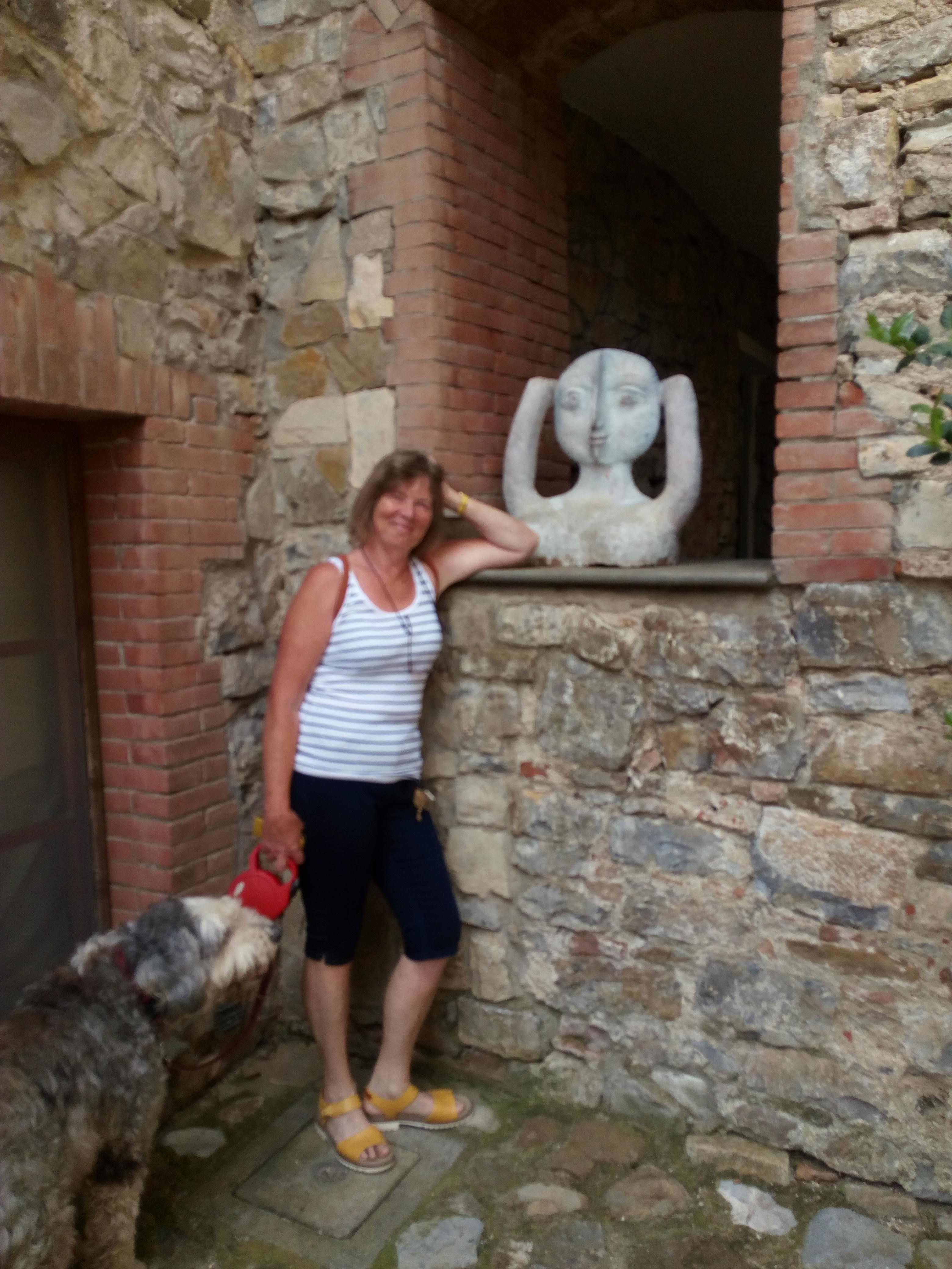 Castallina di ‘Chianti what a wonderful place, cappuccino, wine tasting, flowers and tunnels. What a place. Will come here again in the Jag with the soft top 😂😂😂. Not a big place but charming and one of the original 3 Chianti Classico towns. Where else to stock up on the red stuff. They even had to build over streets, forming tunnels, when the town expanded. These were magical to walk through. Every nook and cranny in the little streets have pots full of flowers making the bleak stone look pretty. We really liked this little place.