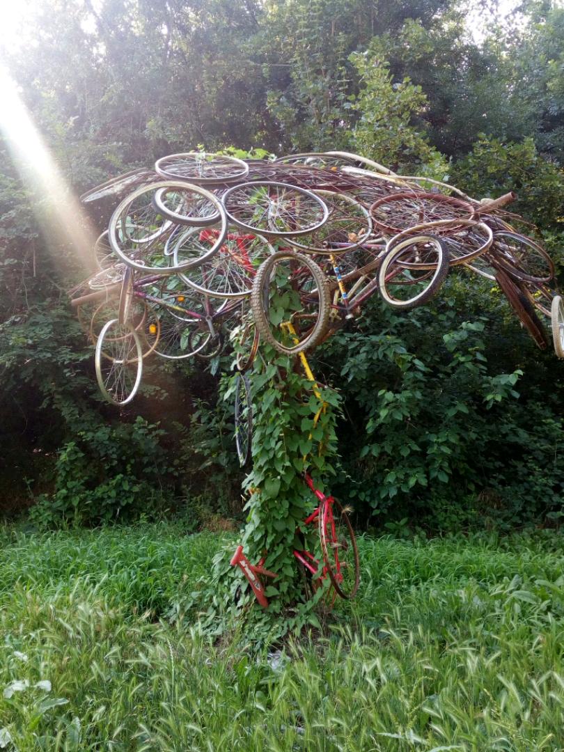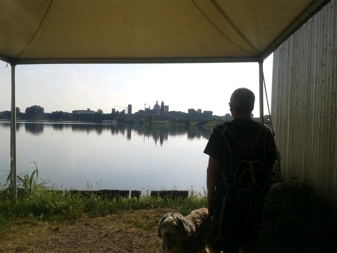 We reached Mantova, which sits surrounded by artificial lakes. We immediately got our chairs out and sat in the shade as it was 28deg. Misty’s walk is getting ever later and only when the evening is cool enough. Tonight we walked around the edge of the lake looking at the city’s architecture from afar. We passed lots of unusual sculptures (were seeing a lot on this trip but they are all different and good).