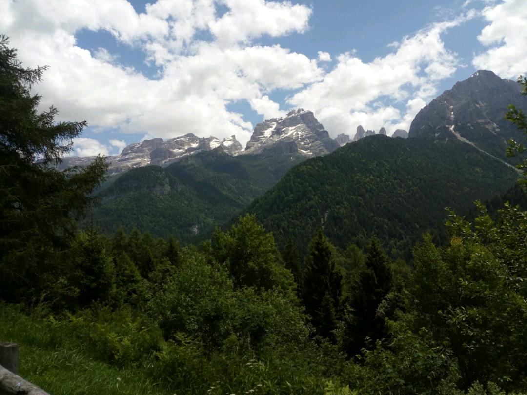 Lunch was where paths crossed the road and had a conveniently placed picnic table. Coffee tastes so much better at 4000 feet😊. We then turned left onto the main road towards the Tonale pass, which we thought would be little and windy but in fact was wide and straight, interspersed with hair pins, all the way to the top at 5700ft.