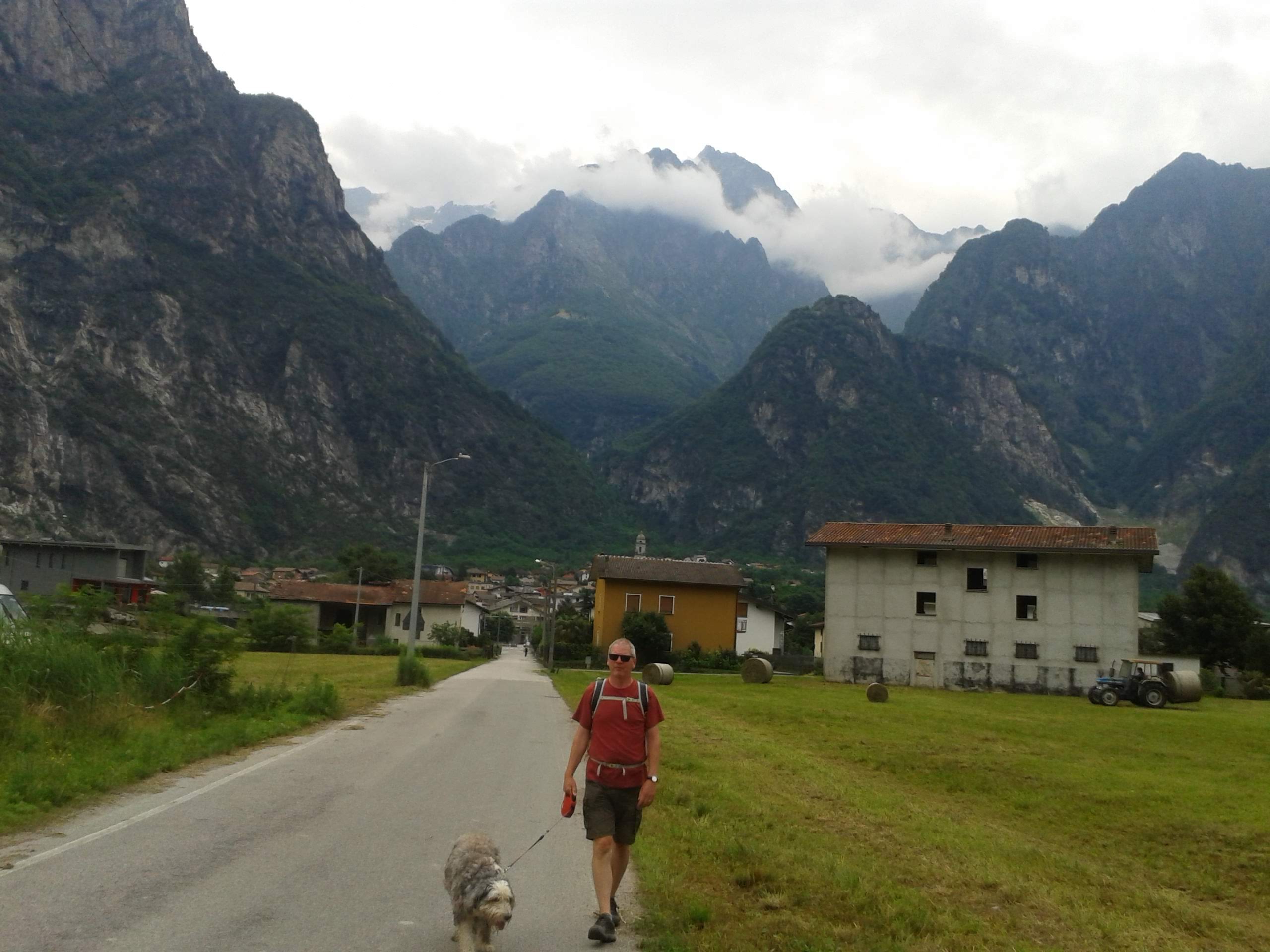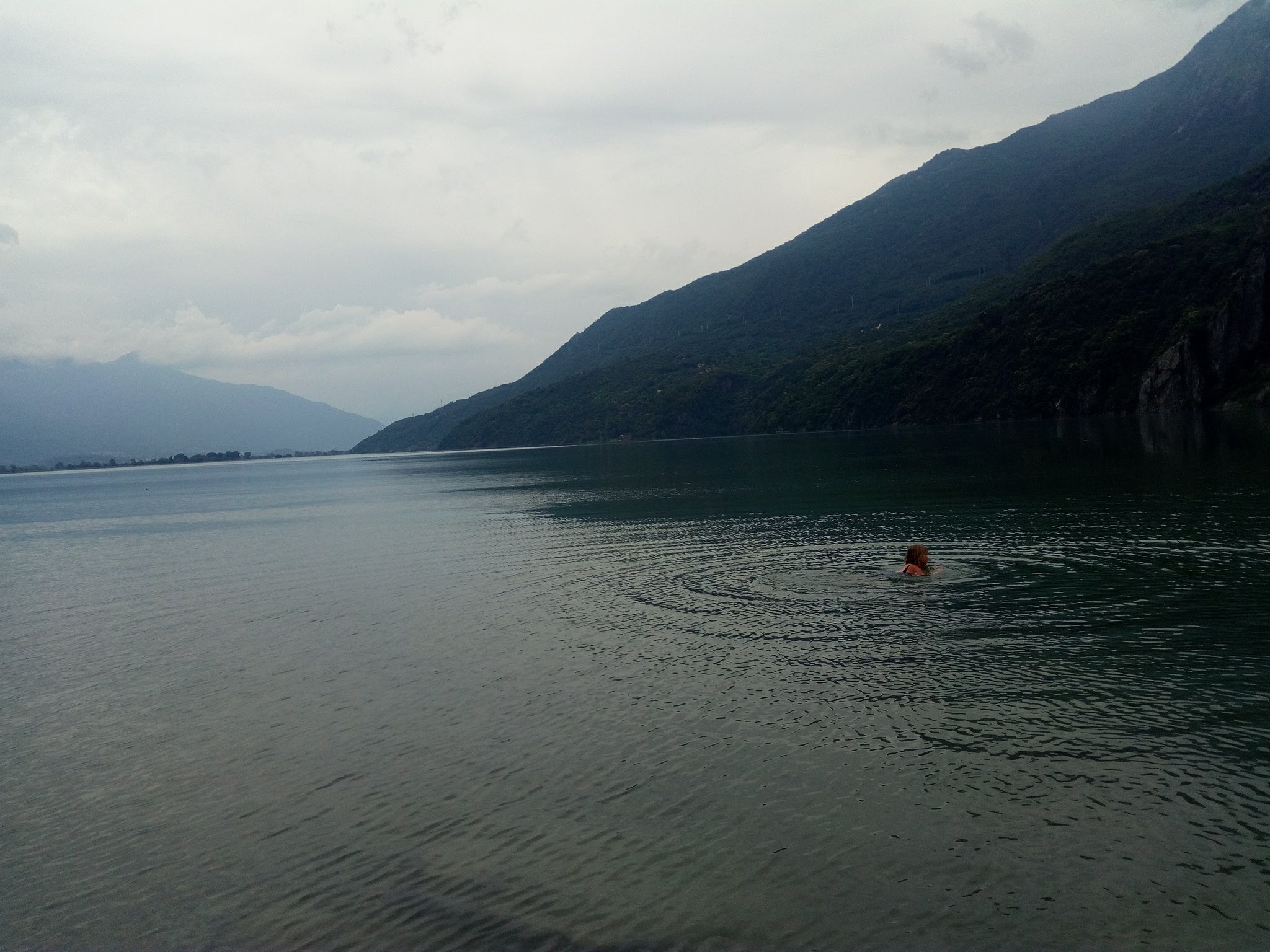 An especially hot and sticky day and although a couple of thunder storms passed over head we stayed dry. Our walk in the morning with Misty was as cool as the day got. The backdrop was magnificent although the river was too deep for Misty. Took the chance straight after lunch to take a dip in the lake (Barbara), Misty does not like swimming so instead ran up and down the shore barking and splashing. The water was freezing so it was a very short lived swim, we are in the mountains ๐๐.