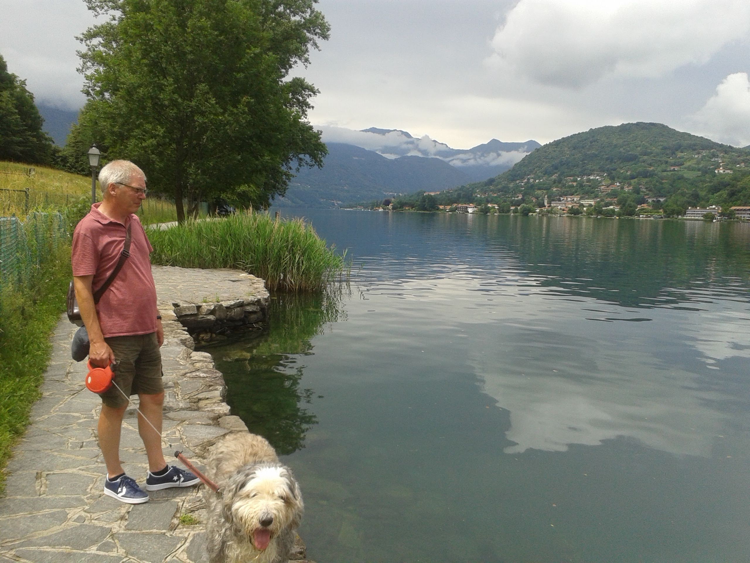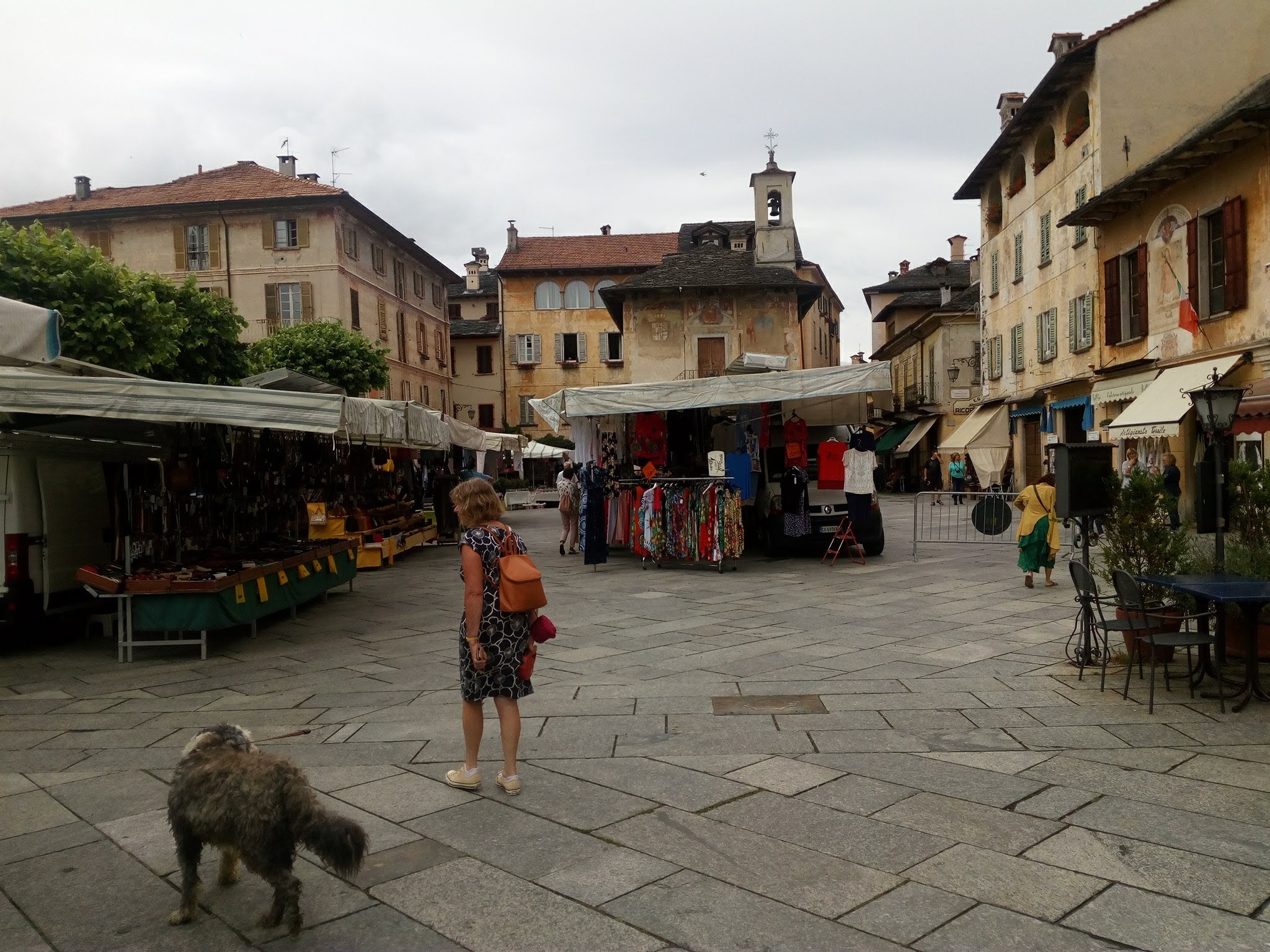 After lunch walked down the hill (waterproofs already off) to the beautiful Orta San Guilio. A small, very picturesque town with cobbled streets right on the edge of the lake. Reminder to ourselves, always go to beautiful places midweek, even the little market was not busy. Followed a beautifully paved path right on the waters edge around the peninsula. Sun shining, stunning views, calm water, heaven.
