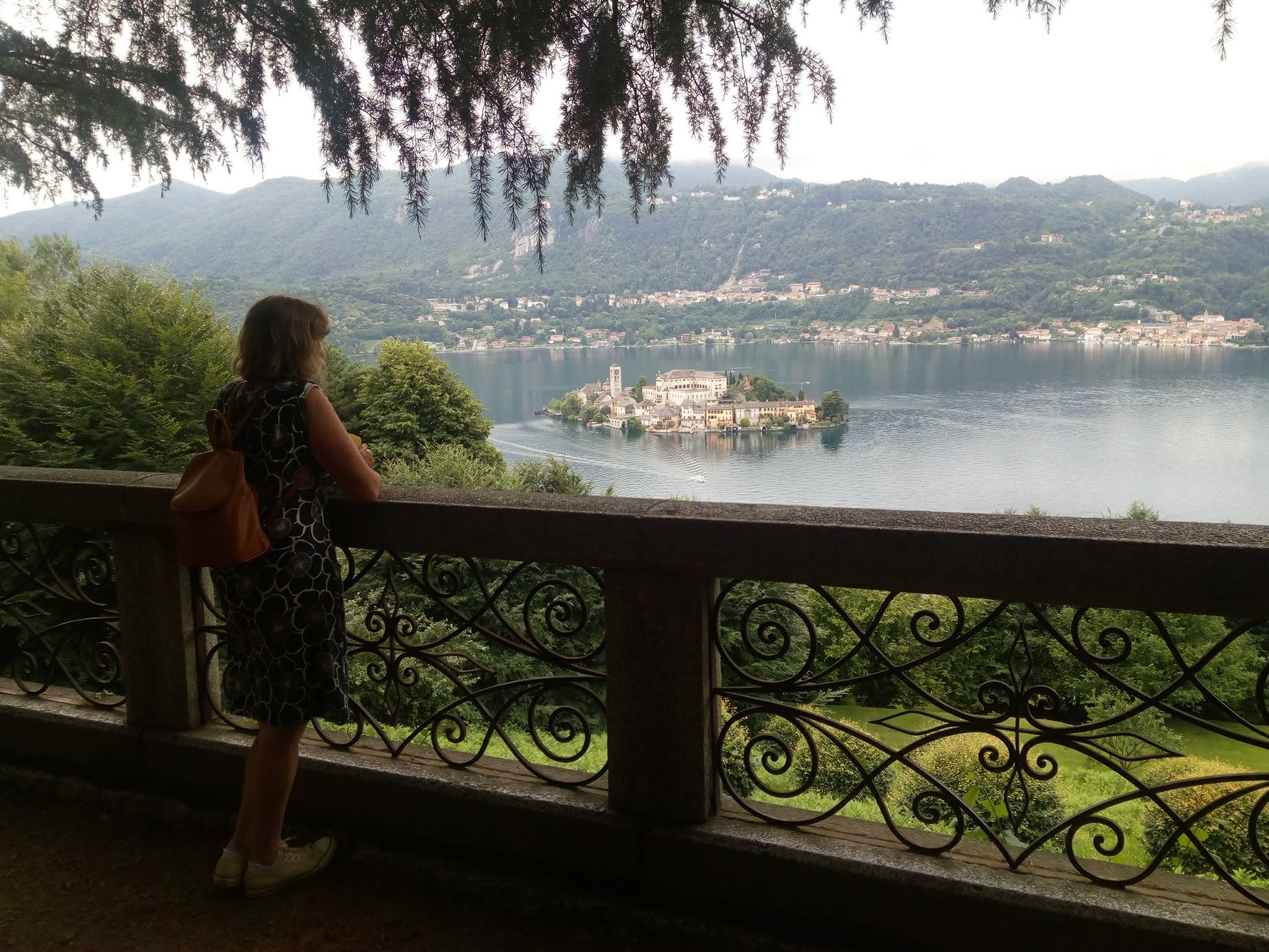 Still raining but still warm enough for shorts and T-shirts as we arrived at out final lake, Orta. Drove up the sacred mountain to our free over night stop. Only 8 small motor homes allowed. We’ve seen a lot of huge motorhomes on our travels but none would have made it round the hairpins to this little spot.
