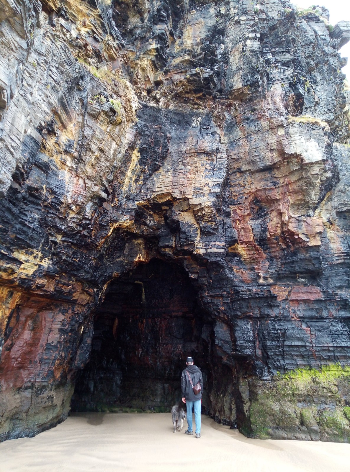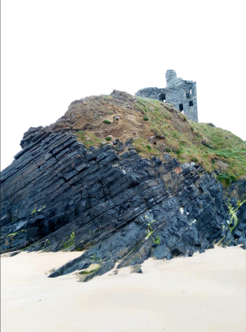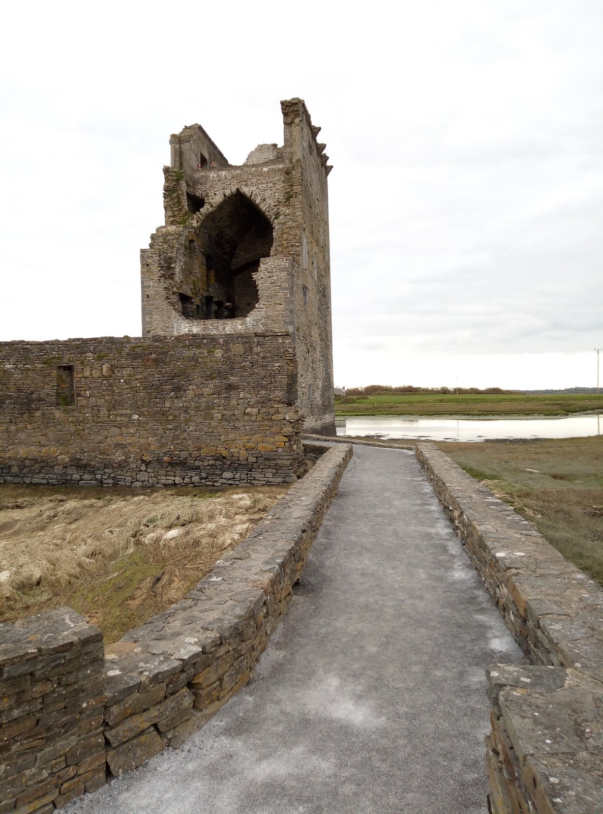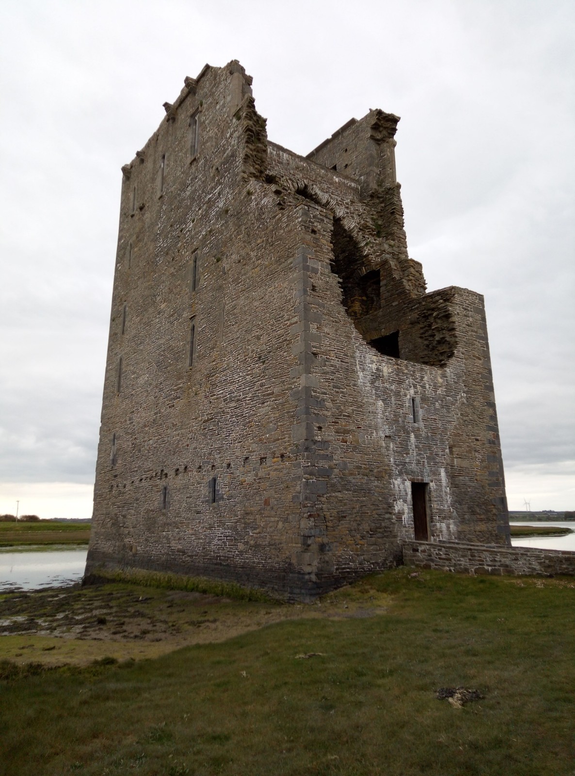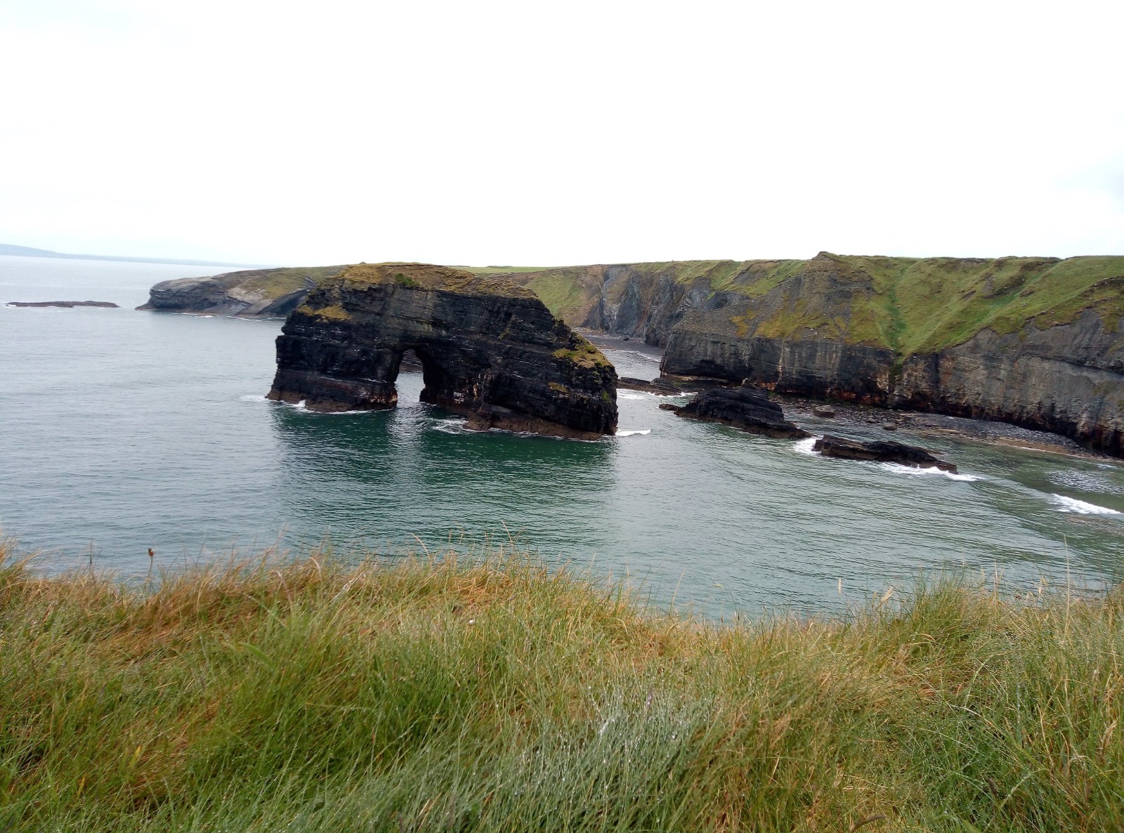 The tide was in as we left Carrigafoyle Castle but we didn’t get our tyres wet😀😀. Misty was anxious to get to the beach so we went to Ballybunnion where another castle on a rock separates the ladies and the mens beach. Misty didn’t care about that and galloped between the two playing in the waves. After a short walk along the cliff tops we went shopping to replenish stocks. Aldi is just as good in Ireland.