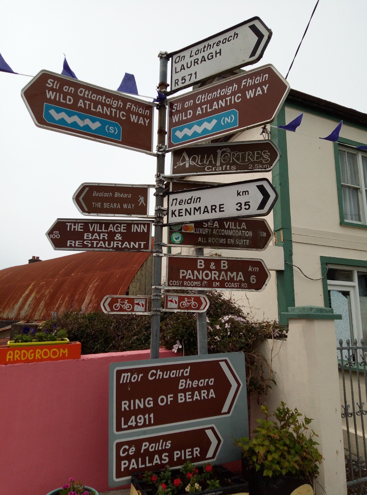 Misty kicked is out of the van this morning saying she was tired and wanted to sleep. Oh well, so we got the bikes out 😁😁. Decided to do a middle loop of the Beara cycle way starting by going over the Healy Pass. A long slow climb but the panoramic views made up for it. Briefly went into Don’s gift shop hidden away at the to of the pass and enjoyed a lovely coffee made by the man himself. A great ride down the hairpin bends and along the coast to Castletownbere. Here we stopped for lunch, seafood chowder and a fresh crab Sandwich, finished off nicely with a point of Guinness, at Breens Lobster Bar which for some strange reason did not sell lobster!! To aid digestion we walked around the harbour, the second largest fishing put in Ireland.