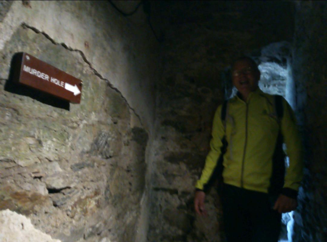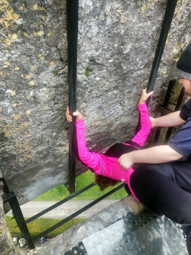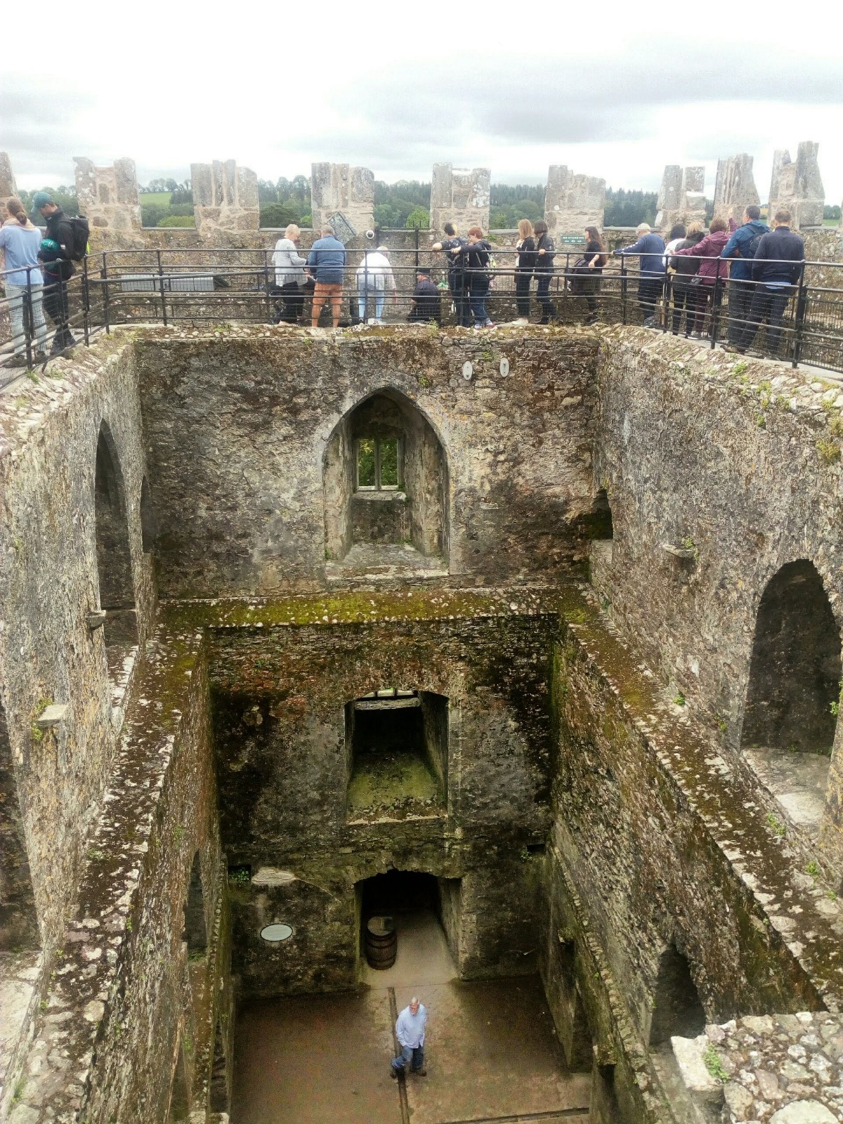 Cycled from the site to Blarney Castle. Misty could not go but we did find a suitable replacement ๐๐. Thought we would see the castle before the grounds, ending up in the queue for the Blarney stone but the only way to see inside the castle. As we were pasing the stone anyway Barbara thought she might as well give it a kiss ๐ can she be any more beguiling or misleading?? The castle was fascinating, caves, dungeons, a 15m pit to trap unwelcome visitors and murder holes as well as steep spiral steps.