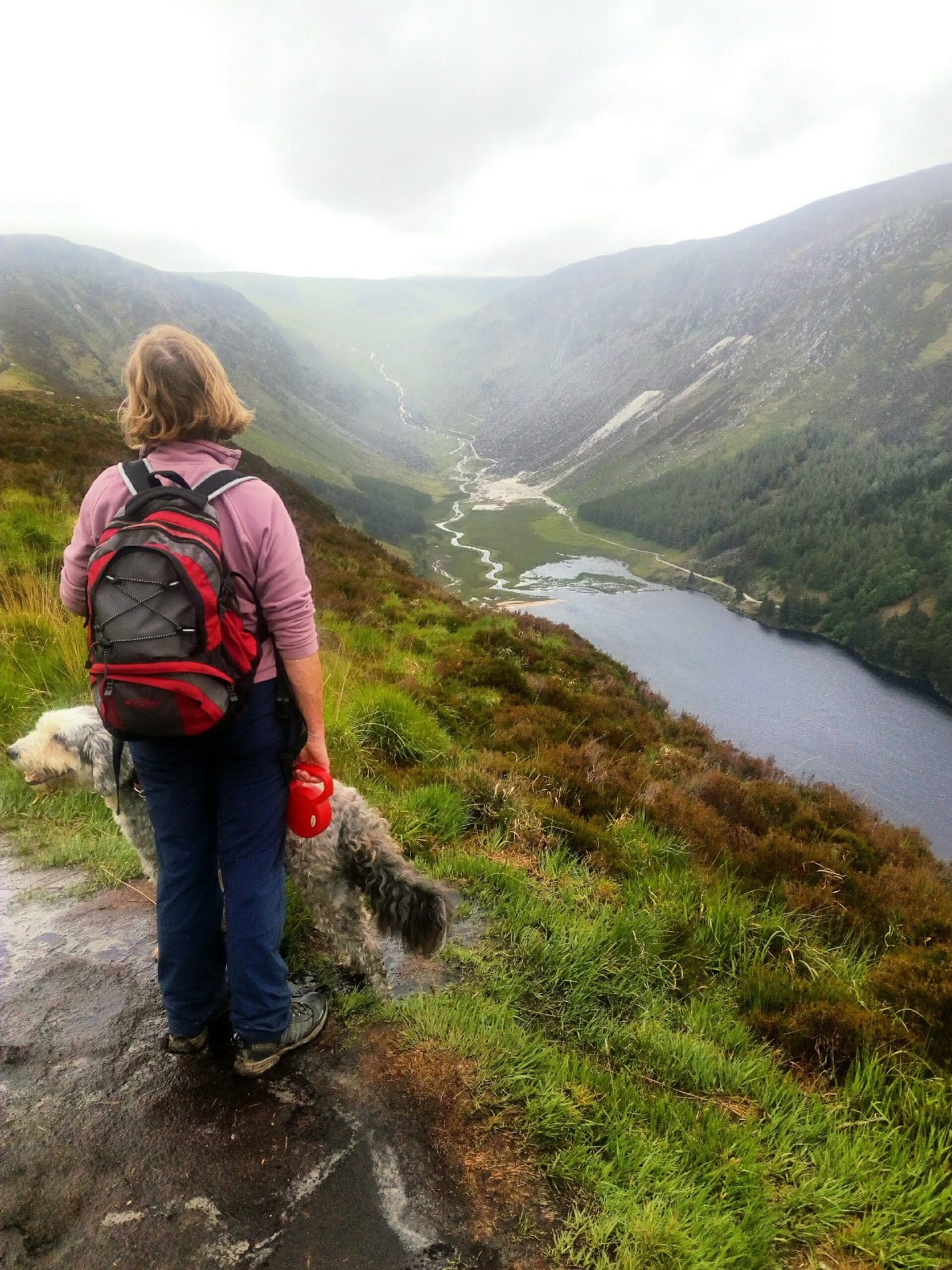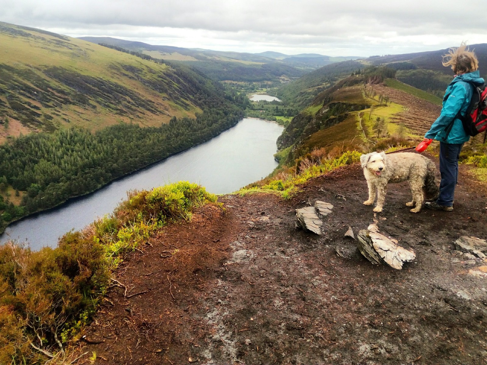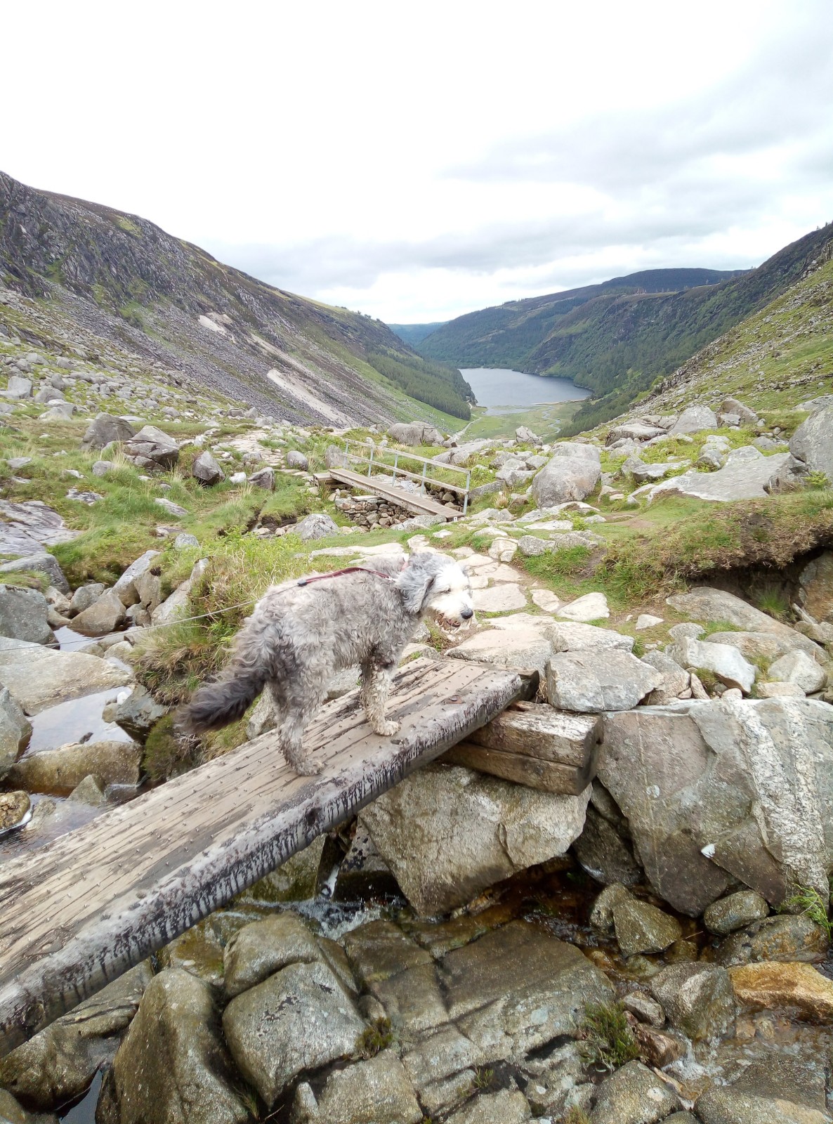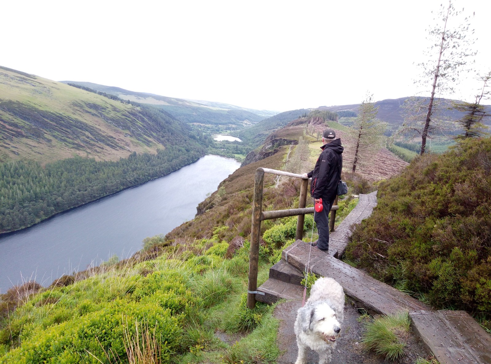 We weren’t sure what to expect, but after avoiding the €15 car park charge for motorhomes (cars €4 !!!) we were very pleasantly surprised. We chose the 9km walking route and proceeded to climb up a long staircase of over 600 railway sleeper steps. We walked along the ridge called the Spinc , and were greeted by fantastic panoramic views. The route took us over the hill and back down to the valley floor passing old lead mines and gushing torrents of waterfalls possibly due to yesterday’s rain. Misty really enjoyed the walk, tail wagging all the way 😀😀
