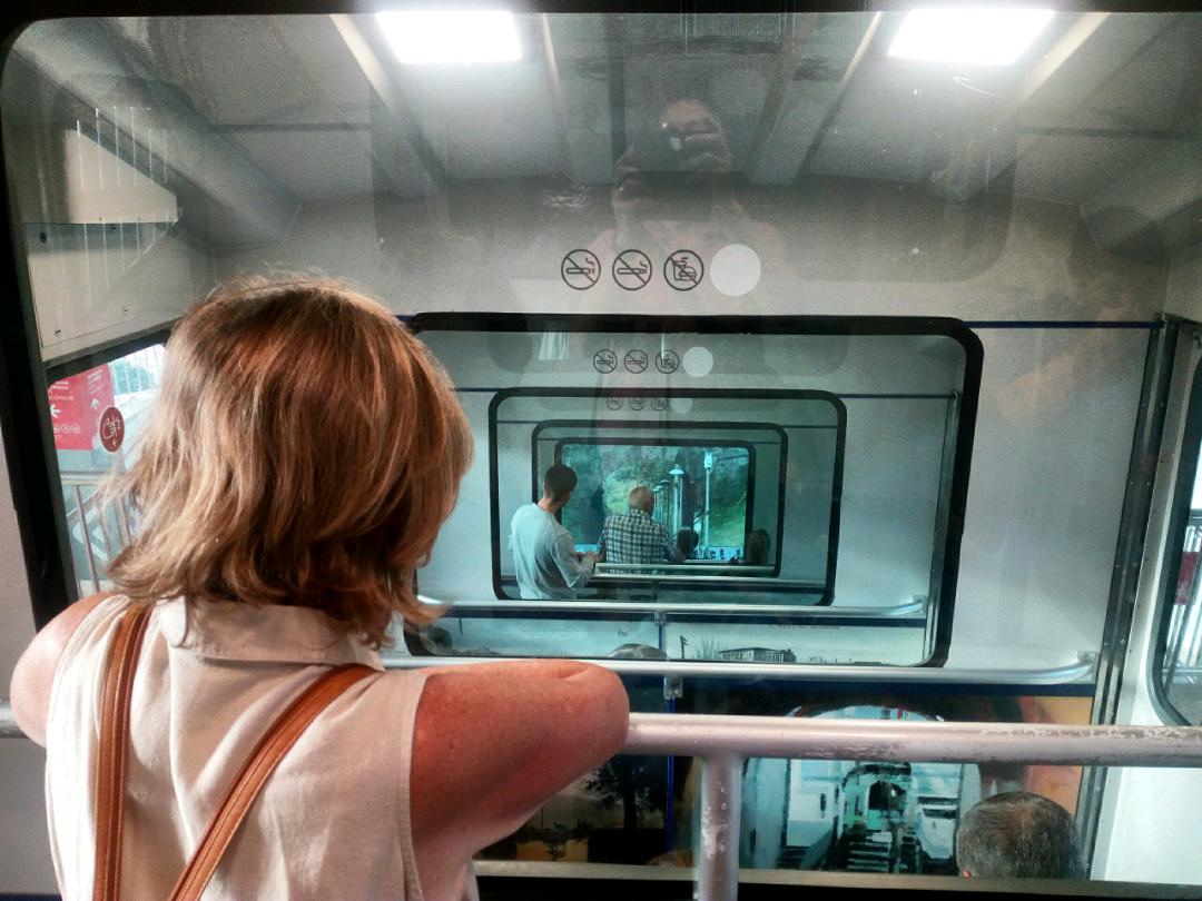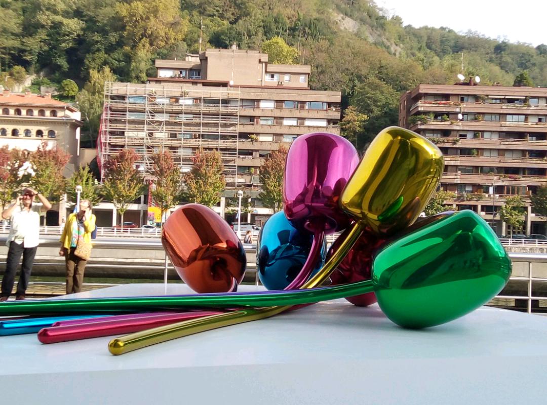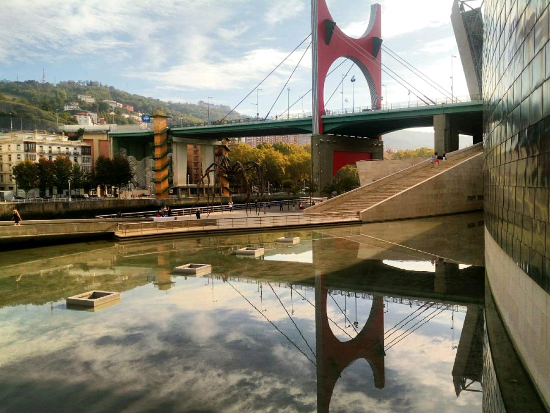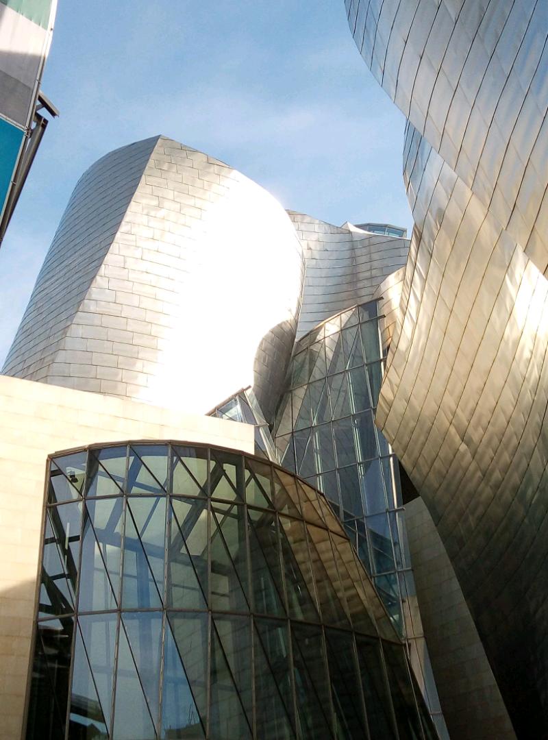 Down the funicular again towards our cultural hit for the day. What a magnificent building, the Guggenheim museum is, way better than the art on the inside!! Only one exhibit really made us feel artistic in a personal space kind of way. In fact the 3 very humerous klick clacks, 3 men dressed up with wooden clackers for mouths were the best thing there and they were Street performers. The giant flower puppy was also amazing. We were really pleased we had taken the time and effort to visit and enjoy. Frank Gehry the architect, your awesome.