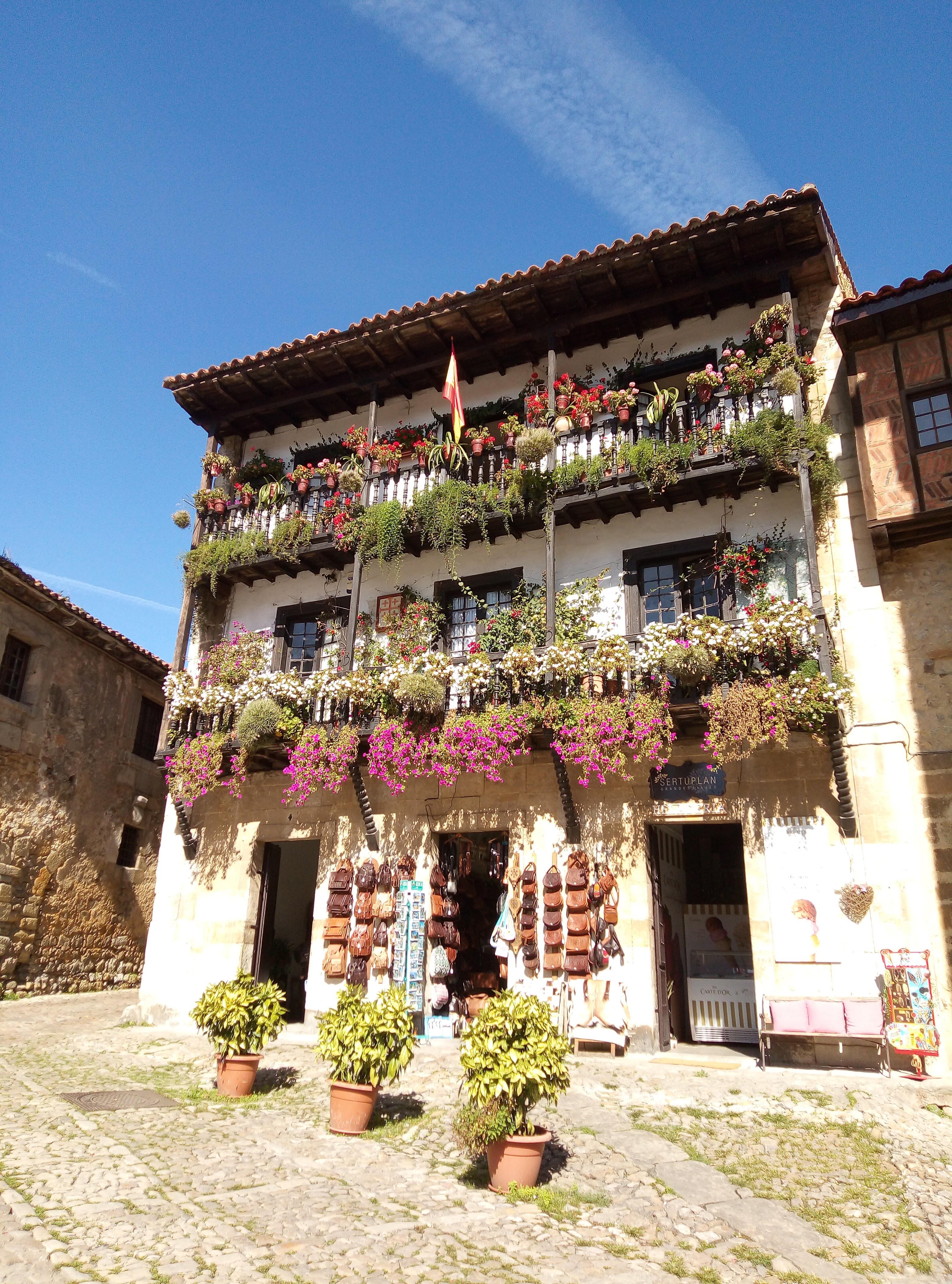 We visited Santillana del Mar today. It is neither a saint (Santo), not flat (llana) or by the sea (del mar). Other than that it was a very pretty, well maintained, touristry, medieval village. We wandered through the arches of the old church and courtyard, had coffee and seafood lunch and undertook some retail therapy, at least Ian did.