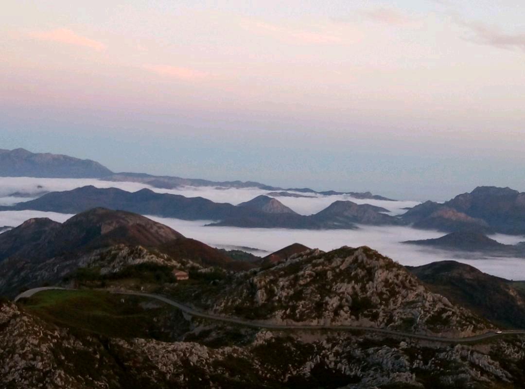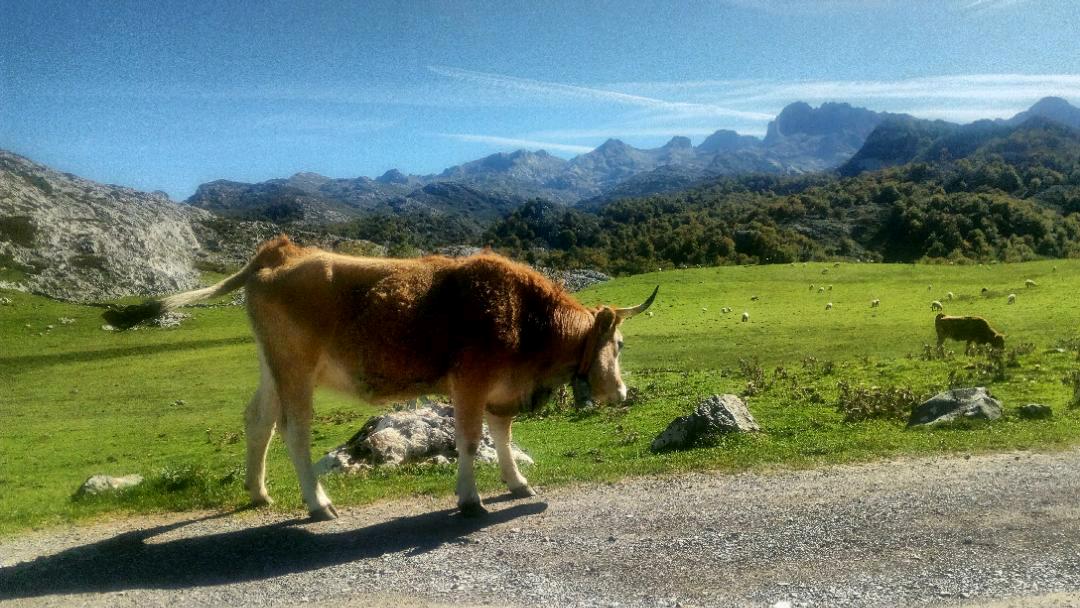 We started driving in dark the 12km to Lagos Covadonga, up 3500ft, with numerous hairpin bends and sheer drops. It was amazing, scary but amazing, as we went up above the clouds and as the sun rose over the mountains. Needless to say breakfast at the top was extra tasty.The sky was cloudless all day and the sun made the mountains look more majestic.