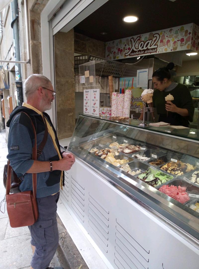 The pilgrims heaven of Santiago de Compostela a our 3rd visit of the day. We parked on the University campus and walked through the gardens to the Medieval center. The intricately carved cathedral was the main point of interest. Awesome but the ongoing renovation work meant we did not see it in its full glory. The redeeming factor was finding an ice cream shop in one of the cobbled streets.