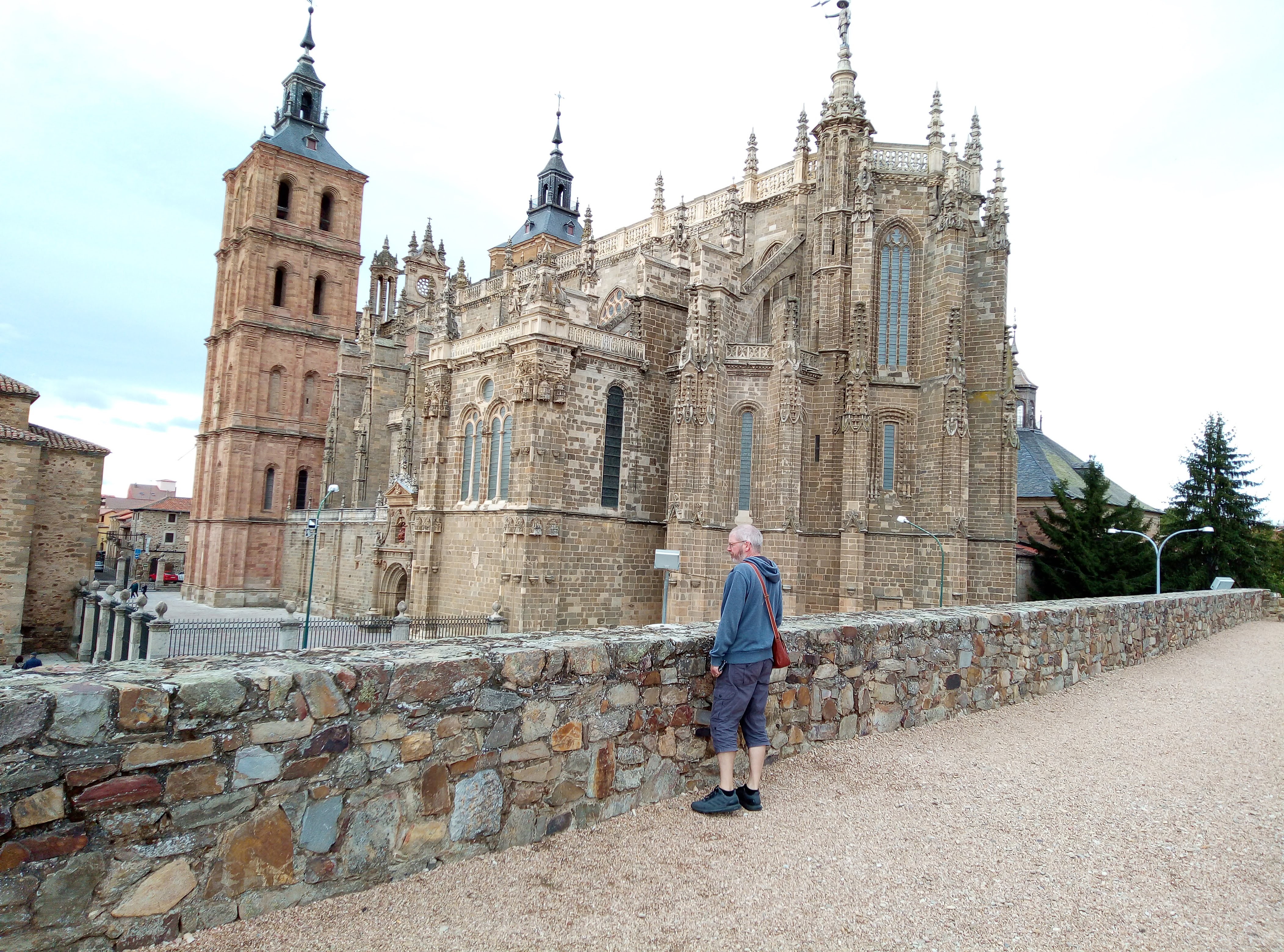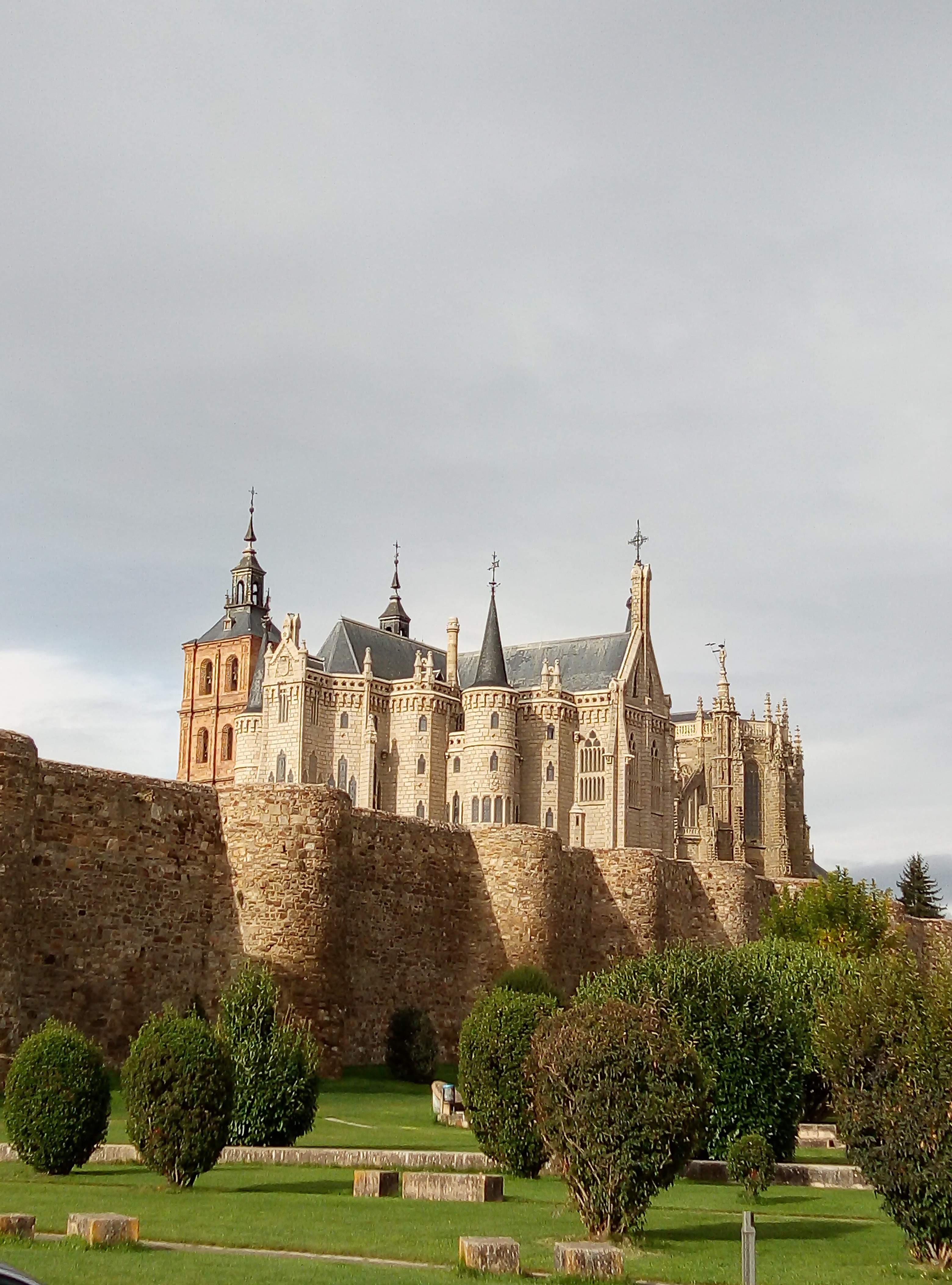 Parking was the only thing difficult about Astorga, but that was only because the entrance was not signposted. We only drove past it twice. Gaudi’s fairy tail Episcopal Palace was magnificent. A brilliant architect who kept resigning when they tried to change his designs. The brilliance is in the detail, even down to the angels for the roof which are now in the garden because he resigned before the roof was finished, the roof design was subsequently changed. He also restored part of the Roman city wall to incorporate it into the design, so the bishop could take a morning stroll.