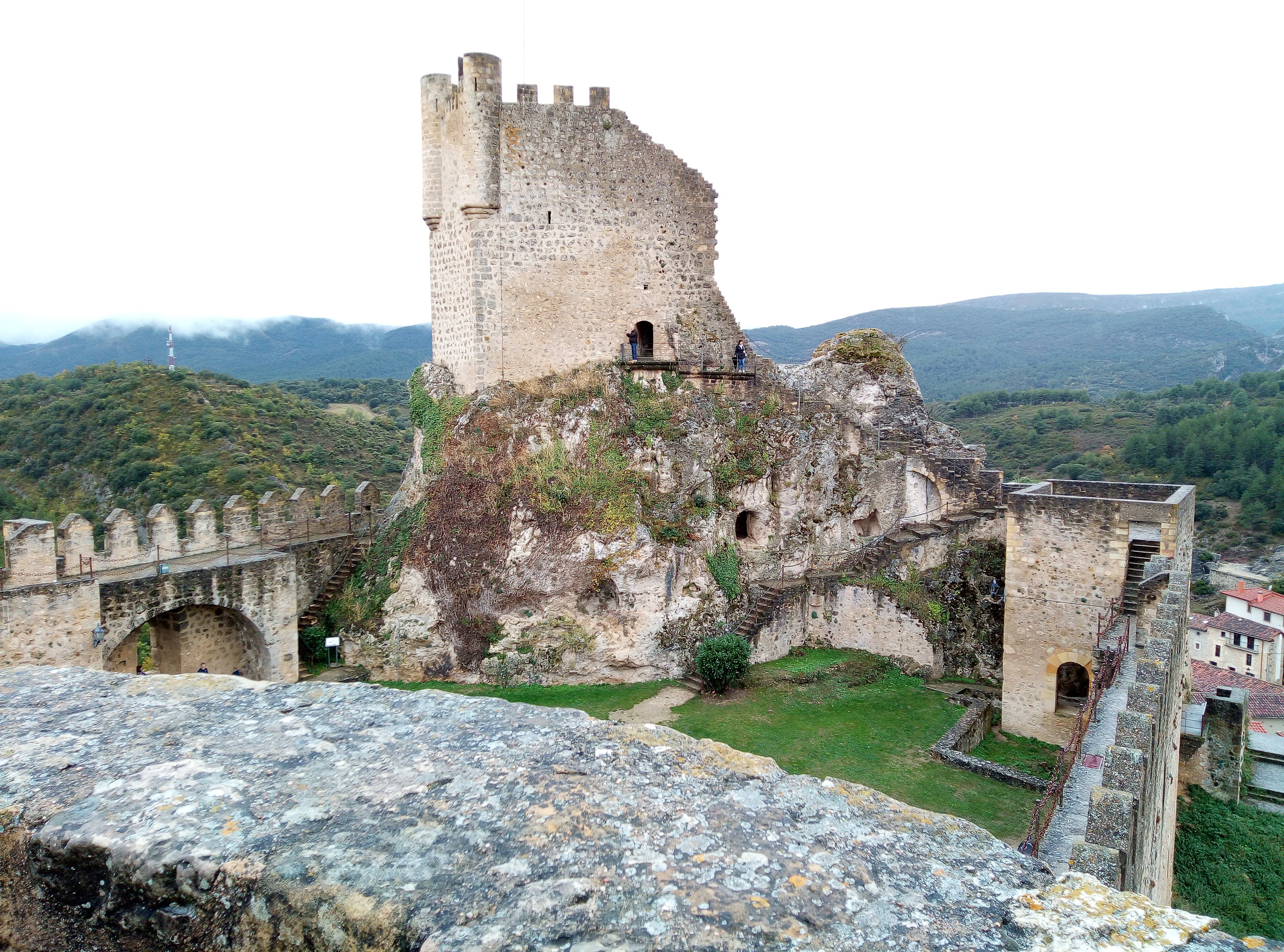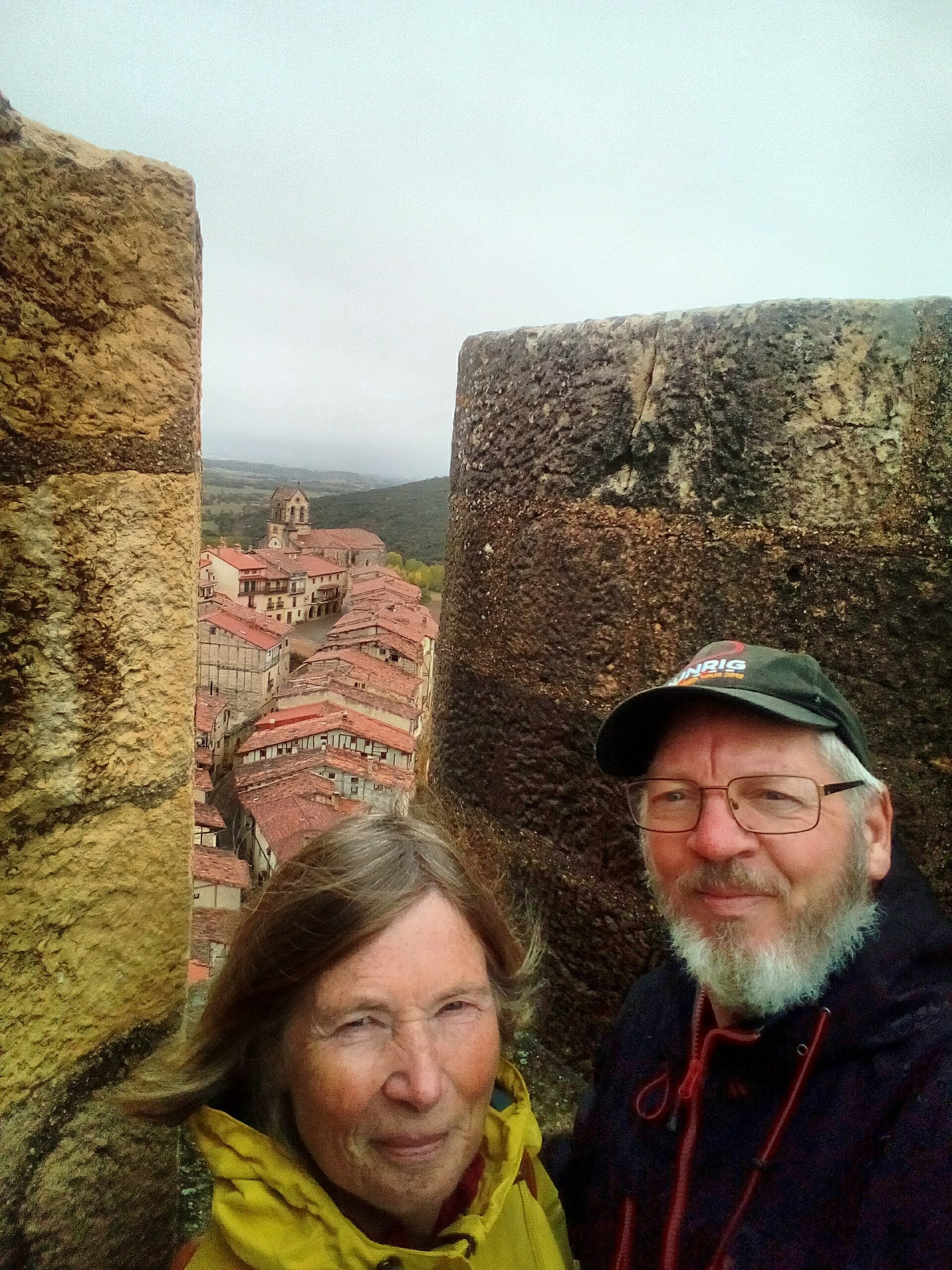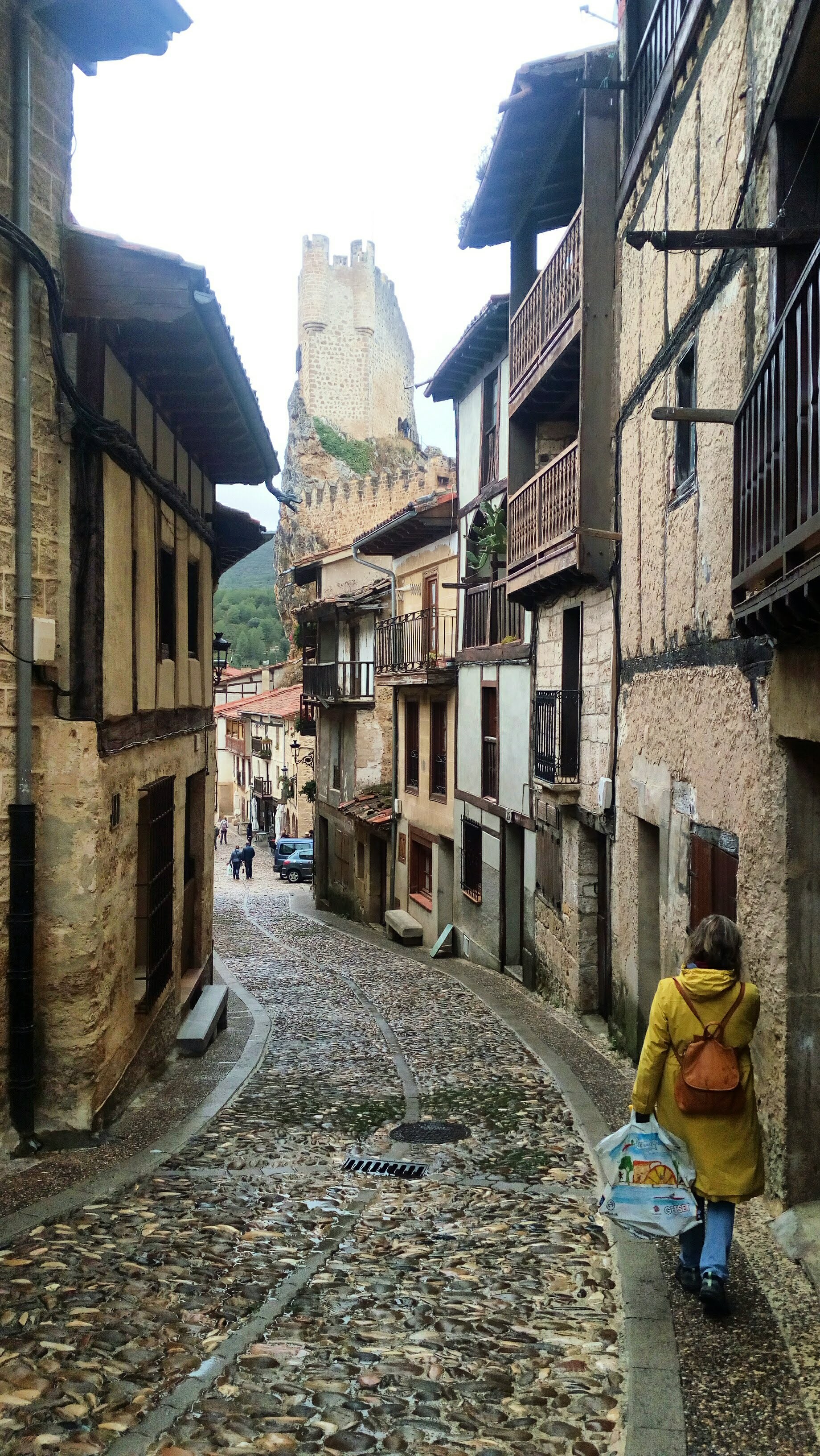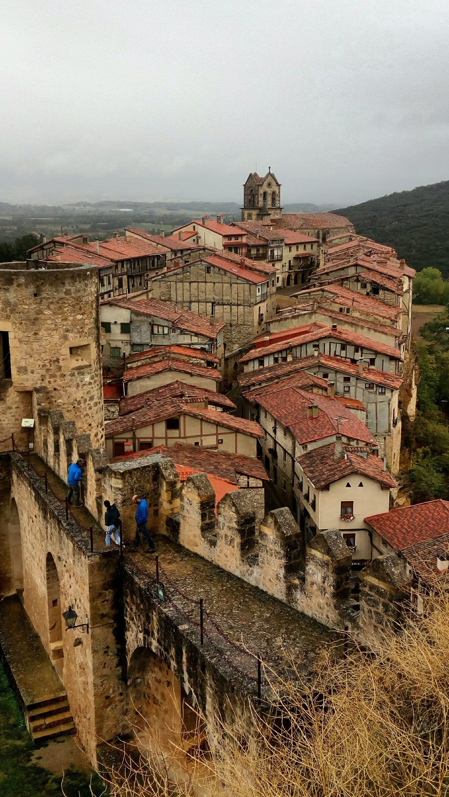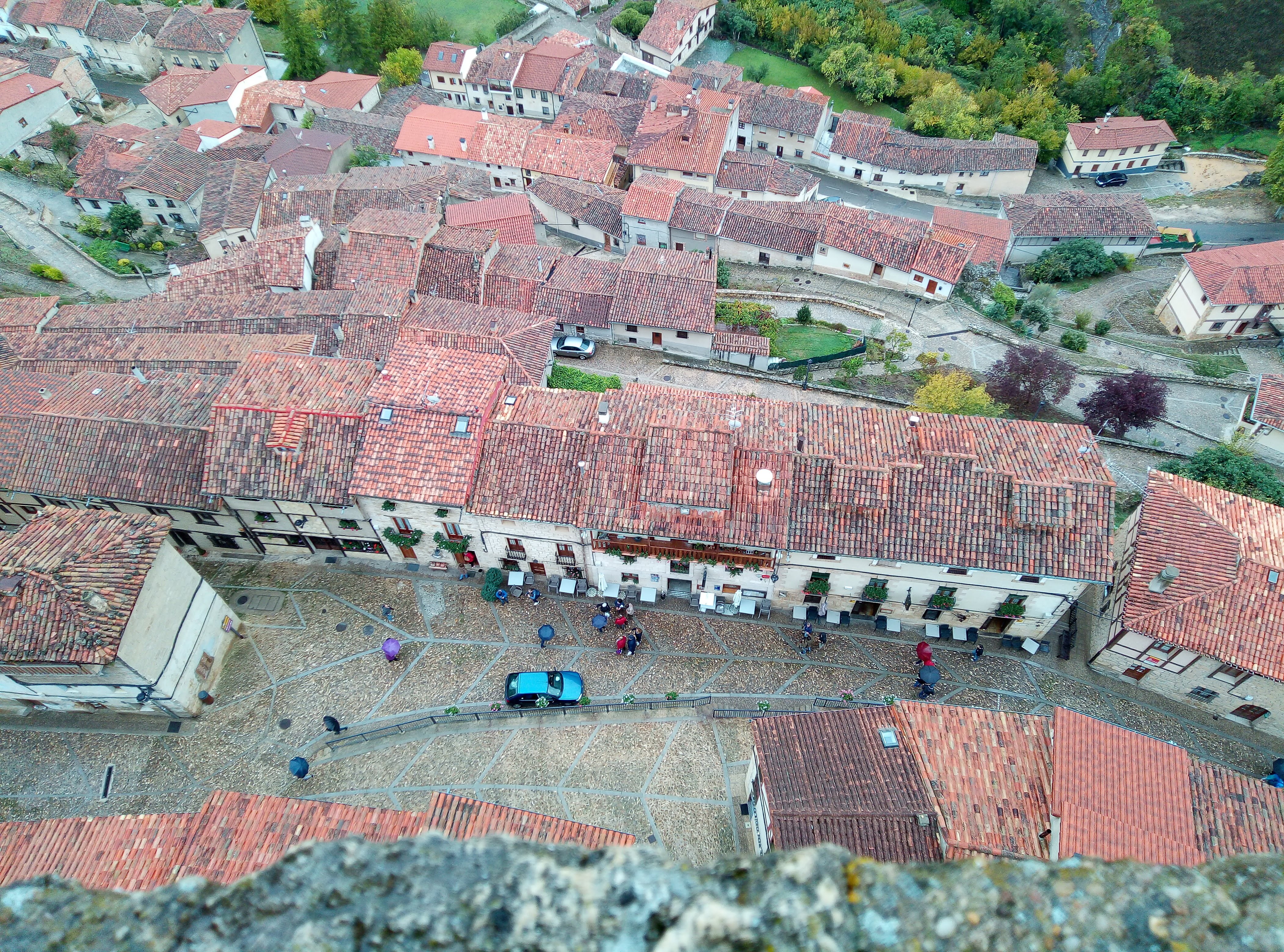 We like small and especially when it is perched on a rock. Famously, or it should be, Frias is the smallest city in Spain, and the third smallest in the world. A castle fortress perched high on a rock with a church and houses all built into that rock. We climbed the well preserved cobbled streets and paid our 2 euro to go inside a Tardis which was much bigger on the inside with battlements to walk and towers to climb. The tallest tower on a well worn piece of rock was really high up, even the few cars on the streets below look like miniatures from the top.