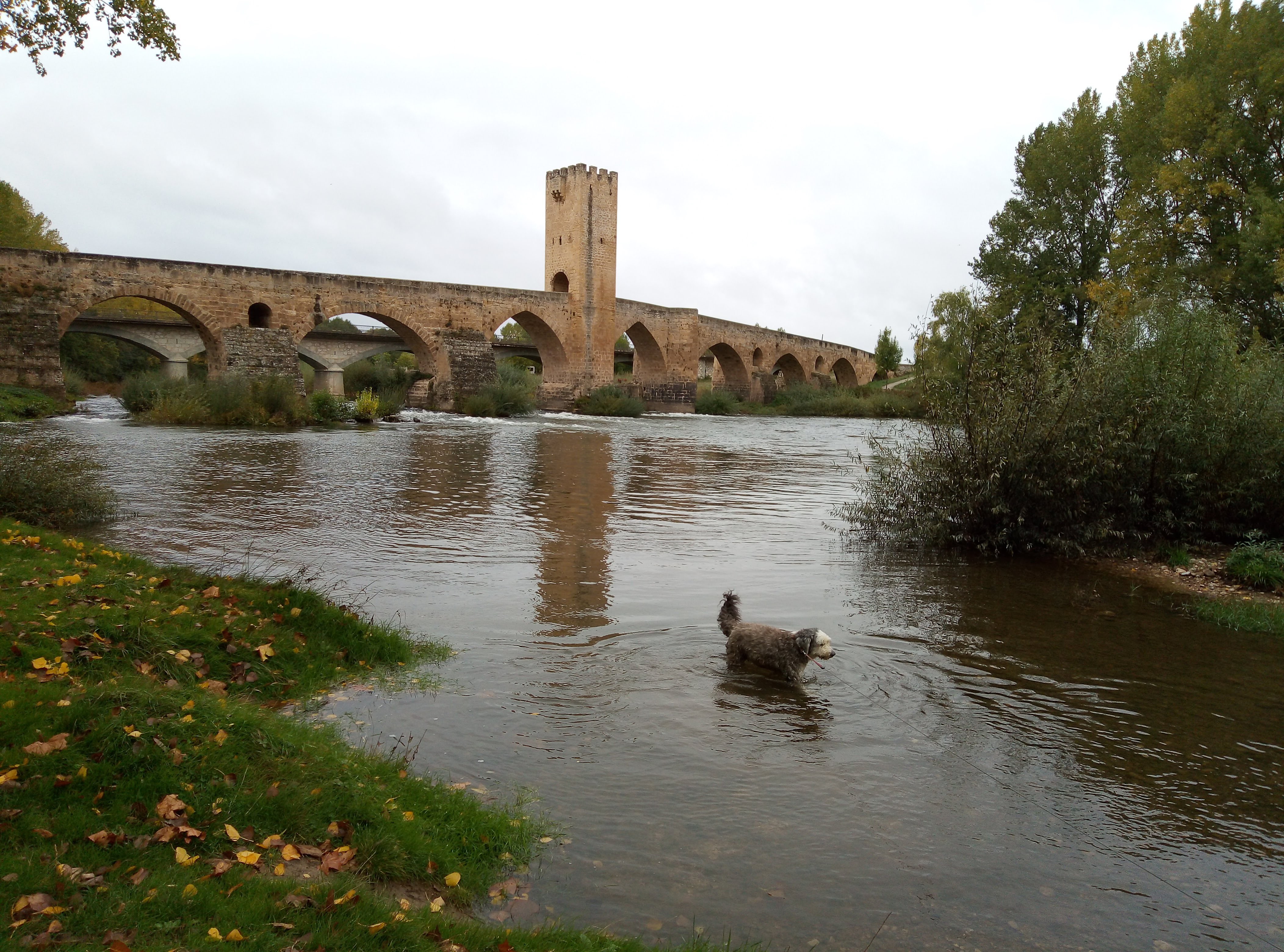 We had lunch in one of the small bars before retrieving Misty from the van and going for a walk to the Roman Bridge.