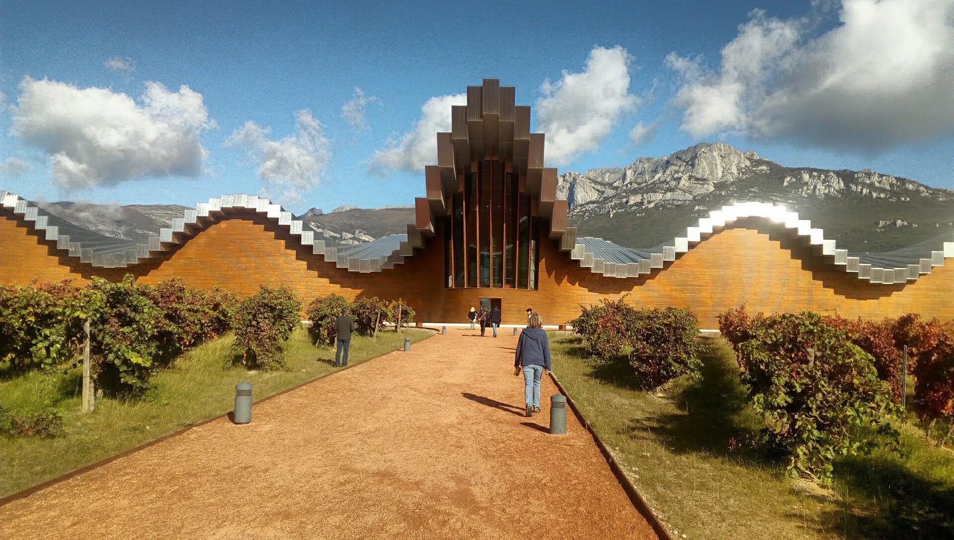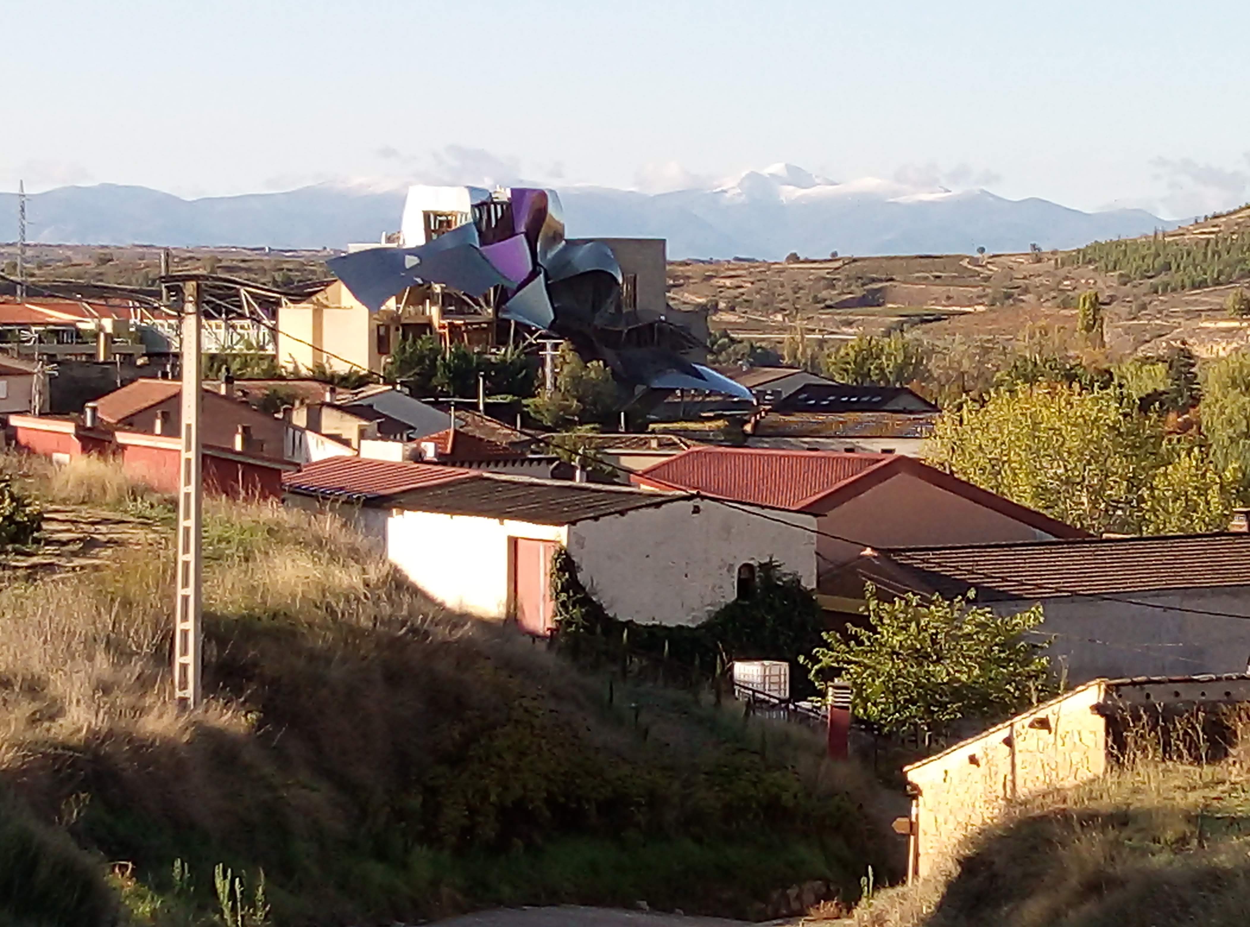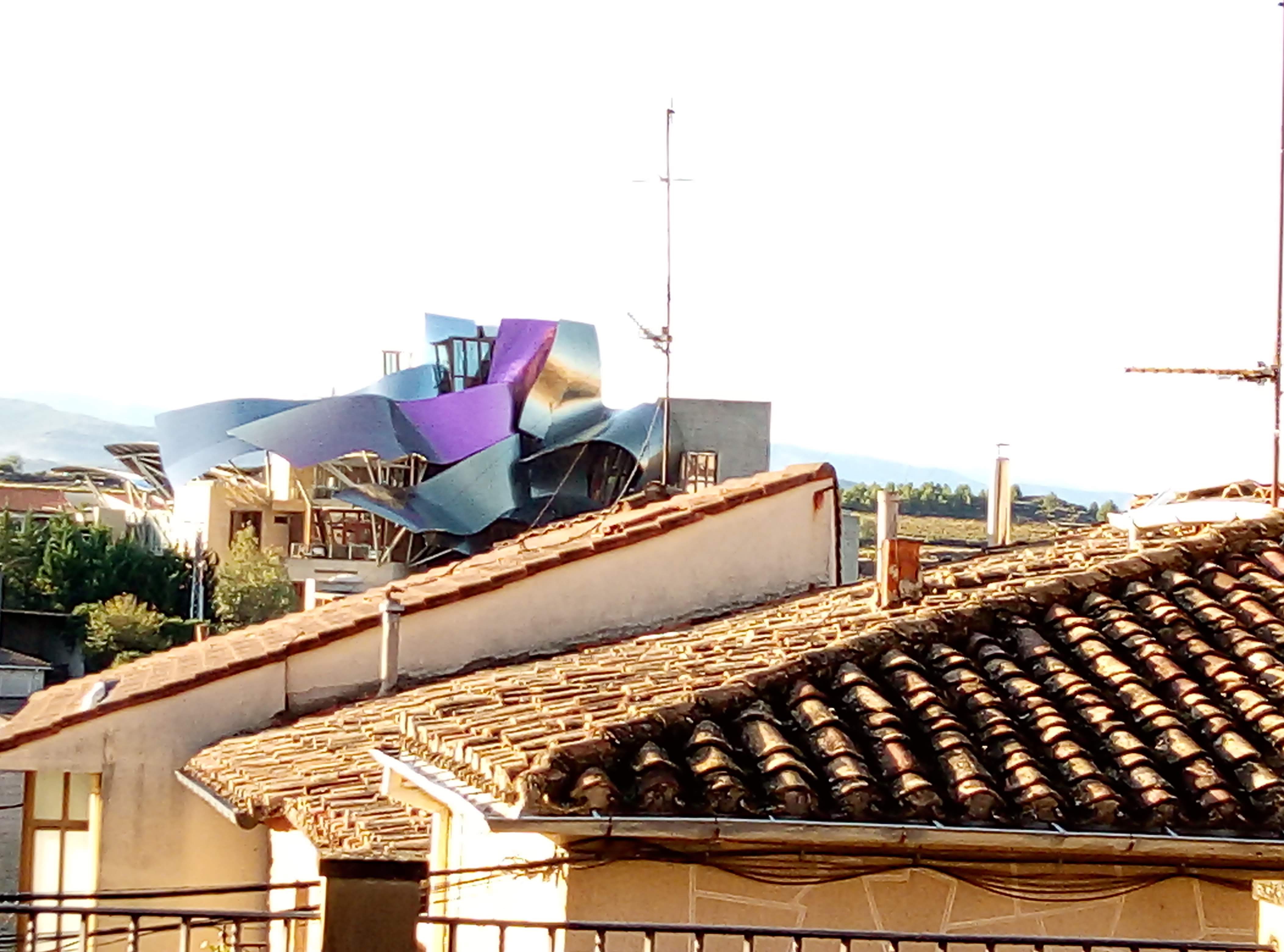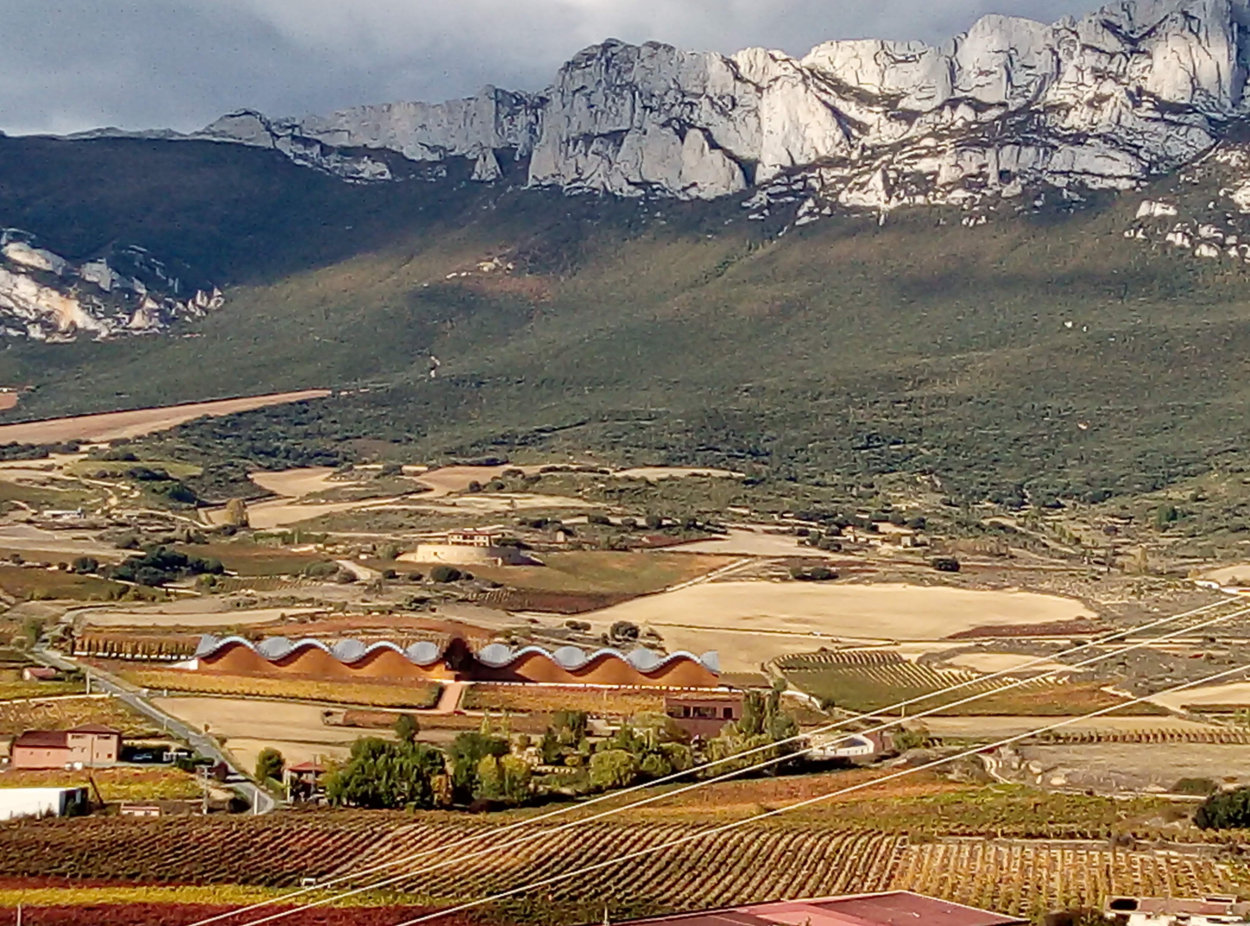 Our last full day in Spain has been brilliant. We have looked at traditional and contemporary, natural and man-made. It started this morning in Elceigo walking through the old town looking at the modern architecture (Frank Gehry, from Bilbao fame) reinventing a traditional Bodegas. We then drive to la Guardia and in the middle of the vineyards found Bodegas Ysios, a fantastical shining wave, again reinventing the bodegas. This one far more splendid with its background of mountains and surrounded by vines.
