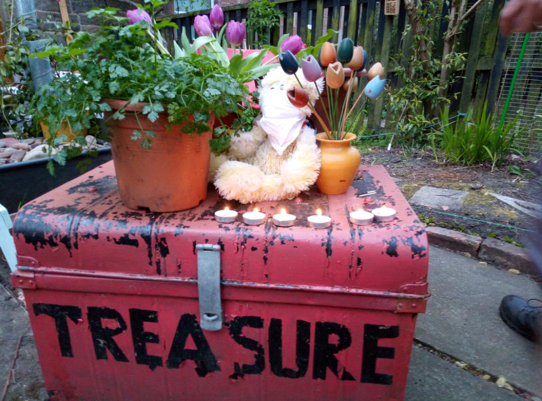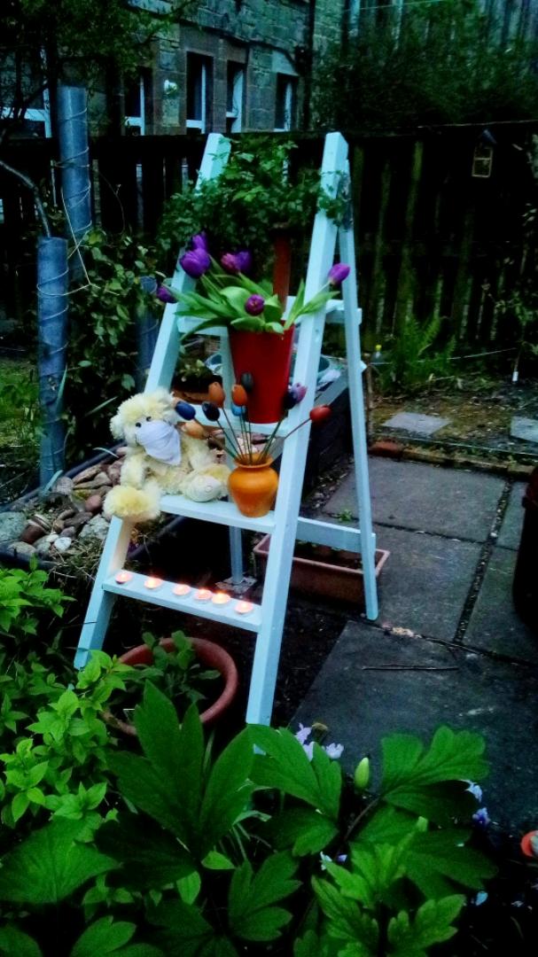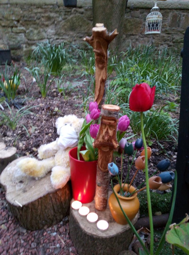 We tried, we did not have weeks, Sainsbury’s did not have too many tulips and Barbara would not allow picking them from the garden. So we hope that the photos of our effort convey the essence of the imagined illuminations. We have rebooked to go next year to see for real. Please note Sixty the bear always travels with us, but was a bit frightened this year hence the mask.