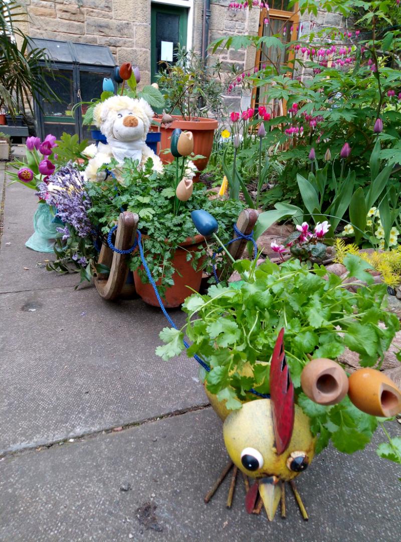 We have put our time to good use though, we spent at least 30 minutes putting together our own flower float. We think our efforts are worth while and even Sixty took her mask of and smiled. Misty wanted to pull it but she was bigger than the float so no space.