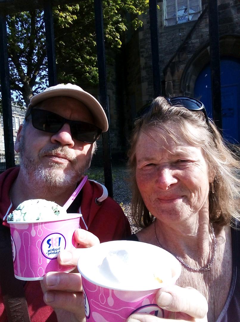 In other news what are travellers supposed to do when it is hot? Eat ice cream of course and by chance we passed a takeaway ice cream shop on our dog walk. Fortunately Misty does not like ice cream so we had to eat hers as well.