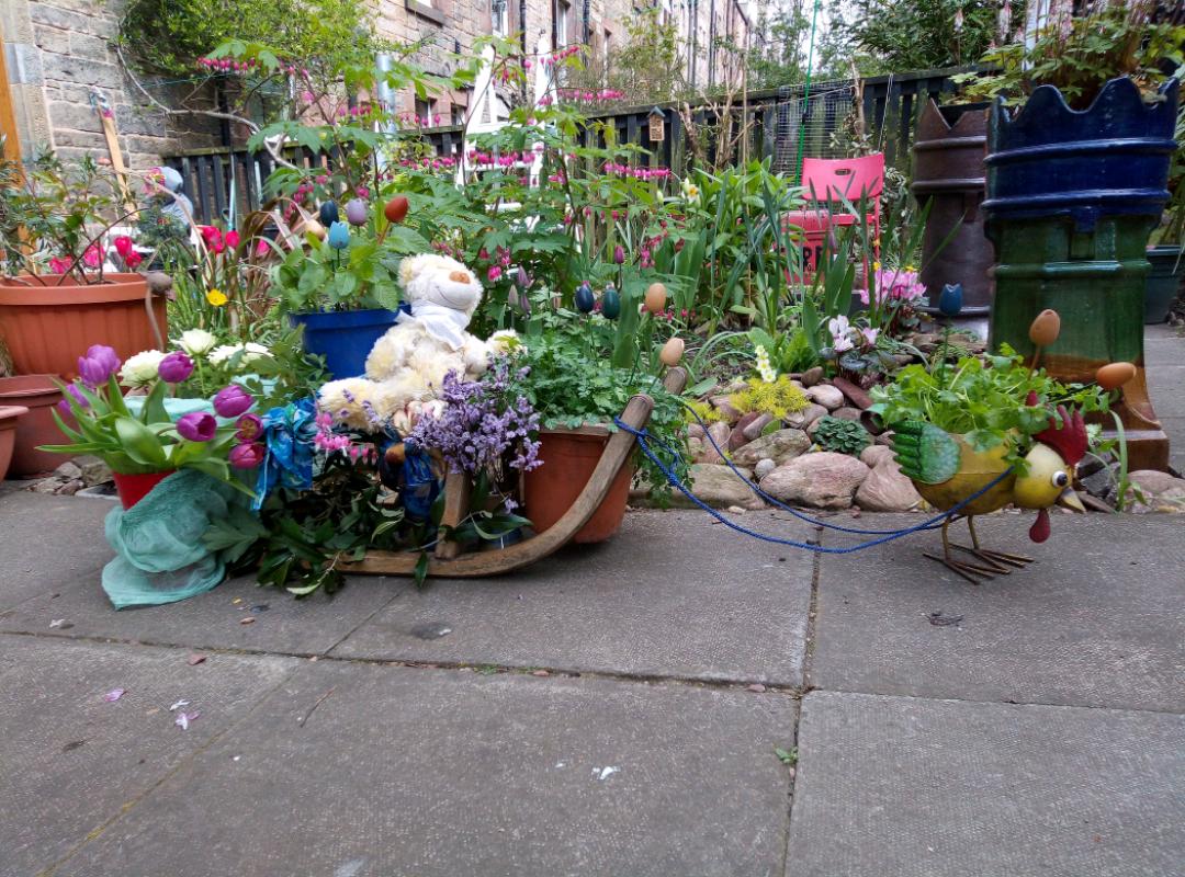 We have put our time to good use though, we spent at least 30 minutes putting together our own flower float. We think our efforts are worth while and even Sixty took her mask of and smiled. Misty wanted to pull it but she was bigger than the float so no space.
