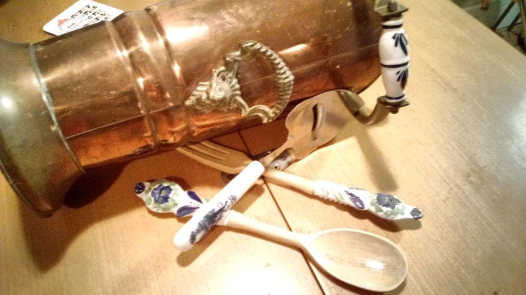 One of our first visits abroad together was to Amsterdam and 25 years later we were due to revisit. The first trip only took us to Amsterdam but this time we planned so much more. Today we were going to Delft. We found everything that we could to represent Delft. This only amounted to a handle on a coal scuttle, a cheese slice and some salad servers all of dubious providence 😂.