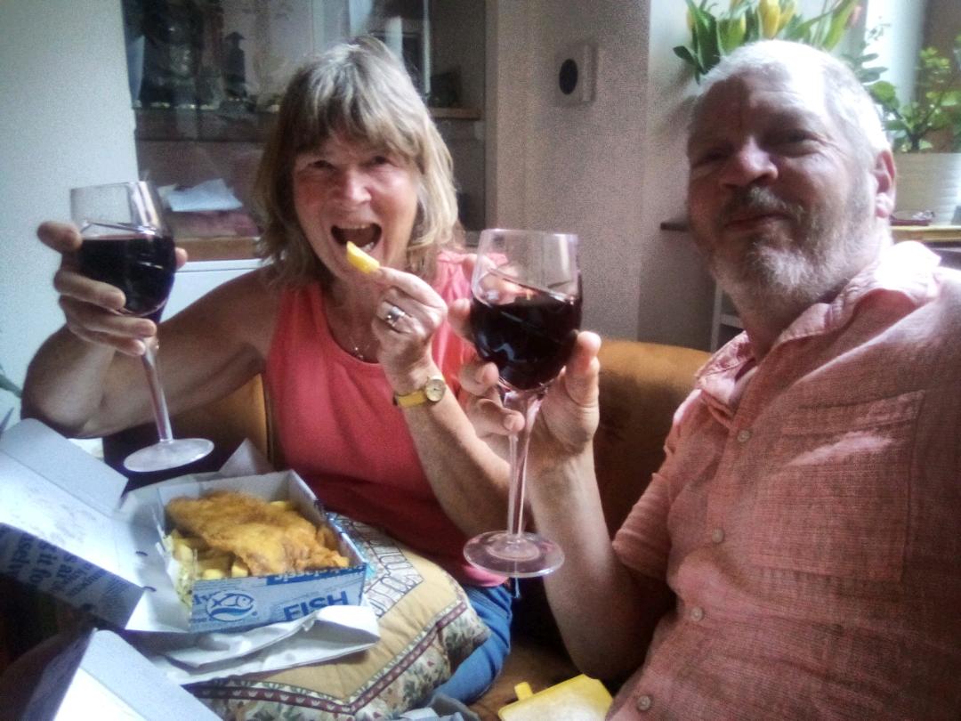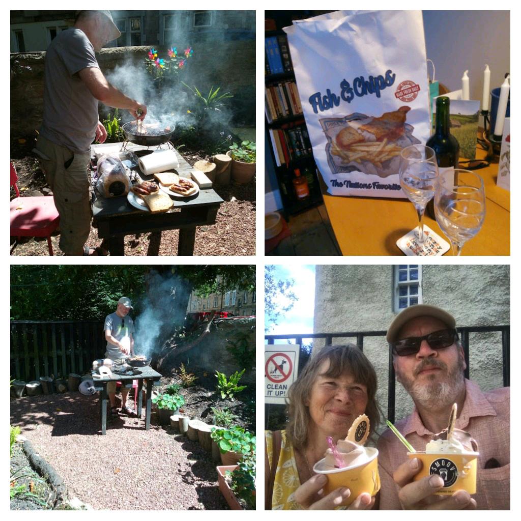 Back home to bed for a couple of hours followed by barbecued lunch in our wee garden. Then the ice cream called so we wandered up the royal mile to our favourite gelato shop. The afternoon was spent chilling in the sunshine in our garden before ordering our go to food. (Whenever returning home from our travels we have fish and chips and a bottle of wine) Unable to go out to eat we ordered a takeaway from bene’s, the best fish and chip shop in Edinburgh.