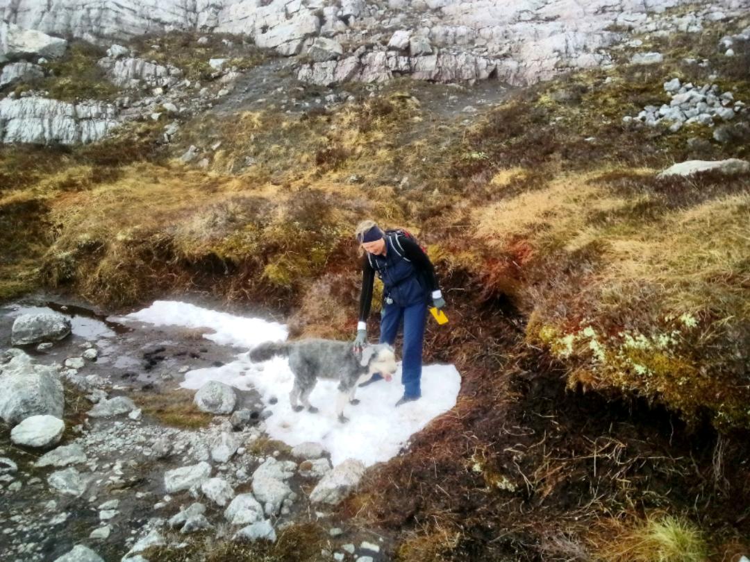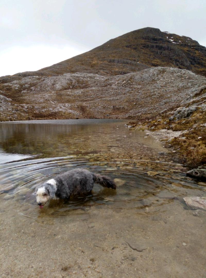 Great day despite our big big mistake!!!! Our Misty is one hell of a beast. We thought 4 miles up a hill and back 2 hours easy peasy! We forgot we were in the Highlands of Scotland, have a 10 year old dog and were going up over 1800ft. Misty followed, jumped, climbed and allowed us to push and pull her around some scary, Precarious boulders. The view from the top was awesome and we have to believe that Misty thought so too. But by then she was really tired and went in every snow patch and lochan on the way down. The last mile was awful, mainly for her but also for us. By this point one of her feet was bleeding and we were contemplating carrying her but would probably have caused more harm than good. So we just encouraged and being the mighty dog she is , she made it back to the van. We’ll all sleep tonight but one of will not be able to walk tomorrow. Sorry Misty. Our fault.