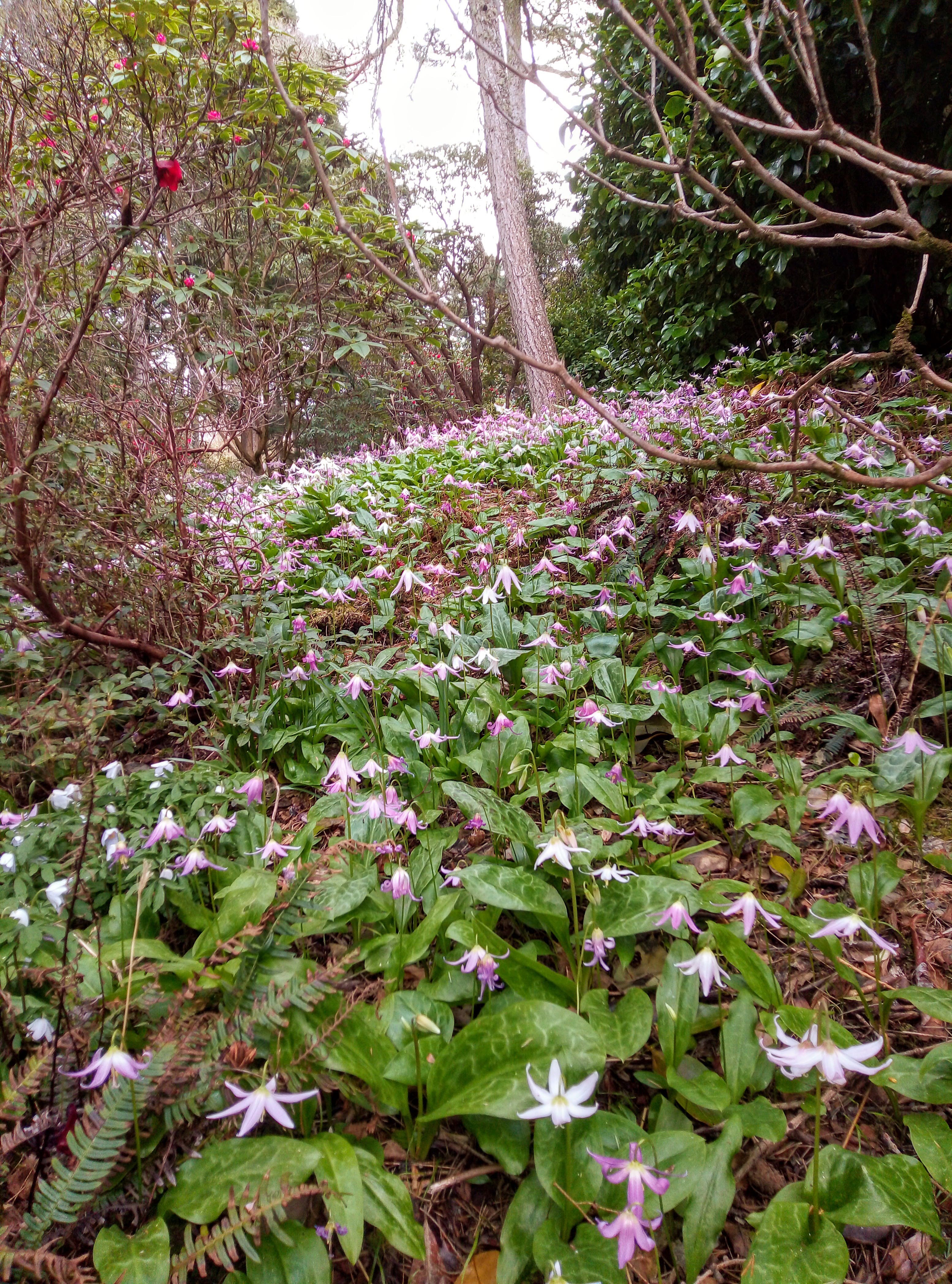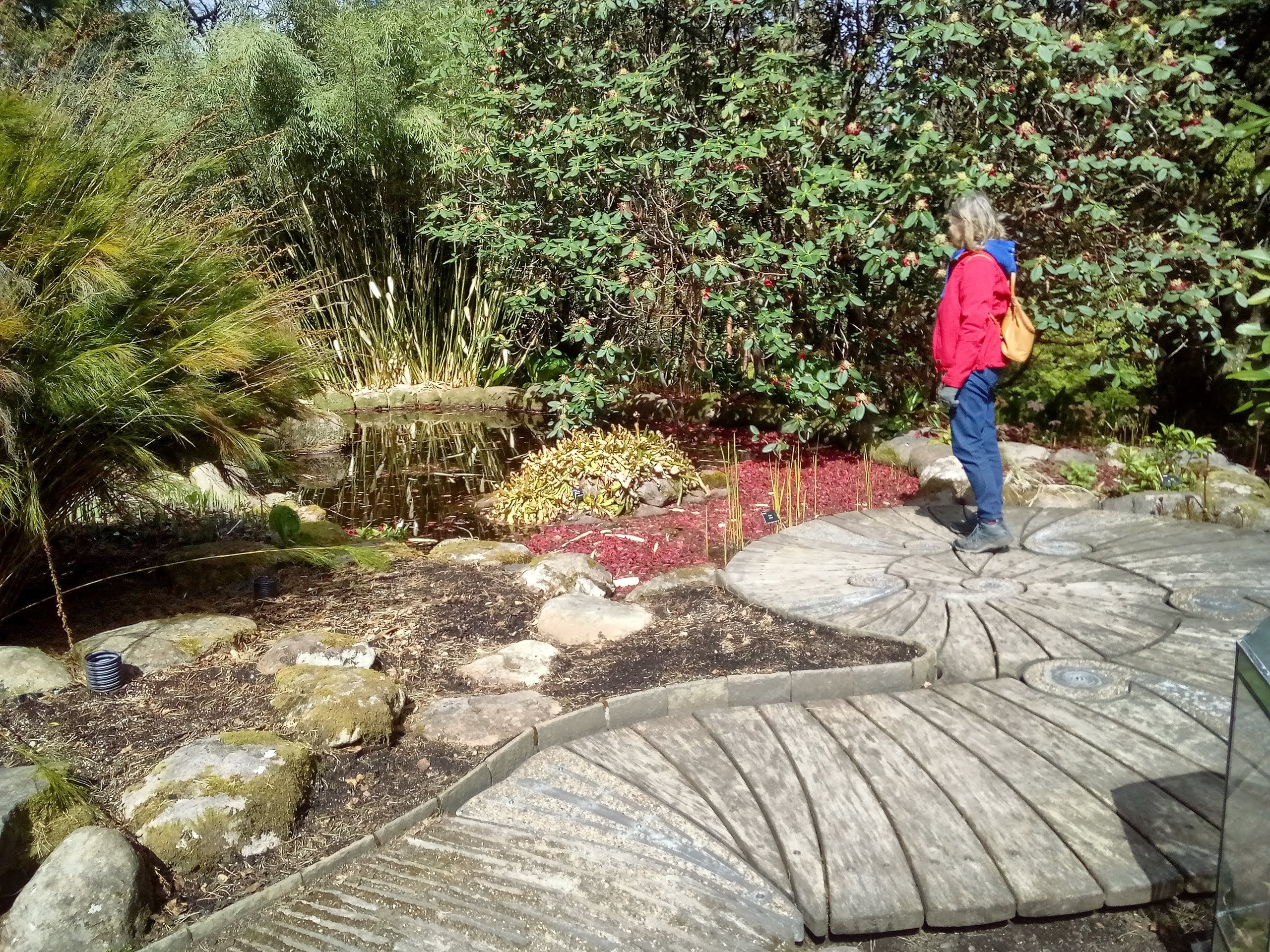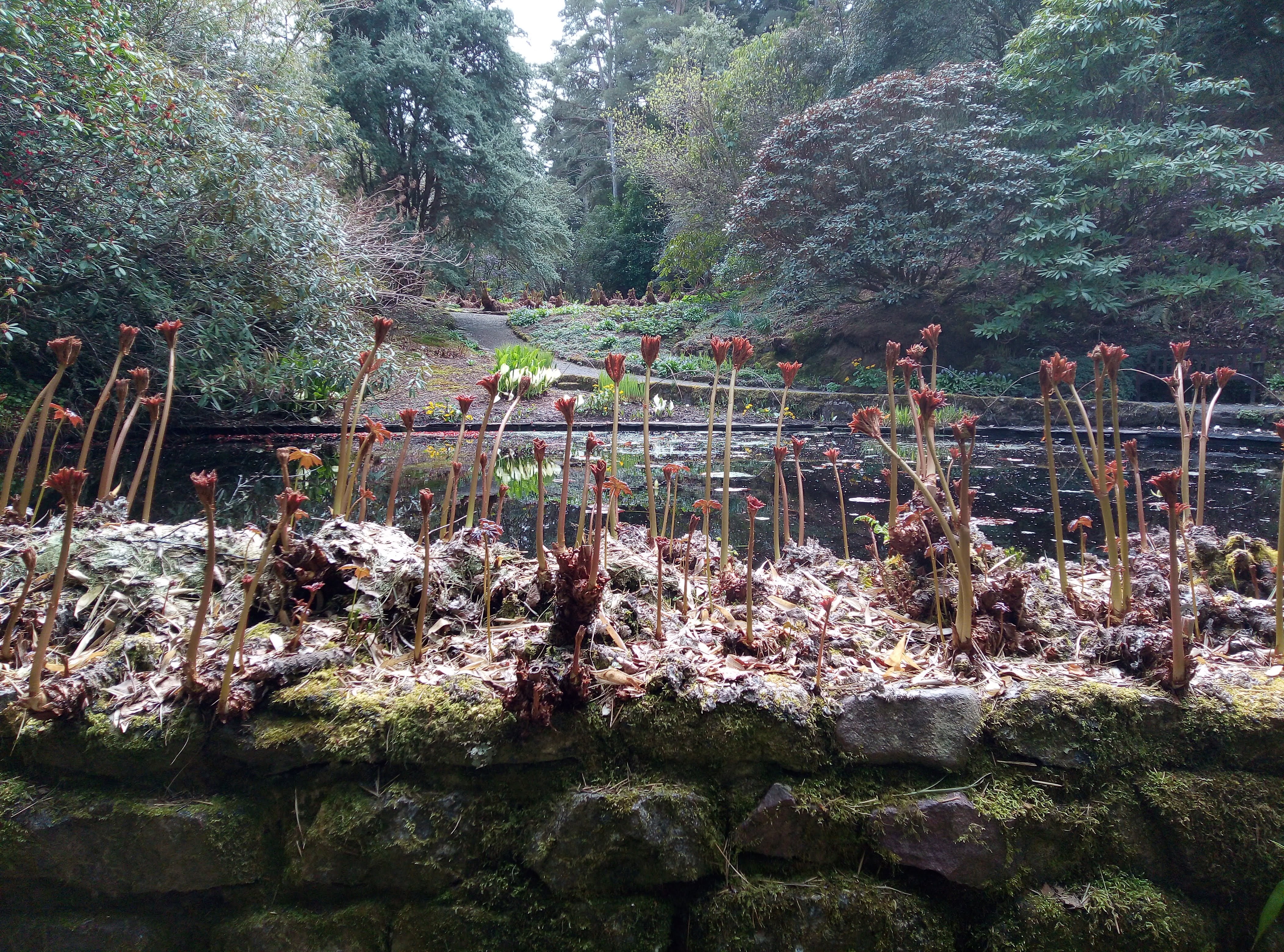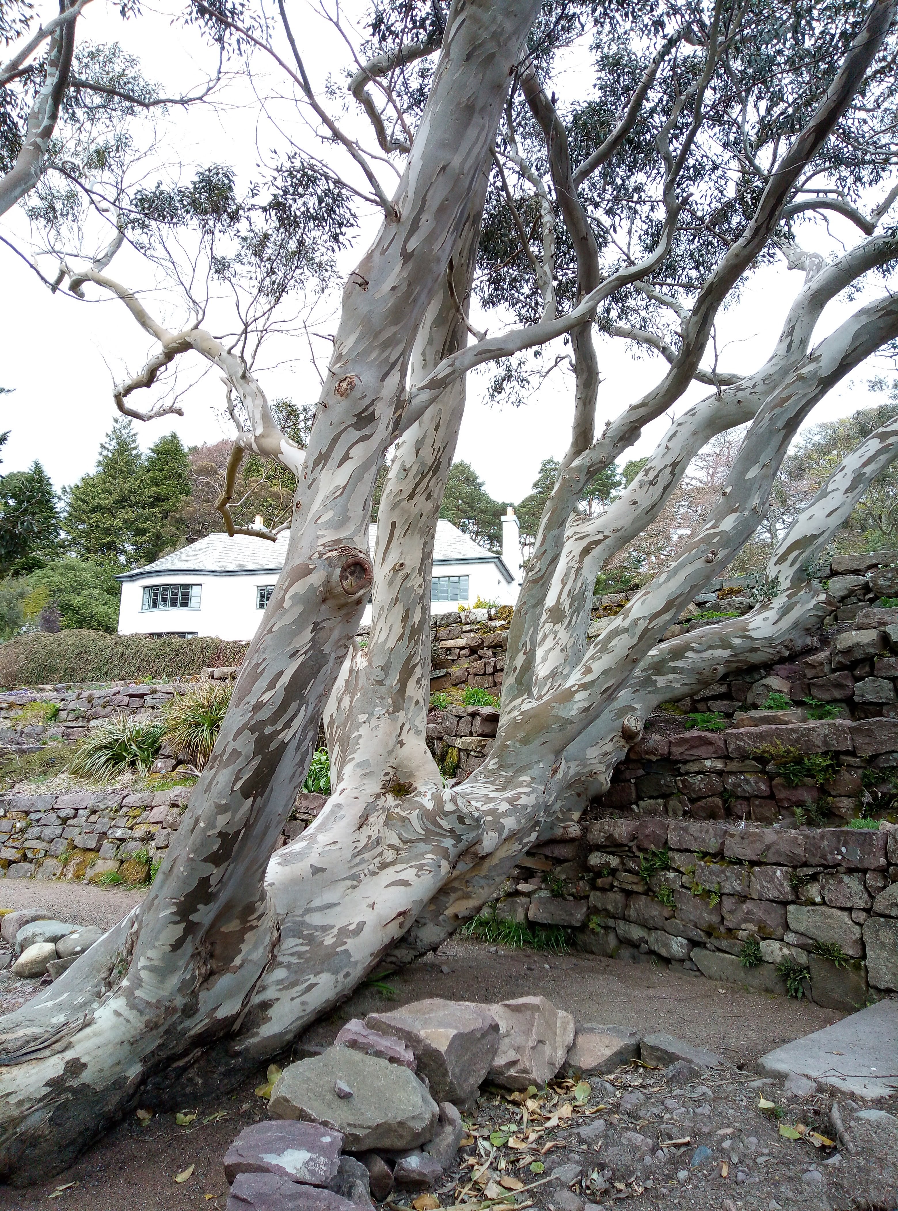 The gardens were open but not the shop… Boohoo no ice cream. We wondered along very quiet windy paths looking at plants as far apart as tiny woodland anemone to huge Eucalyptus trees and tall magnificent Scots fir. The curved walled garden was magnificent bit not in full bloom yet. A lovely shelted spot to look over the water. We could not coax misty out of the van (not that she was allowed in the gardens anyway) so after looking at every flower, bush and tree we headed to the beach. We believe the salt water helped her paws and it was a stunning beach anyway. Heading back to the campsite now.
