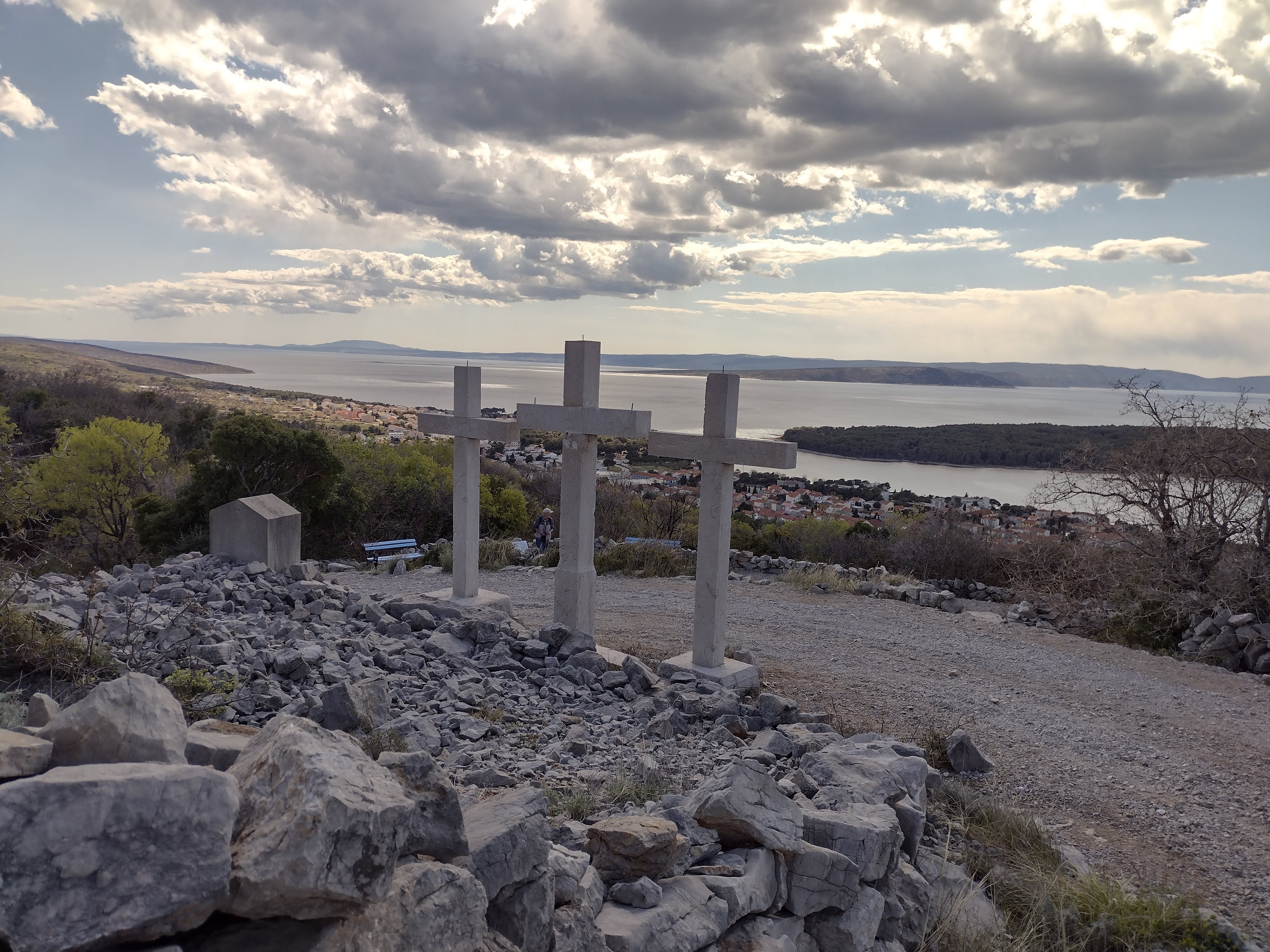 To warm ourselves up after the boat ride we headed uphill following the Camino Krk, which is part of a pilgrimage path connecting Croatian churches. We passed 12 mosaic stations of the cross which led to 3 crosses high on the hill with fabulous views across the bay. All that was left to do was to find the local gelato shop. Yummy😄