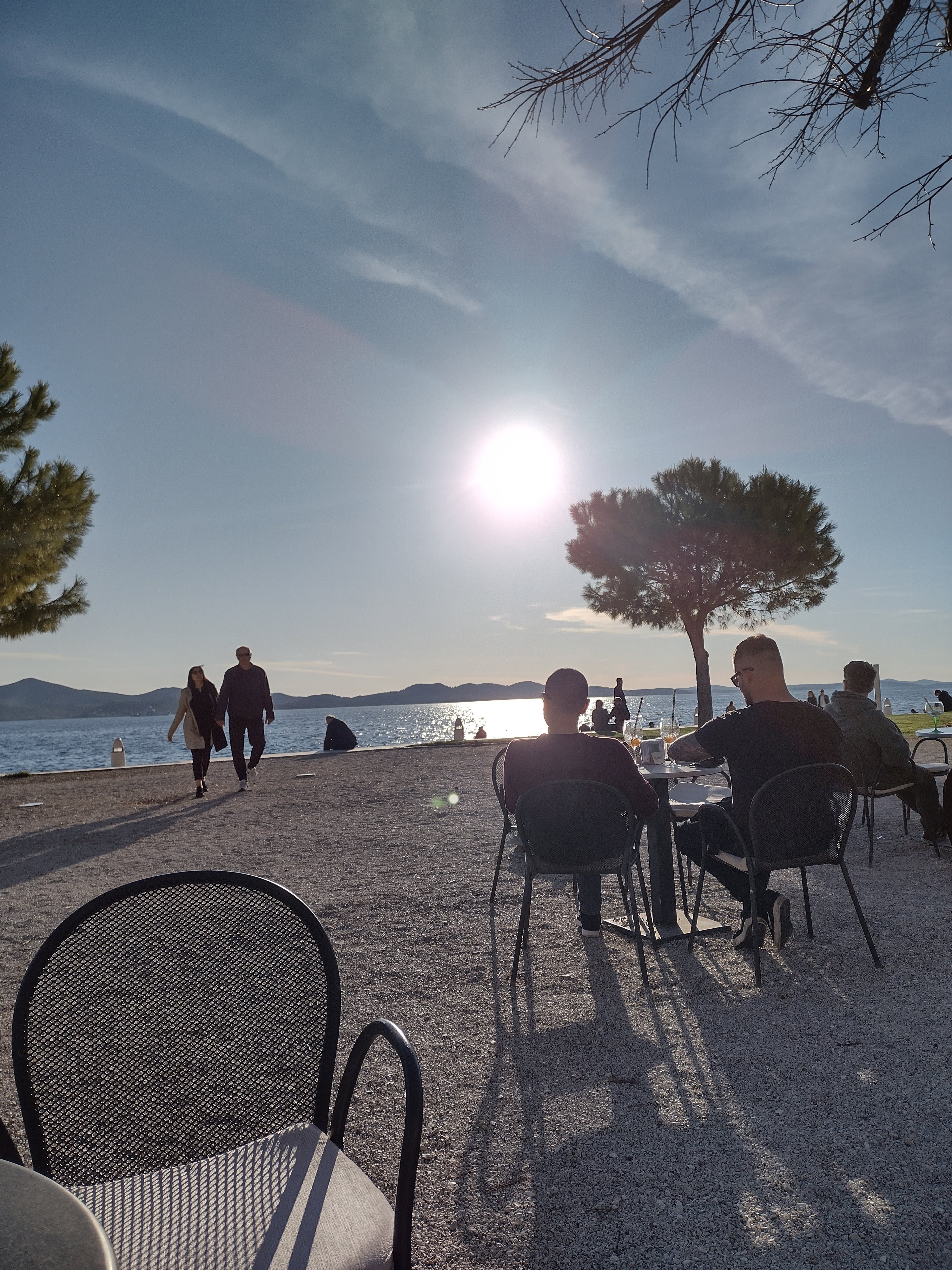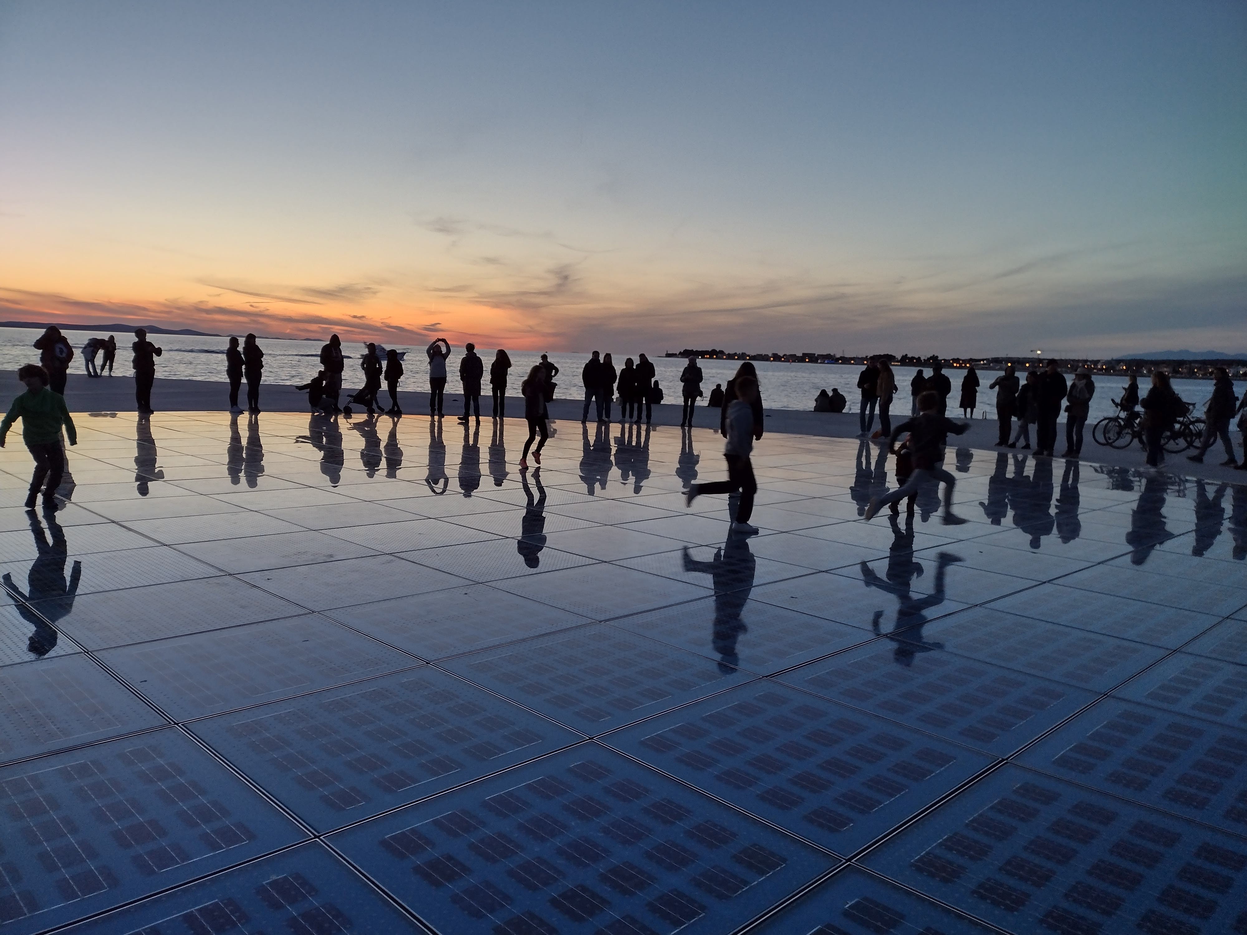 Refreshment was necessary, it was 17° after all. We enjoyed a drink listening to the fabled sea organ. A manmade art installation using waves to make music. Alongside this was another feat of human engineering, ‘the greeting to the sun’ solar panels that after sunset create a wonderful light show. A wee local restaurant provided sustenance in the way of fish stew and sea bream after which we revisited the light show which in the dark was far better.