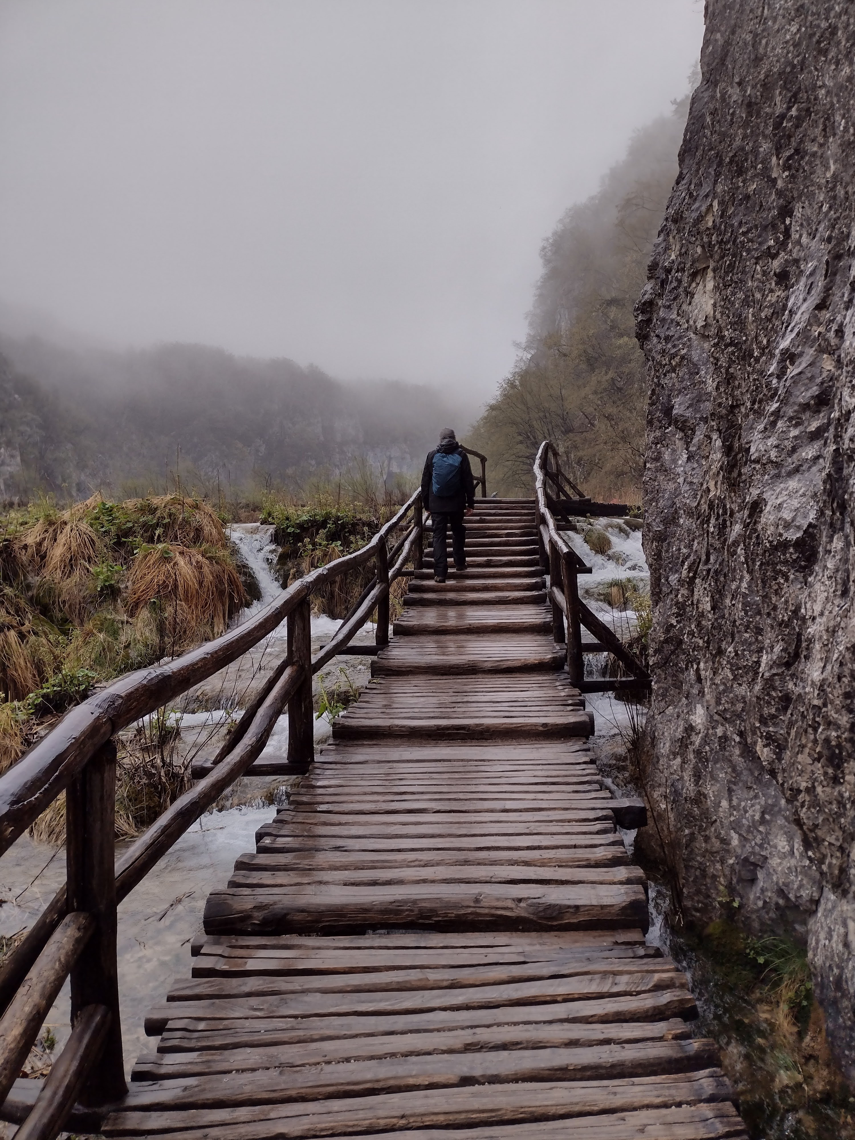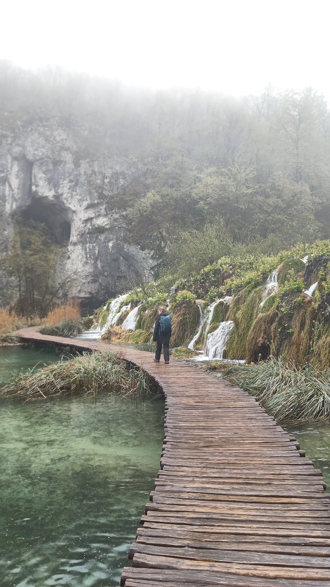 Plitvice Lakes National Park is only 2km from our accommodation so we walked there. Fortunately we had both taken out full set of waterproof as it rained 4 out of the 6 his of walking. We didn’t mind a bit as it meant less people and more atmosphere. What a magnificent park, very different to the Krka park and much bigger. The deepest lake is 49m and the highest waterfall is 87m, the highest in Croatia.