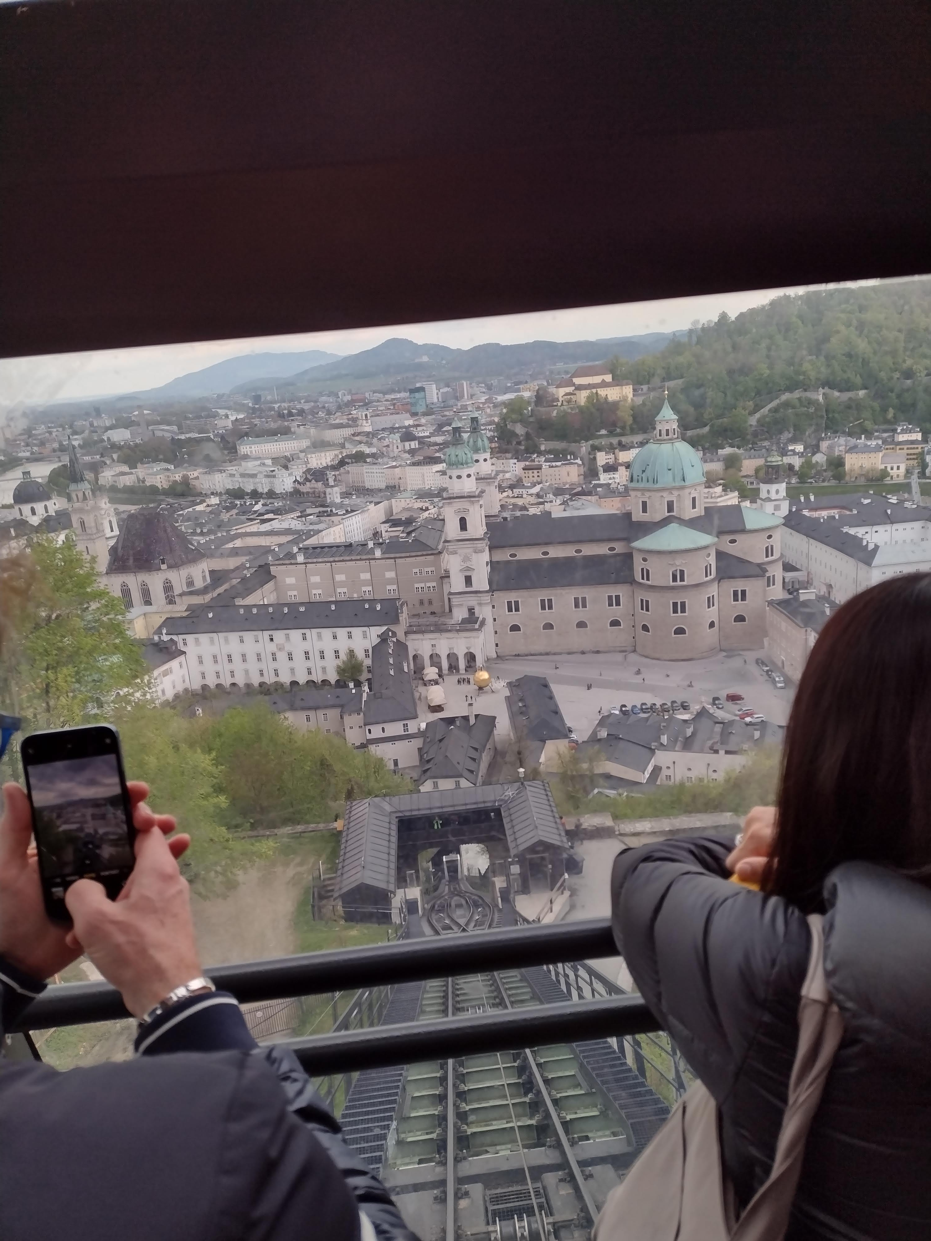 The funicular took 54 seconds to get up to the castle. We spent the next 3 hours exploring including lunch in the panorama terrace restaurant. We had Austrian goulash with hand made potato dumplings and a glass of beer. Deeeeeeelicious.