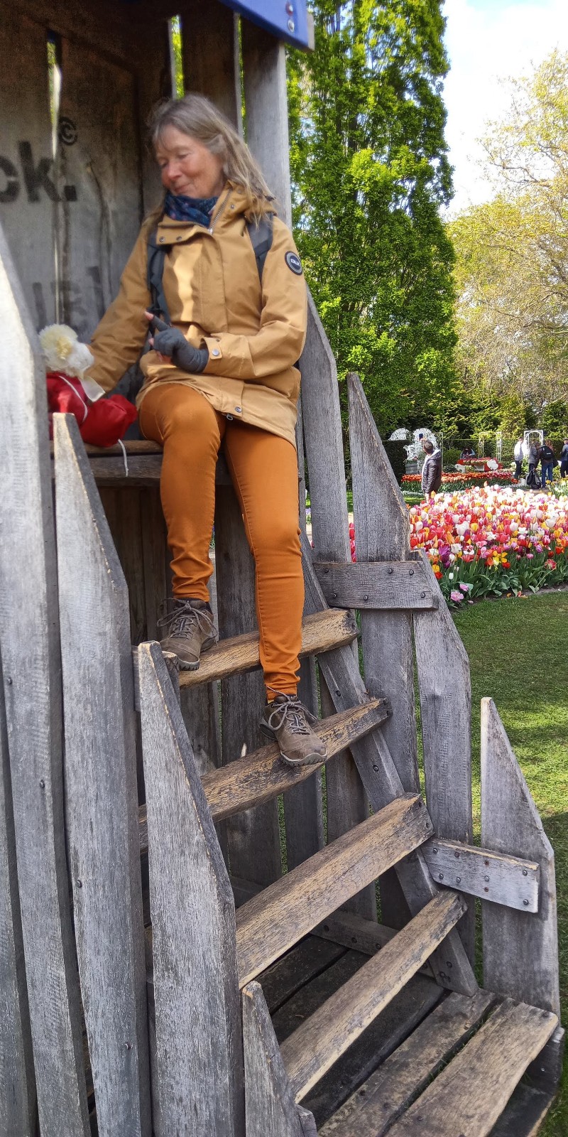 Sixty has never seen as many tulips, 1000’s of varieties and 100’s of colours. She agreed with us that it was a magnificent display and the gardener’s at Keukenhof should be given a pat on the back. At one point we had to take her to one side, sit her down, and tell her she could not pick the tulips. She especially liked the clogs, the boat not so much she hid under the seat but loved everything else she could sit on.