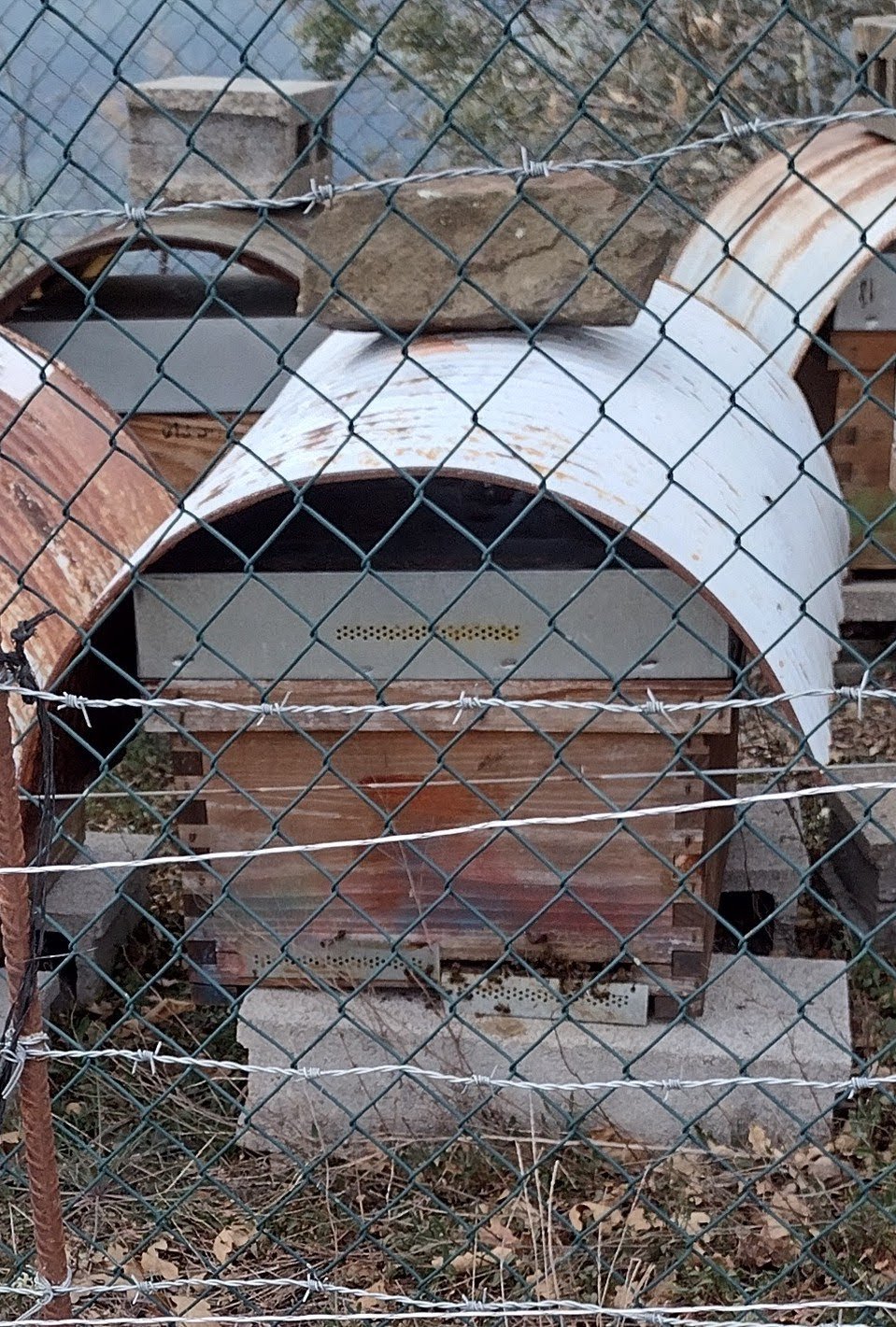 So we deposited our food in the apartment and went for a walk. Up hill until we found the bees and their hives at 720m. We didn’t stick around though π although some honey would have been a good sweetener to get us back.