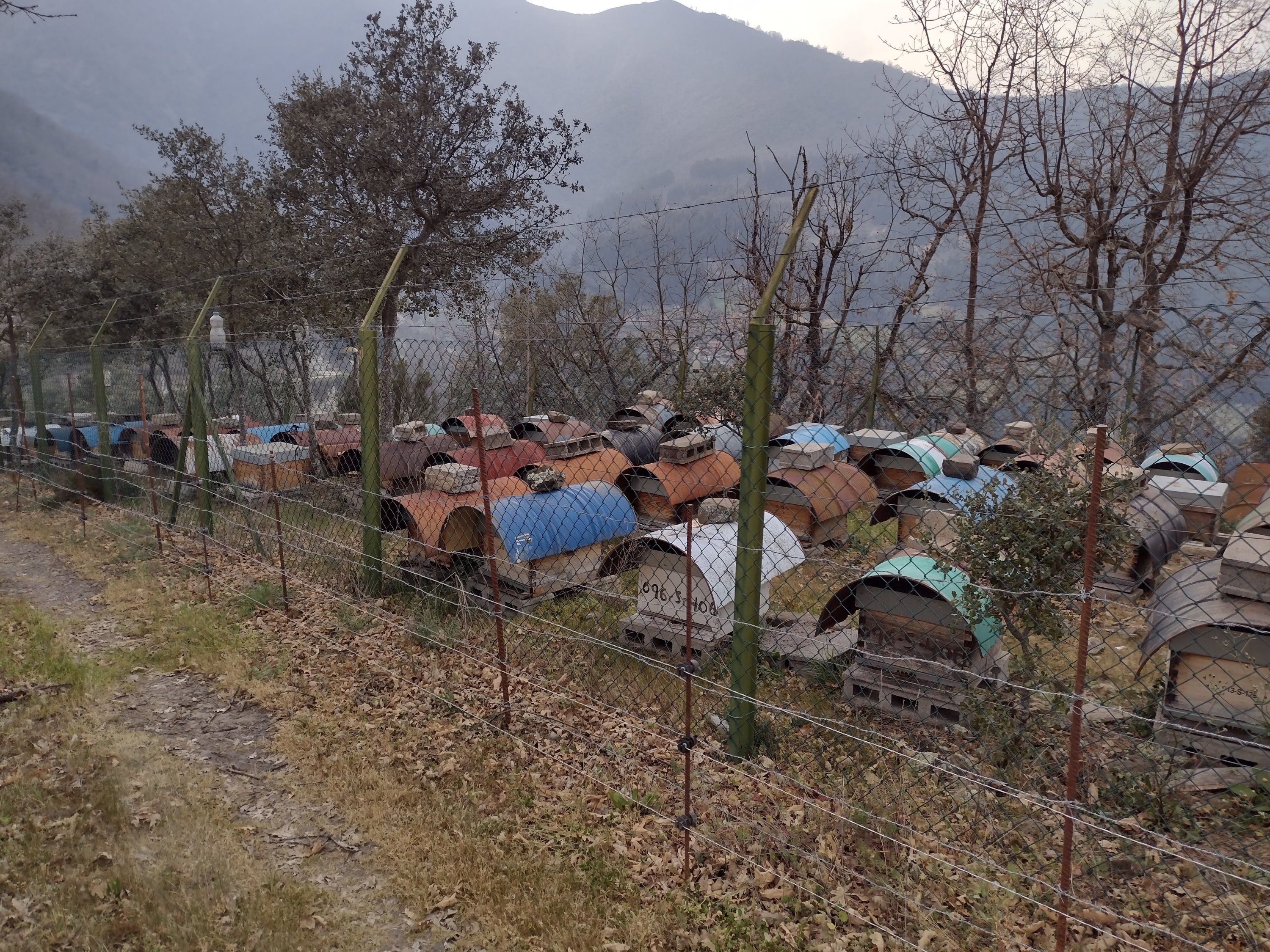 So we deposited our food in the apartment and went for a walk. Up hill until we found the bees and their hives at 720m. We didn’t stick around though π although some honey would have been a good sweetener to get us back.