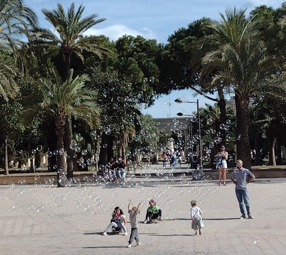 We ended up in Turia Park which follows the course of a dried up river through the city, stretching over 9km with 18 bridges from very old to modern. We didn’t walk the full length but walked from the cathedral to the very modern science park and back. Its similar to the Retiro Park in Madrid in that every body uses it either for sport, leisure or play, note the children playing with the bubbles. It was great walking through it watching people on a hot sunny afternoon.