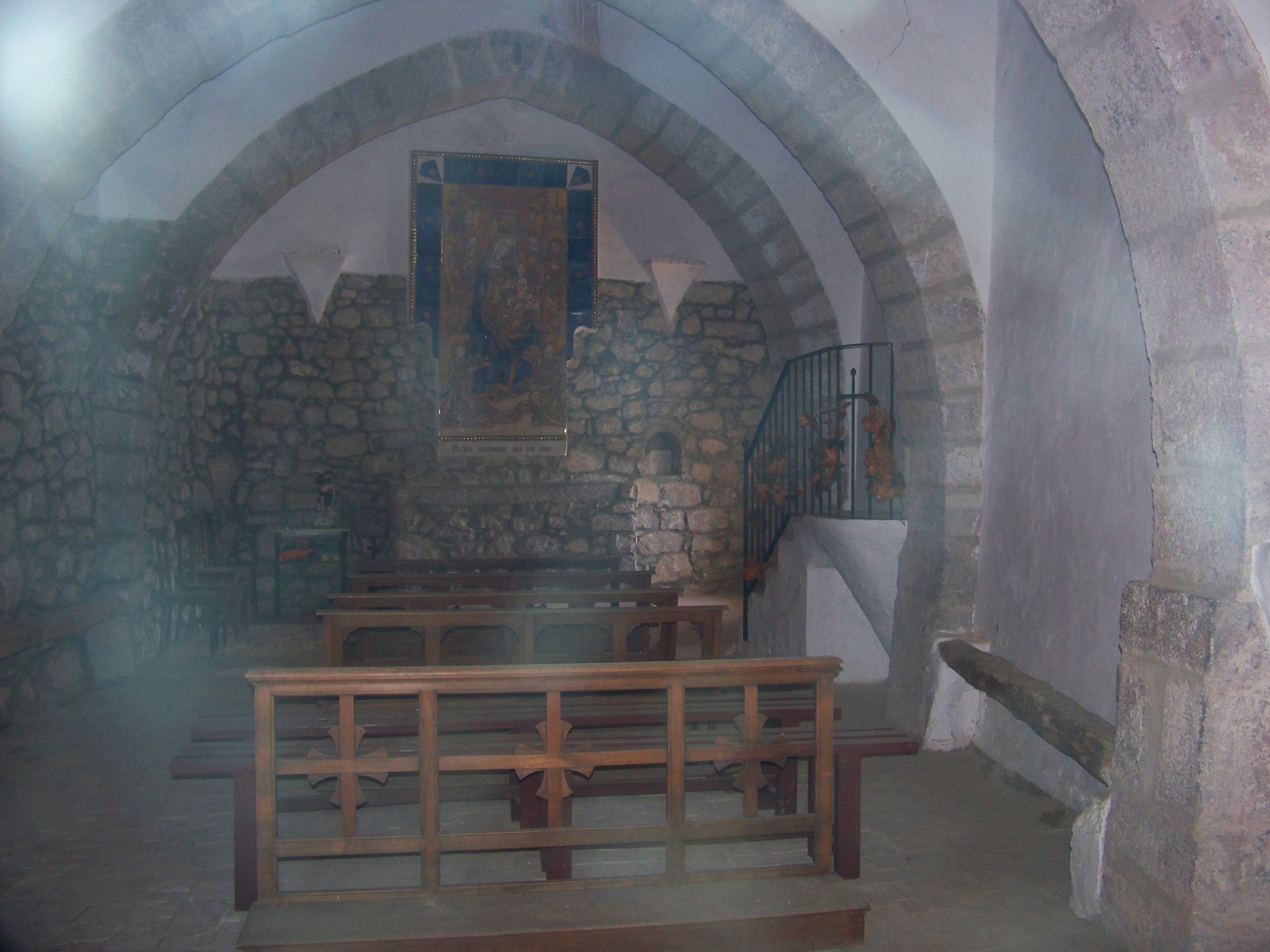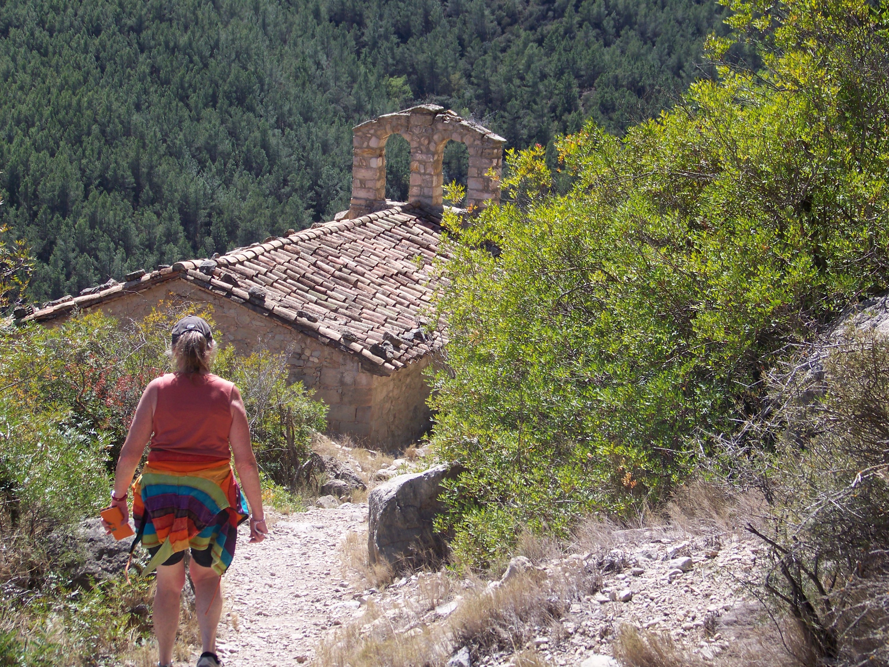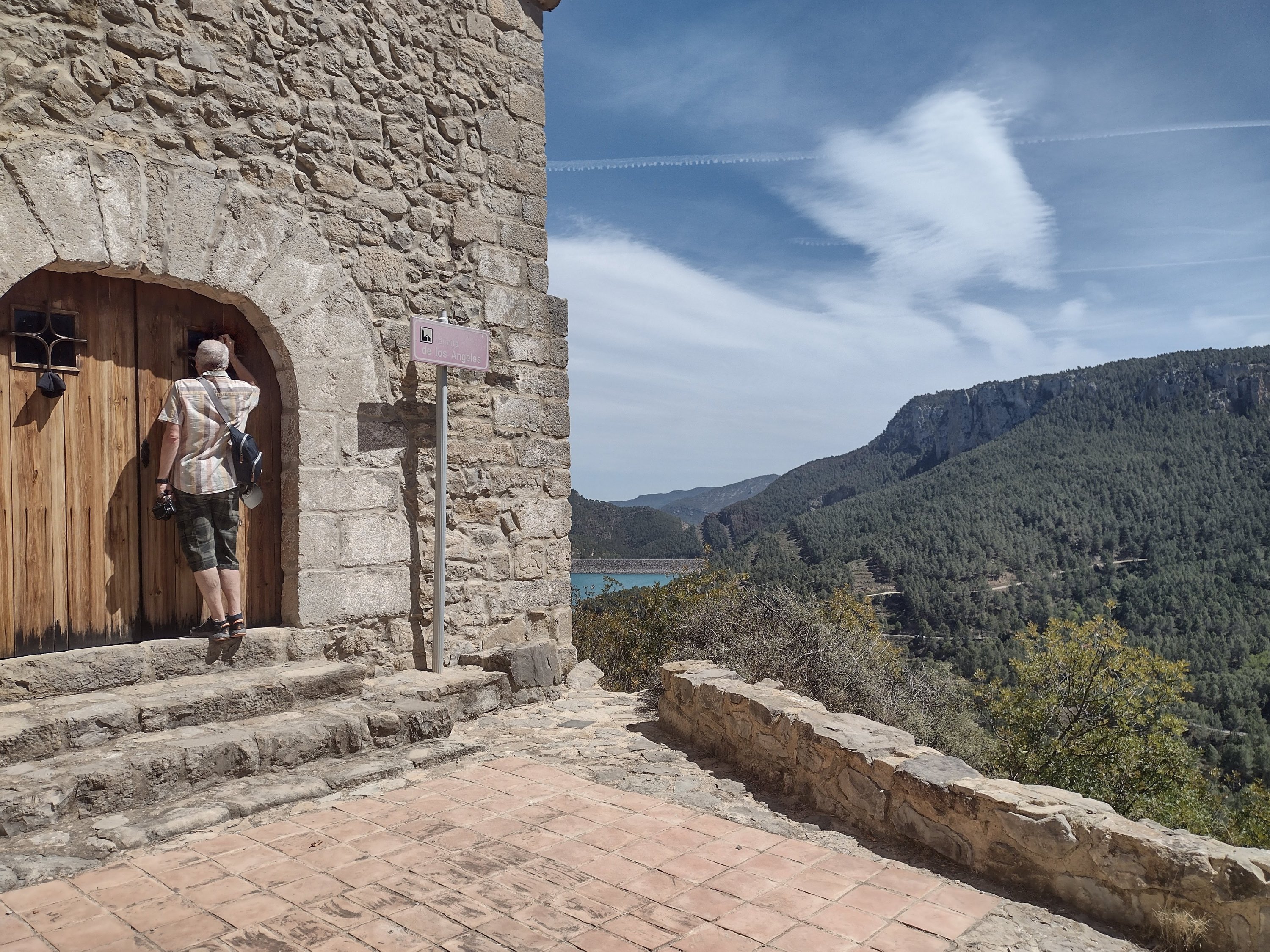 We set out for the hot springs of Montanejos about 1 1/2 hours from our apartment. As we got closer it became apparent that there were hordes of people there. It was 26° after all. We carried on driving and found a lovely rock, above it all, for lunch. A fairly relaxed affair until we spotted a castle on a hill. Before we knew it we were walking up the track, not too arduous, and well signposted. The first thing we found was the Ermita de Los Angeles, a little Chapel just below the craggy outcrop. Shut but we were able to take a sneaky photo through the window.