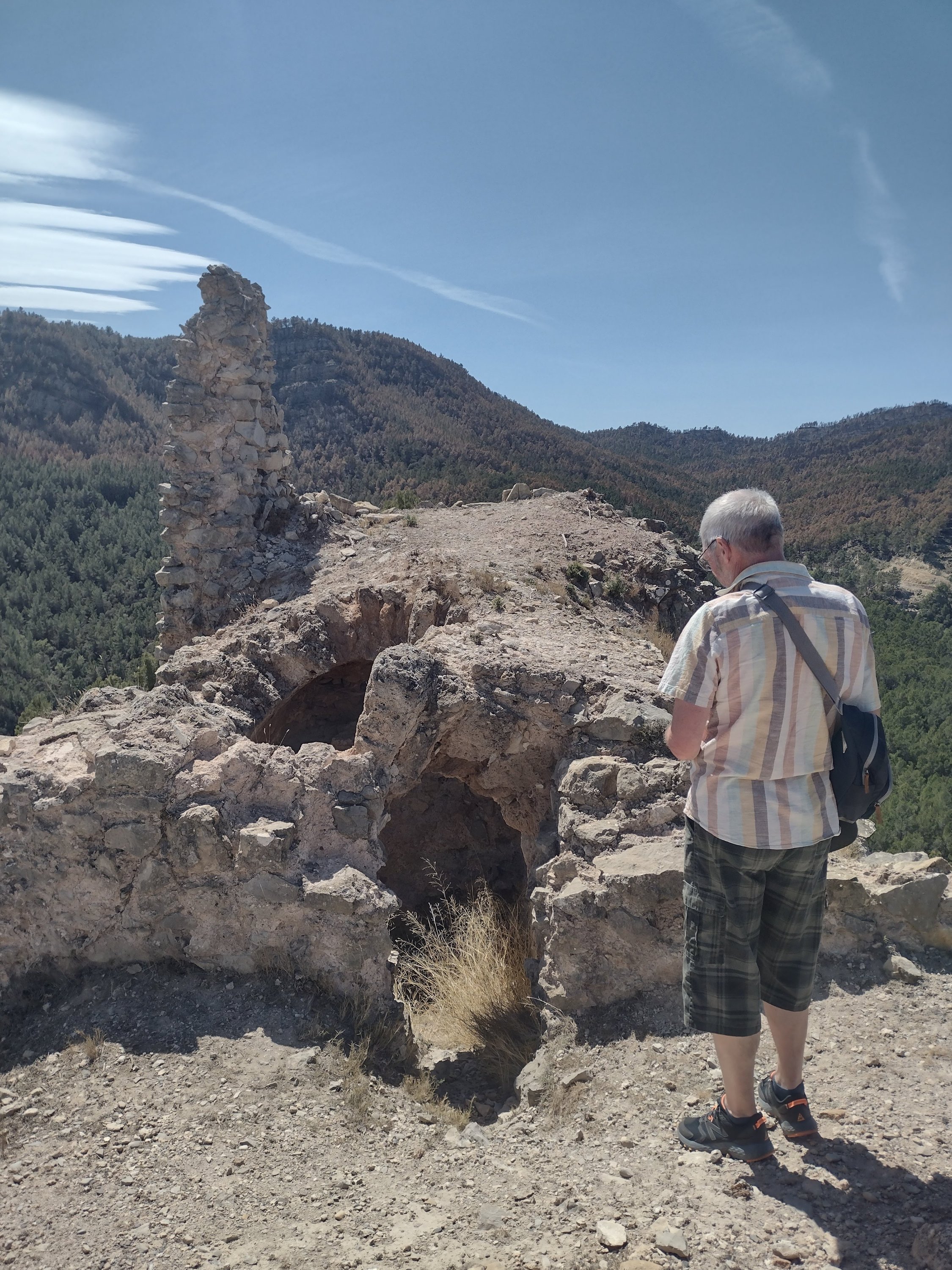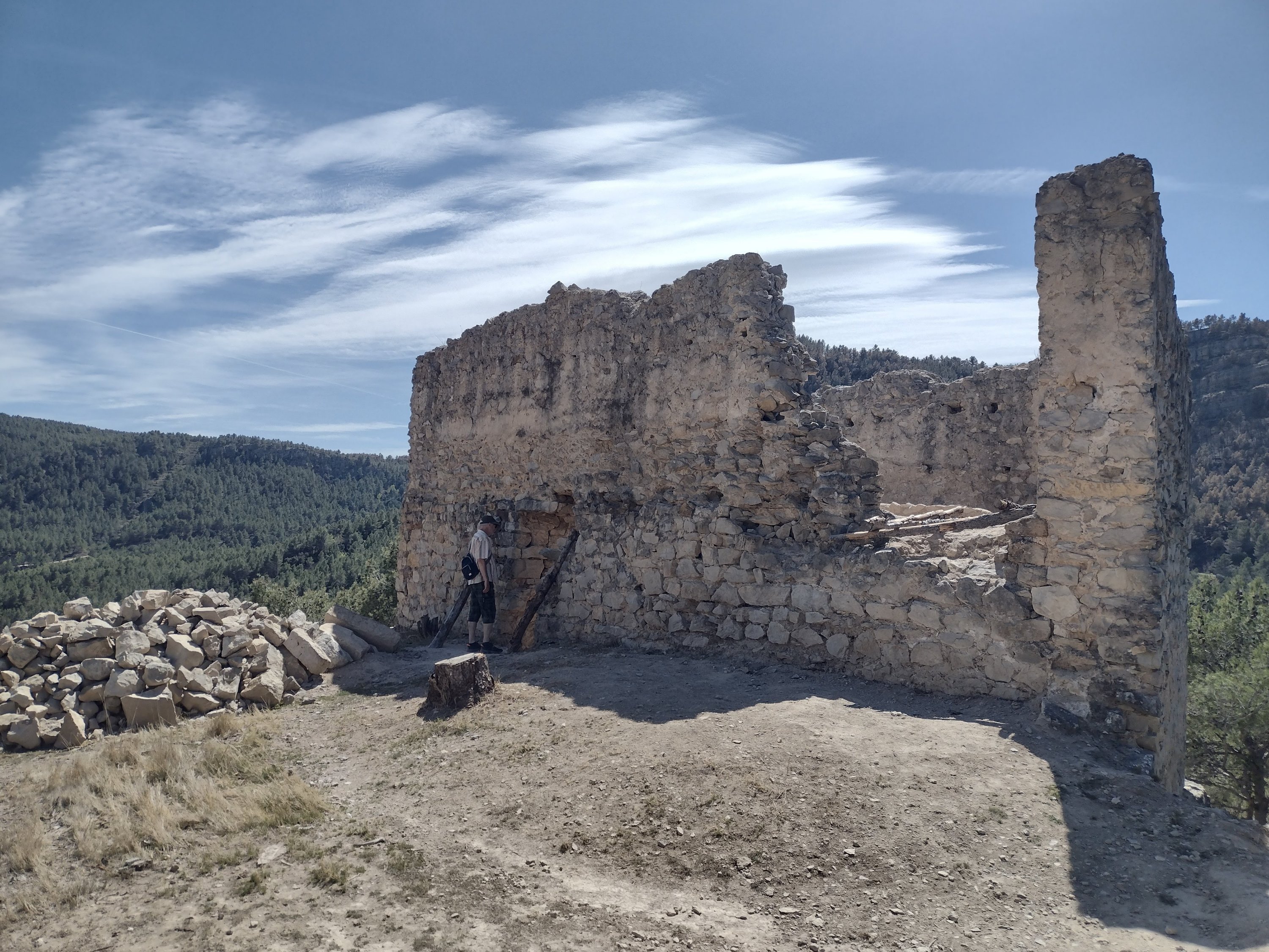 The path wound steadily up to the top of the crag and the Castillo de la Viñaza. Obviously been there a long time, once looking over a valley but now a reservoir, and some reinforcement was taking place. Quite a gusty wind so didn’t hang around too long.
