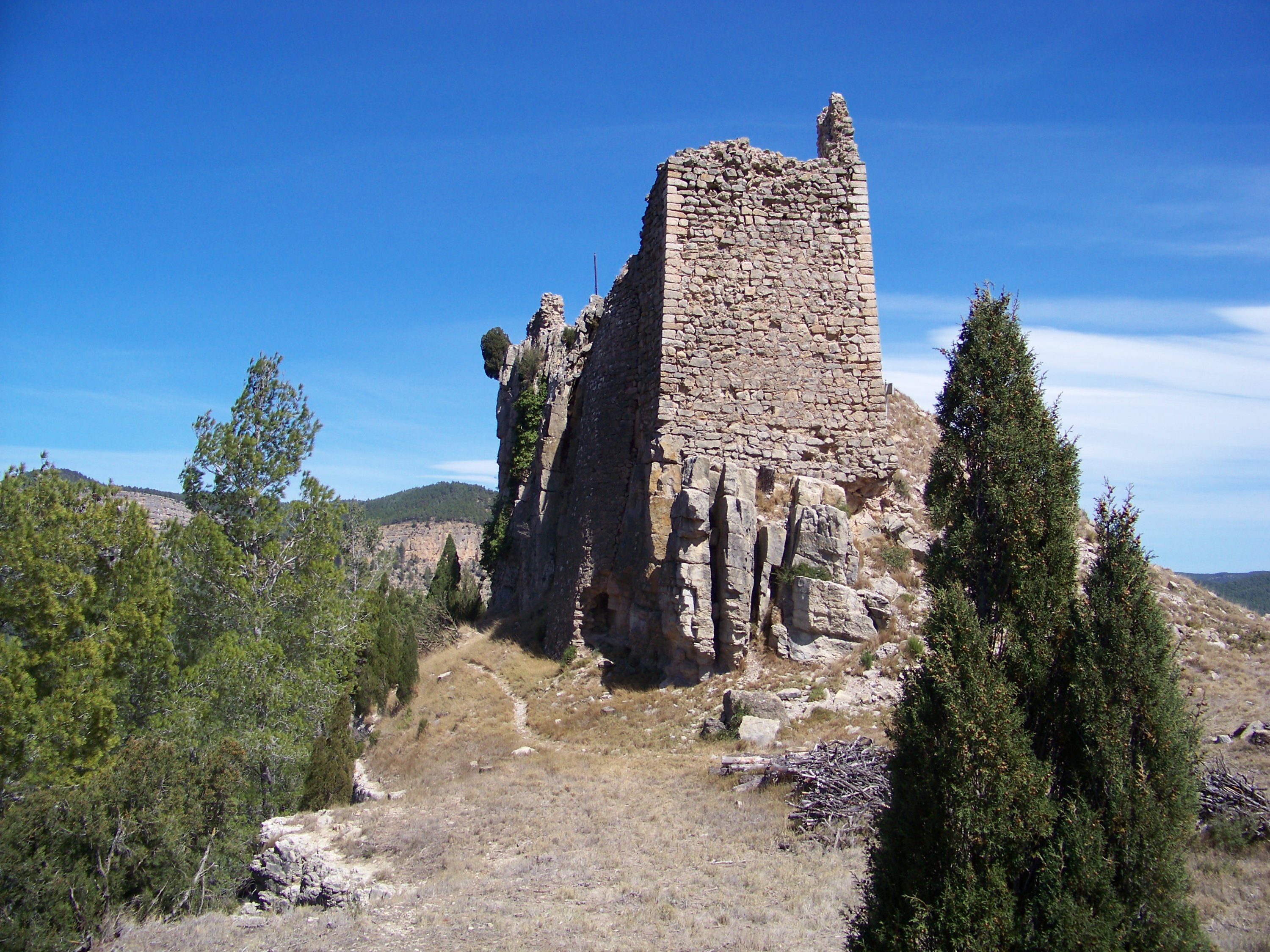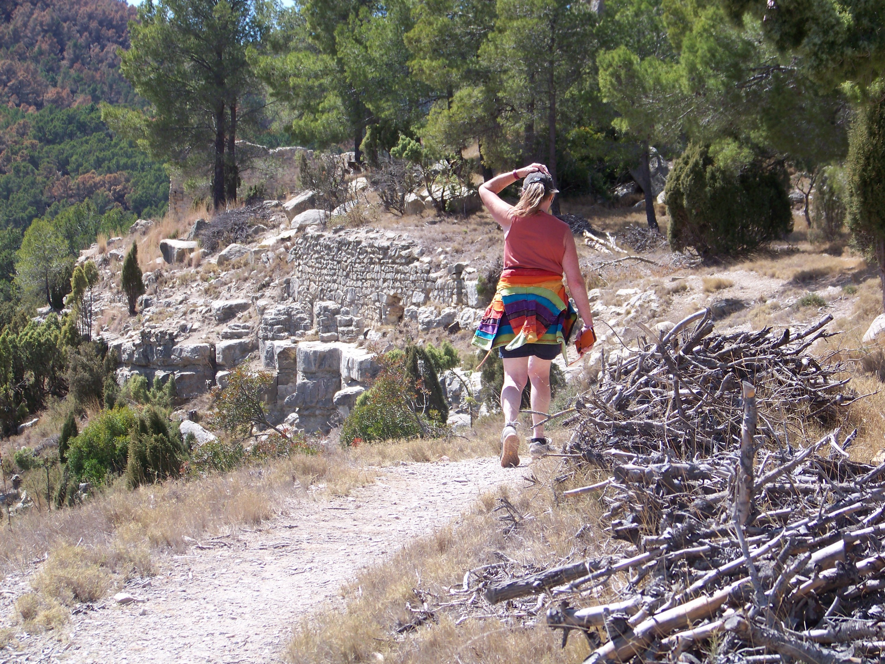 The path wound steadily up to the top of the crag and the Castillo de la Viñaza. Obviously been there a long time, once looking over a valley but now a reservoir, and some reinforcement was taking place. Quite a gusty wind so didn’t hang around too long.