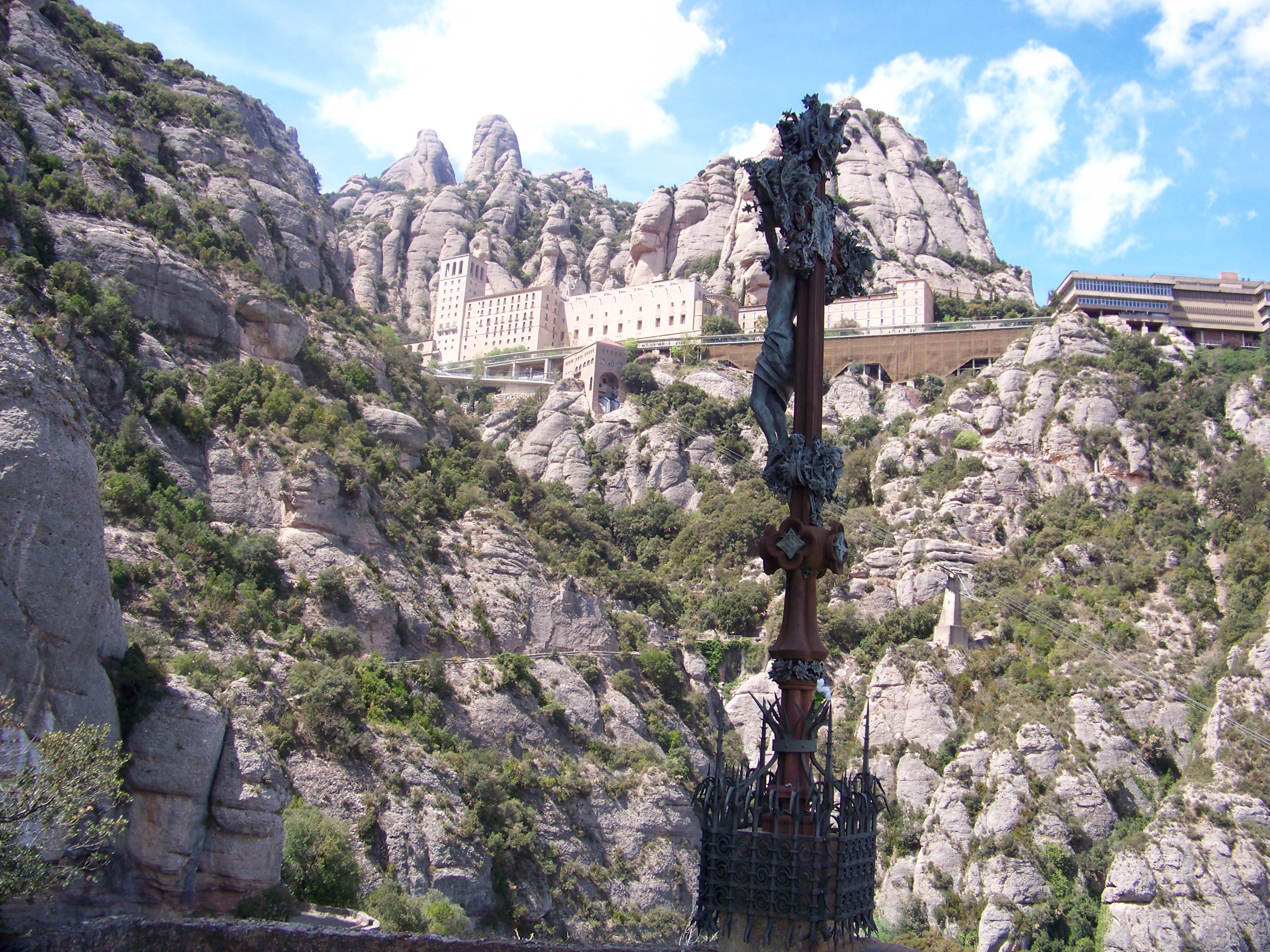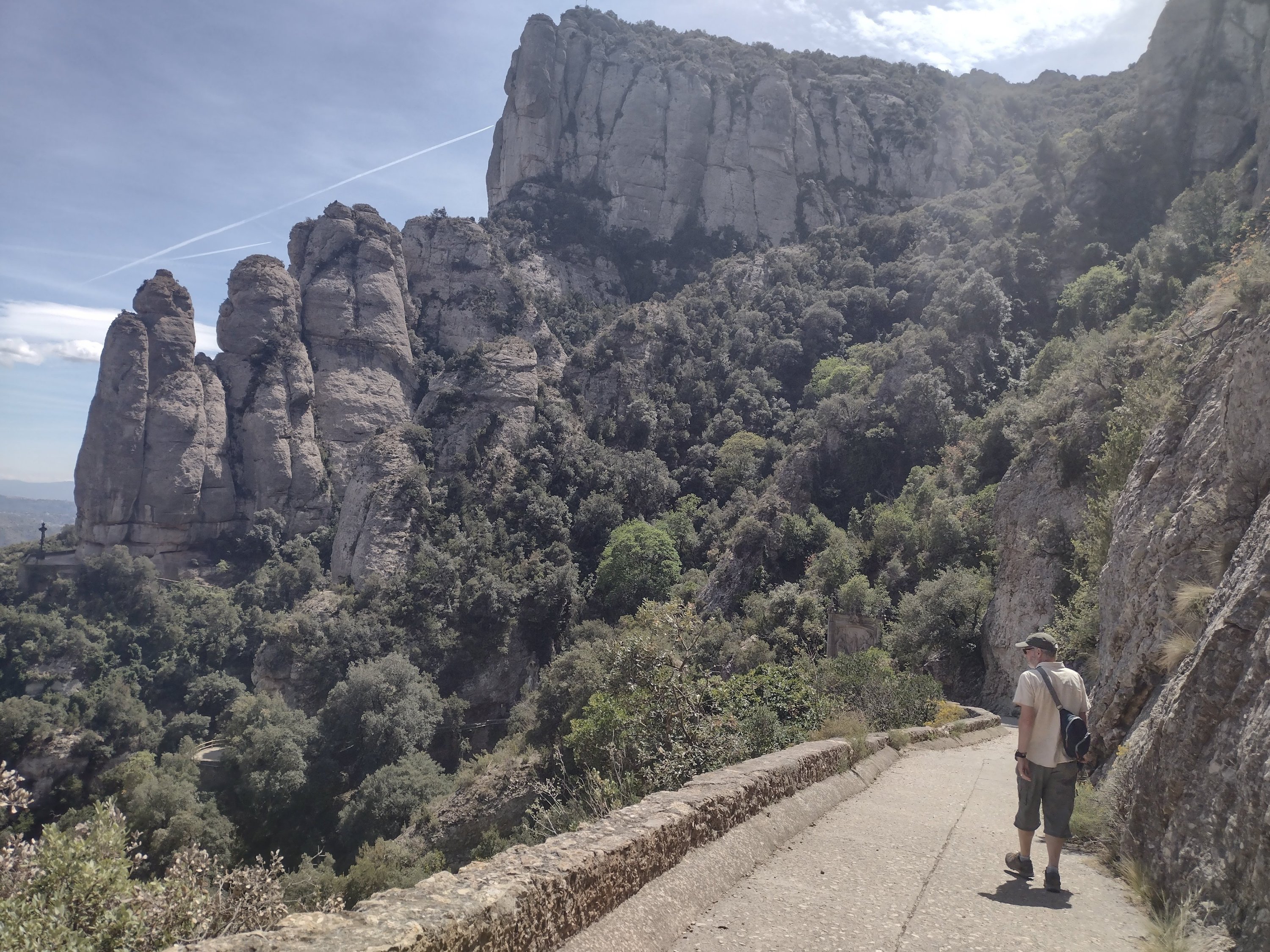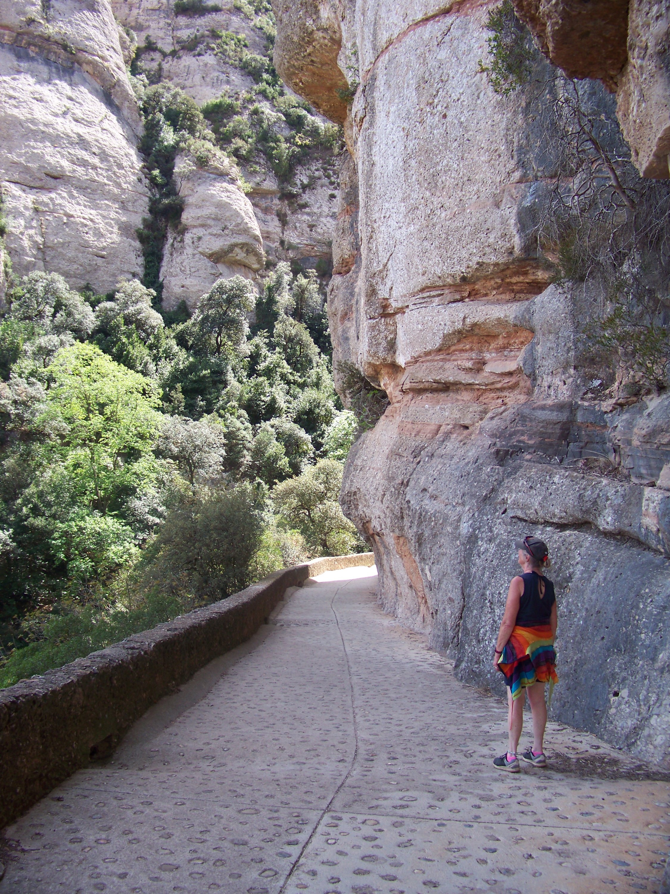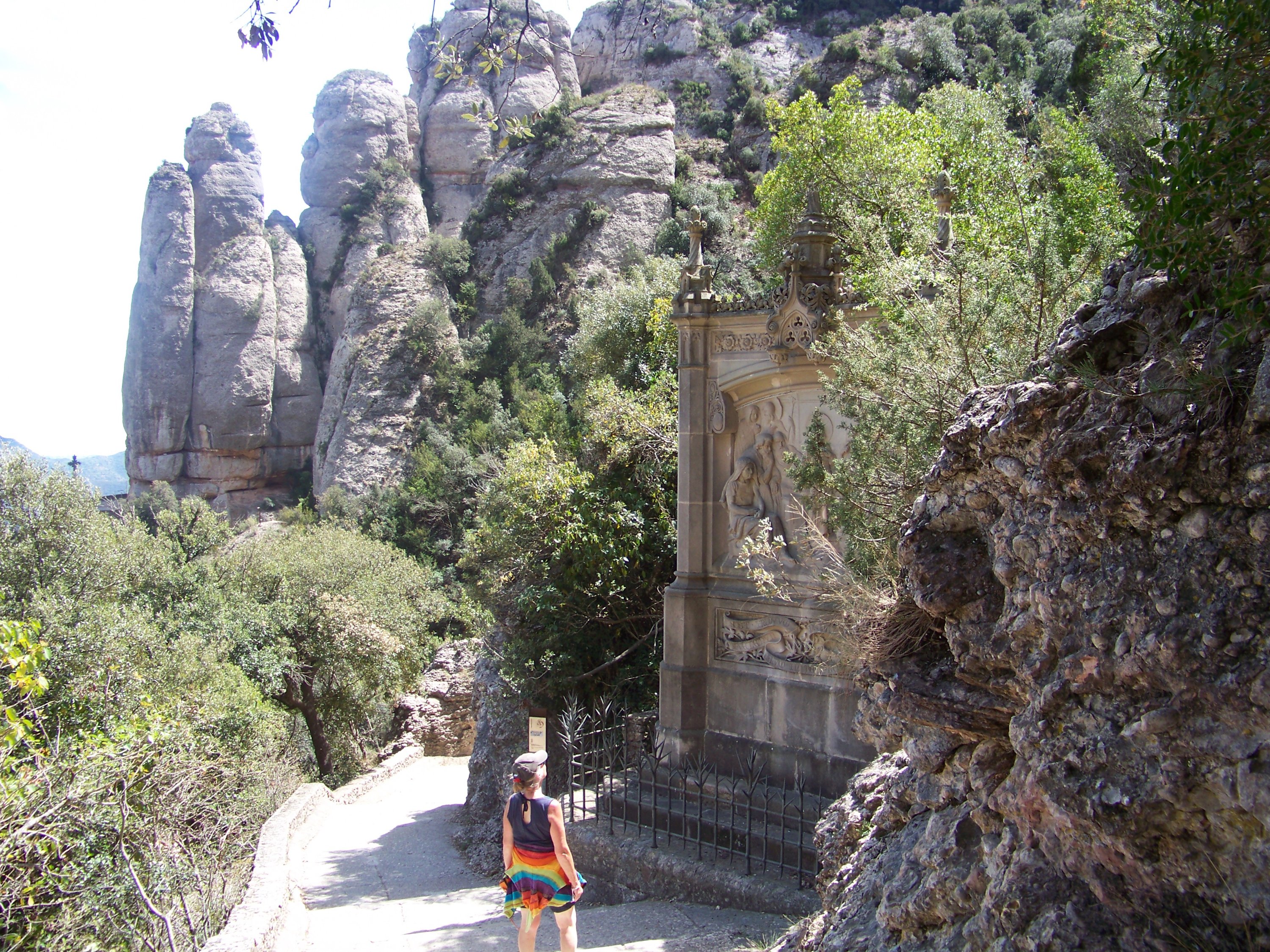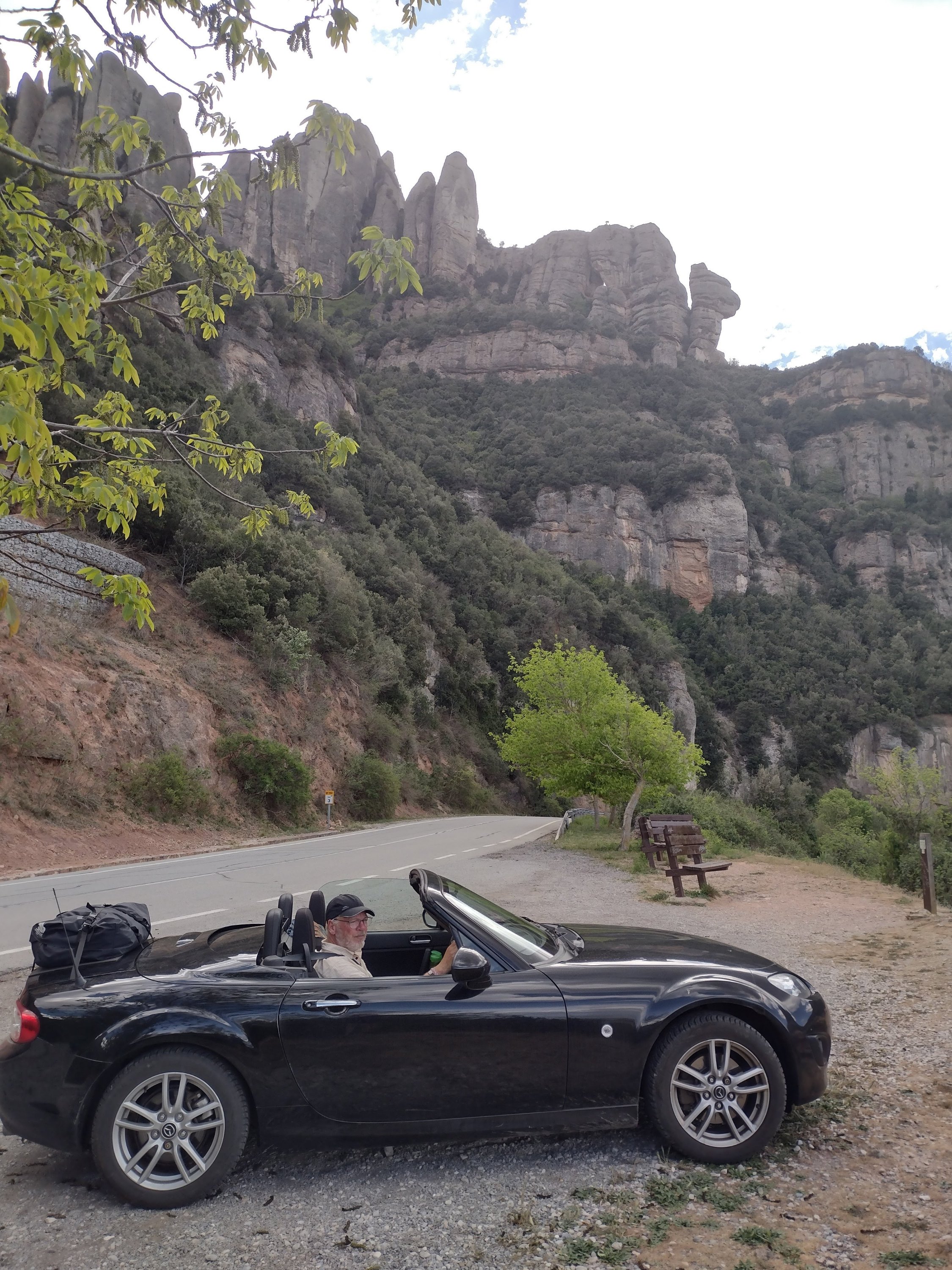We’re heading for the mountains and what is in the mountains near Barcelona, the holy Abbey of Montserrat. Choices walk or get the funicular? Walking is the traditional way to get there but no one told Serena, our satnav, who said we could drive to the top. Max agreed so off up the hill we drove. We were not prepared, again, for the number of people who got there before us, so we had a quick look around, bypassing the bank, giftshops, produce stalls, restaurants, funicular, trains and cable car, before heading off on our own on one of the many paths to religious shrines on the mountain. We chose the path to Santa Cova