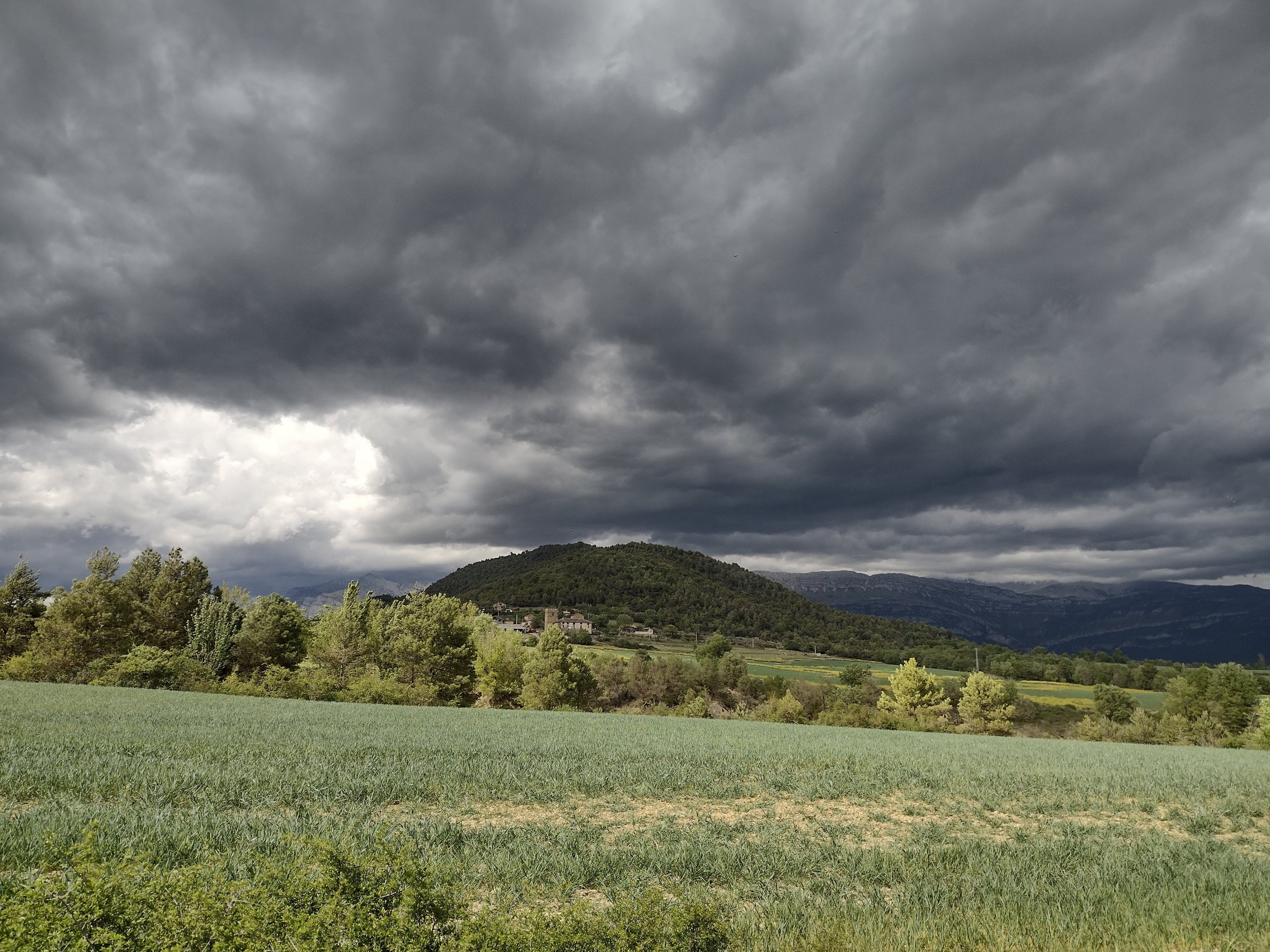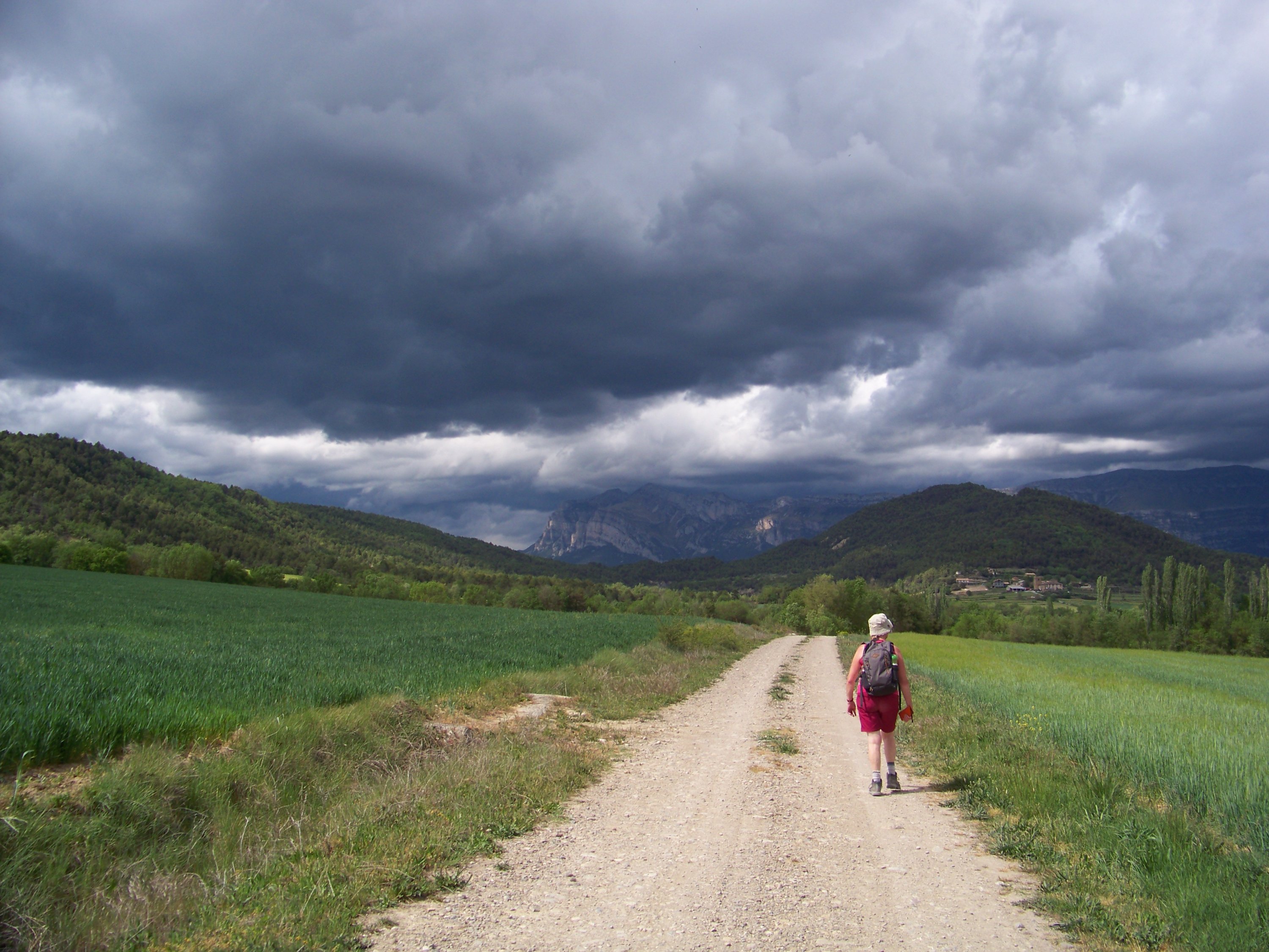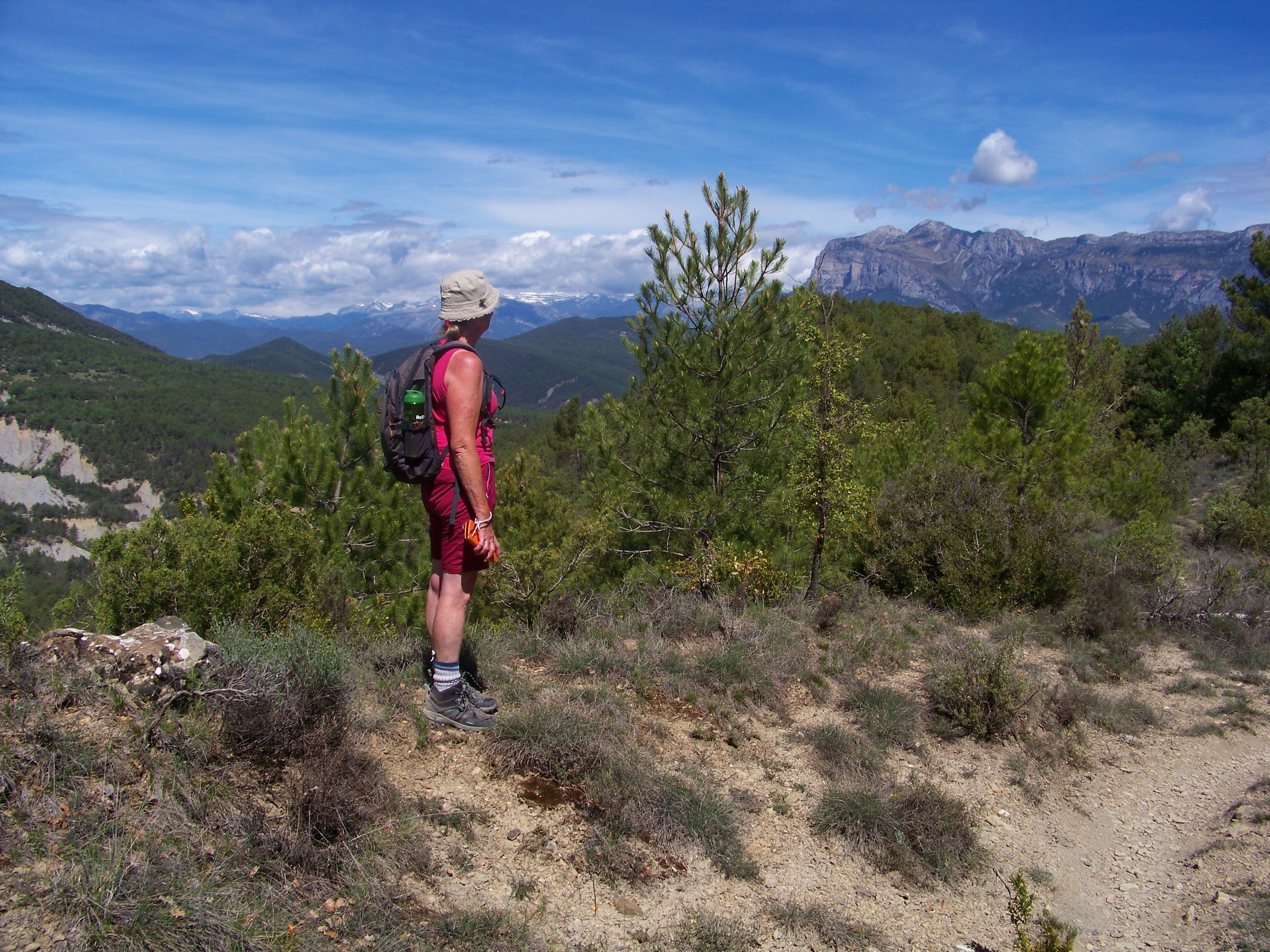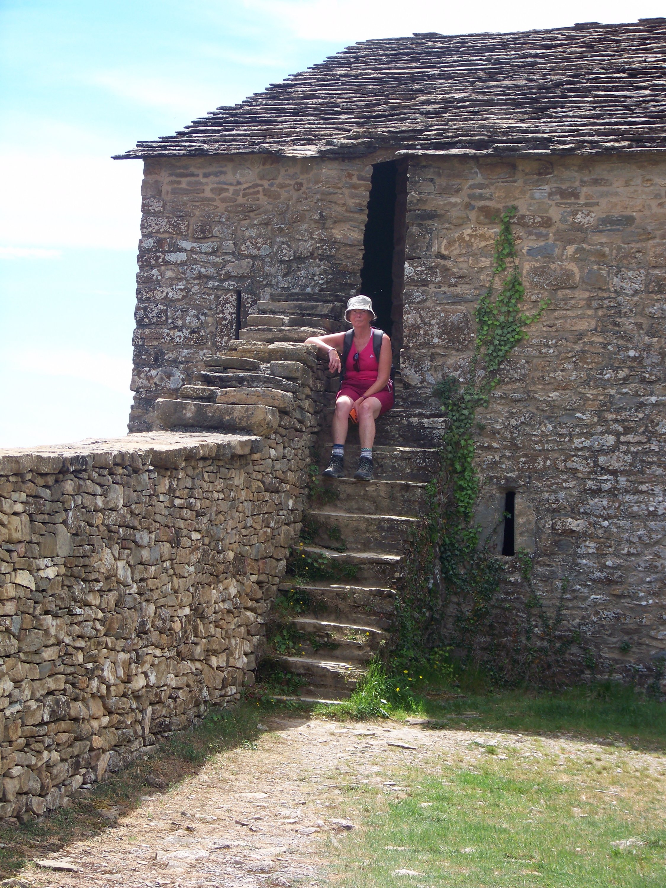 At this point we discovered that the place we were heading for was a religious-military complex, a walled village, undergoing restoration. The church dedicated to Santa Maria built in the 12th century. Inside it was highly decorated with paintings on the ceilings and walls. Within the complex walls was a cemetery, lots of small buildings and the hermitage of Santa Barbara. The panoramic views of the pyrenees and surrounding countryside were as you can imagine, amazing. We could even see Casa de Mur, where we are staying. No idea what the sword in the stone was doing here but we could not get it out.