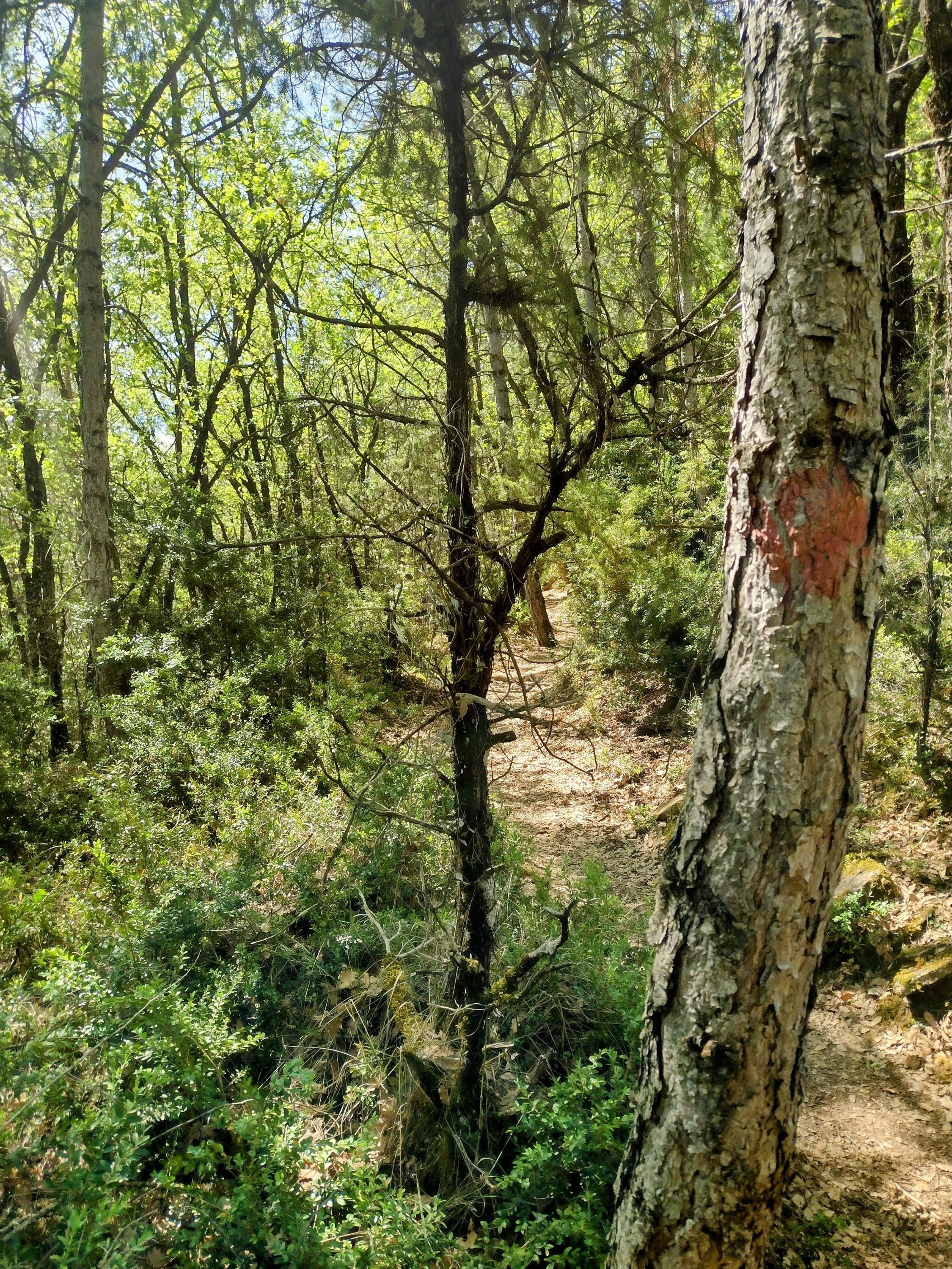 Sometimes you go for a walk with no planned route, you make changes as you go. This was us today, we saw a building with a tower on top of a hill and set off on what turned out to be a mountain bike trail. A lovely walk up through the trees following some very good markers. They do trail marking in spain very well whether it be sign posts or paint on rocks. On the way up the signposts told us we were going to the complex of Muro de Roda, no explanation of what to expect though.