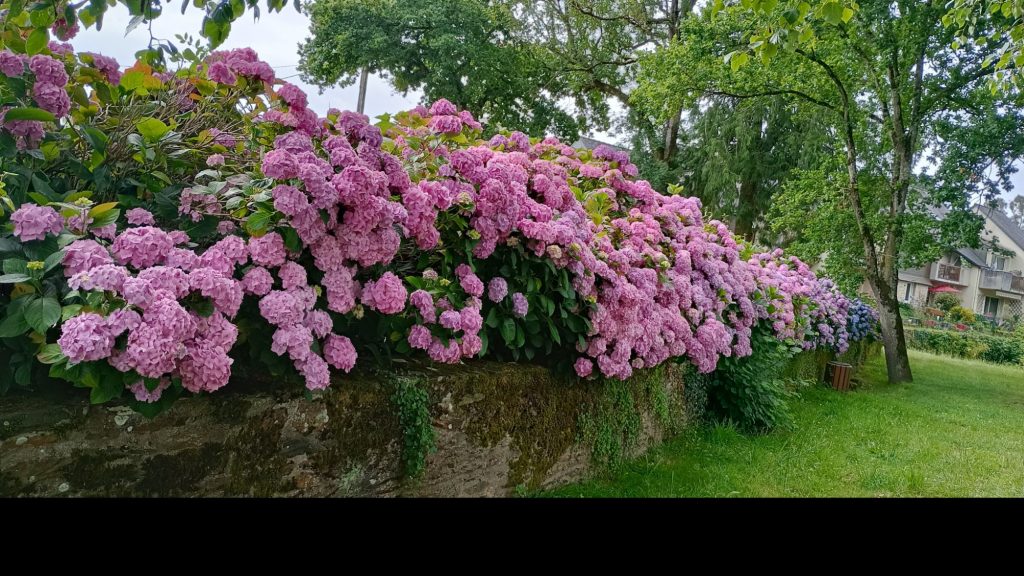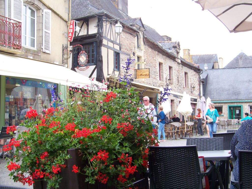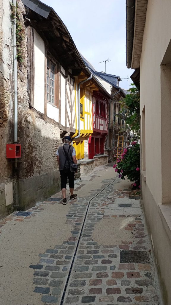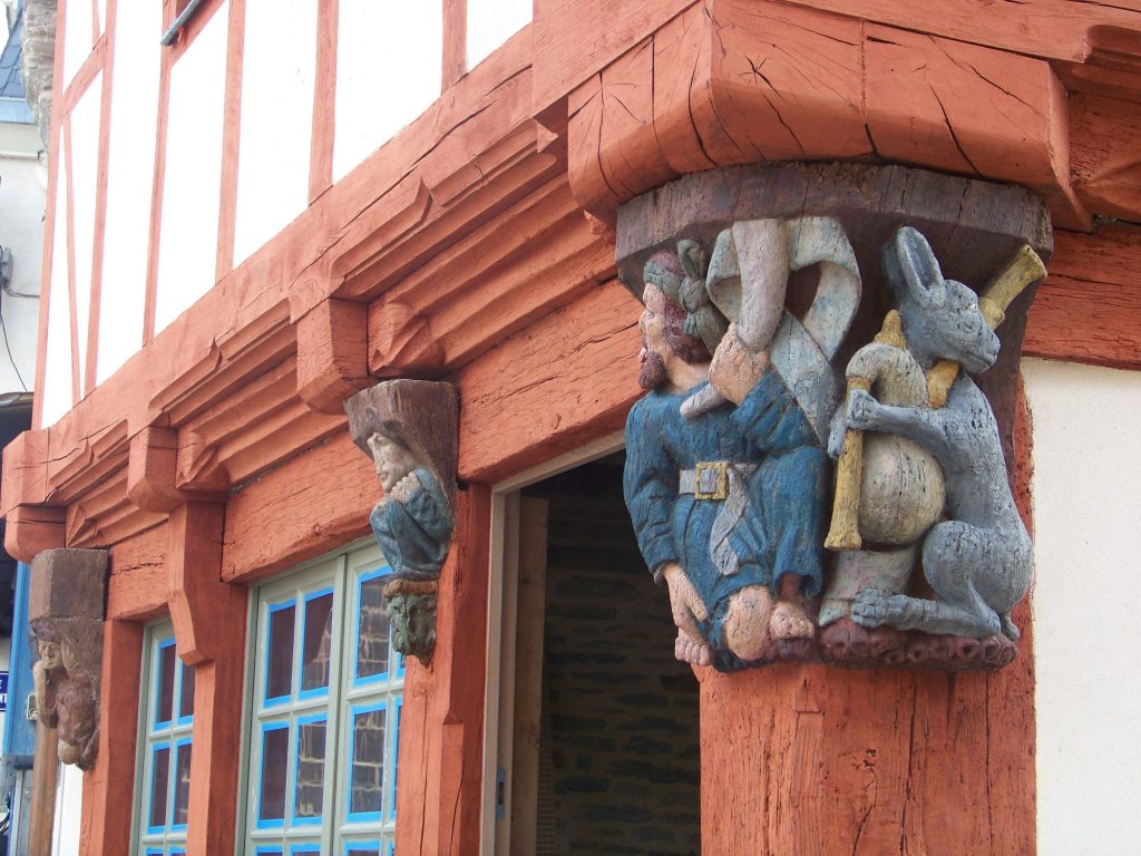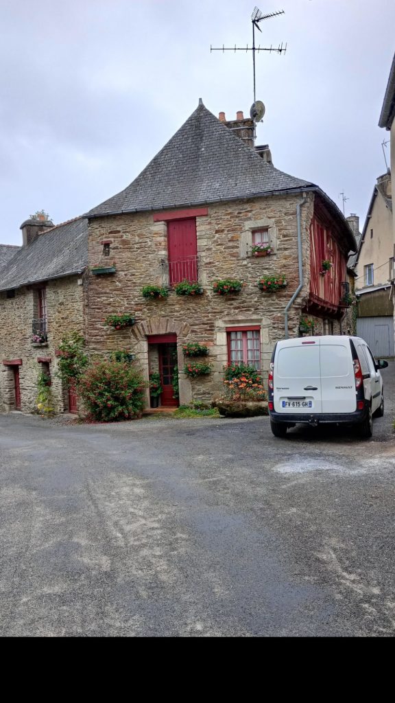 Stayed put today to explore Malestroit, a medieval village set on the Oust River. A very pretty small town (of character) very old half timbered houses containing some funny wooden sculptures. Not sure how some are still standing as some 500 year old and some timbers looking woodworm infested!! The brightly coloured paintwork complemented by beautiful flowers, mainly hydrangeas, made a colourful sight. That and the numerous bridges and set on the banks of the river make it an amazing place.