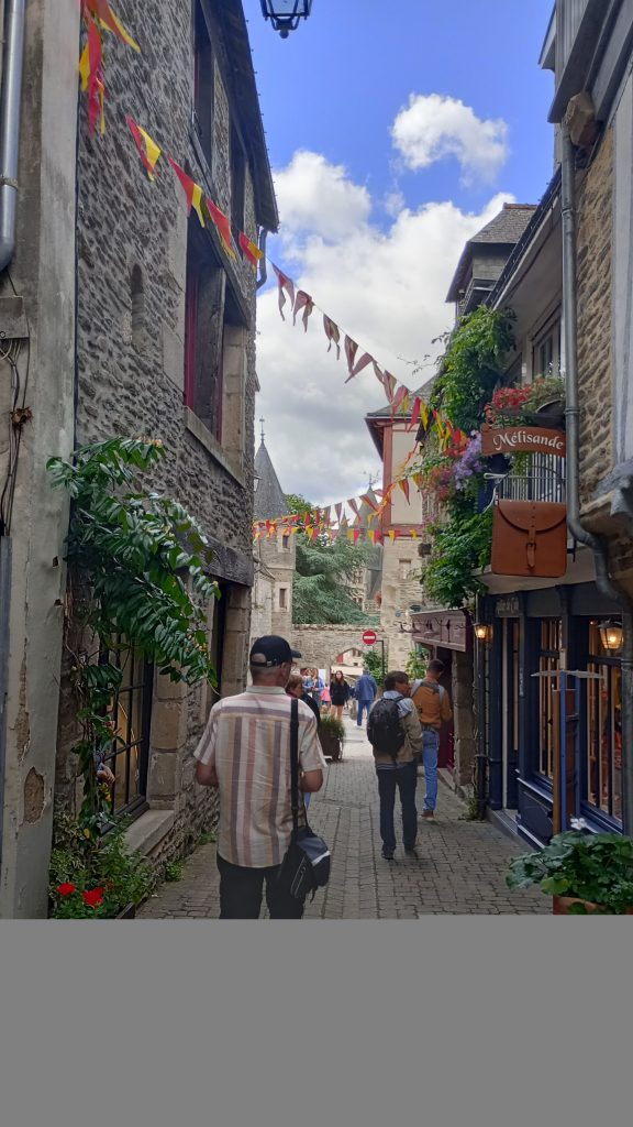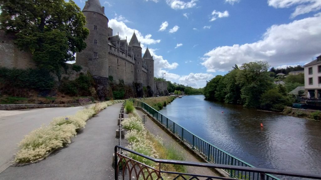 Aptly named, a small city of character. We arrived to masses of flowers and medieval buildings. We drove around several times because all the carports were full because of the Saturday Market. We eventually found a space, walked to the canal and got the full wow factor of Josselin castle.