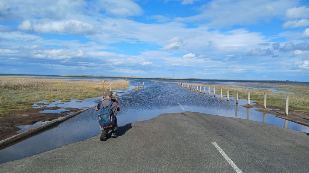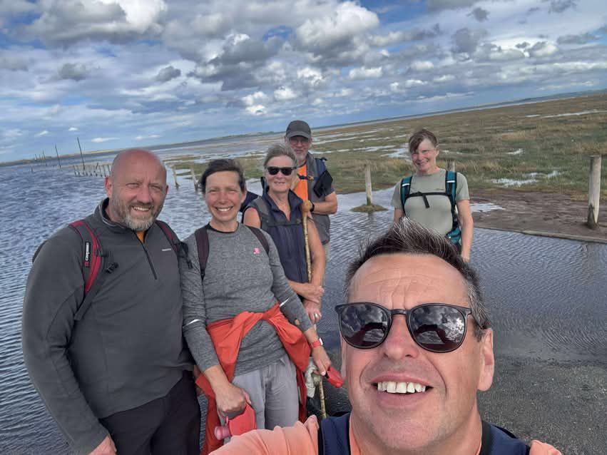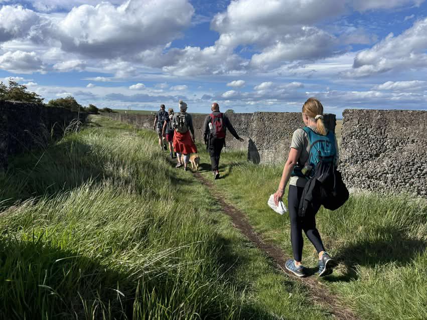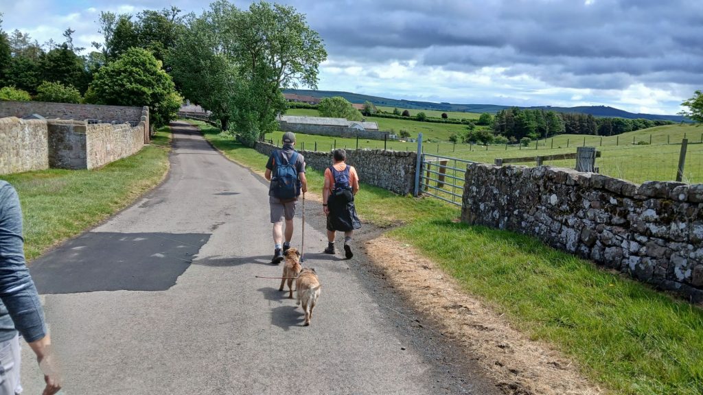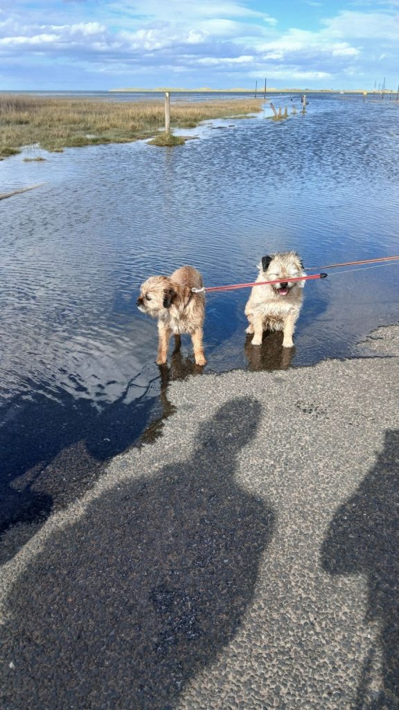 A longer than anticipated walk today, blustery winds, but the sun shone on us all day. We walked hill and Dale, county roads and field tracks through woods and St cuthberts cave. The first view of the sea was uplifting and the coffee shop in Fenwick even more so as we got there just before closing. We walked down to the causeway to watch the tide come in. Weird to think tomorrow is our last day and only the 3 mile causeway to walk.